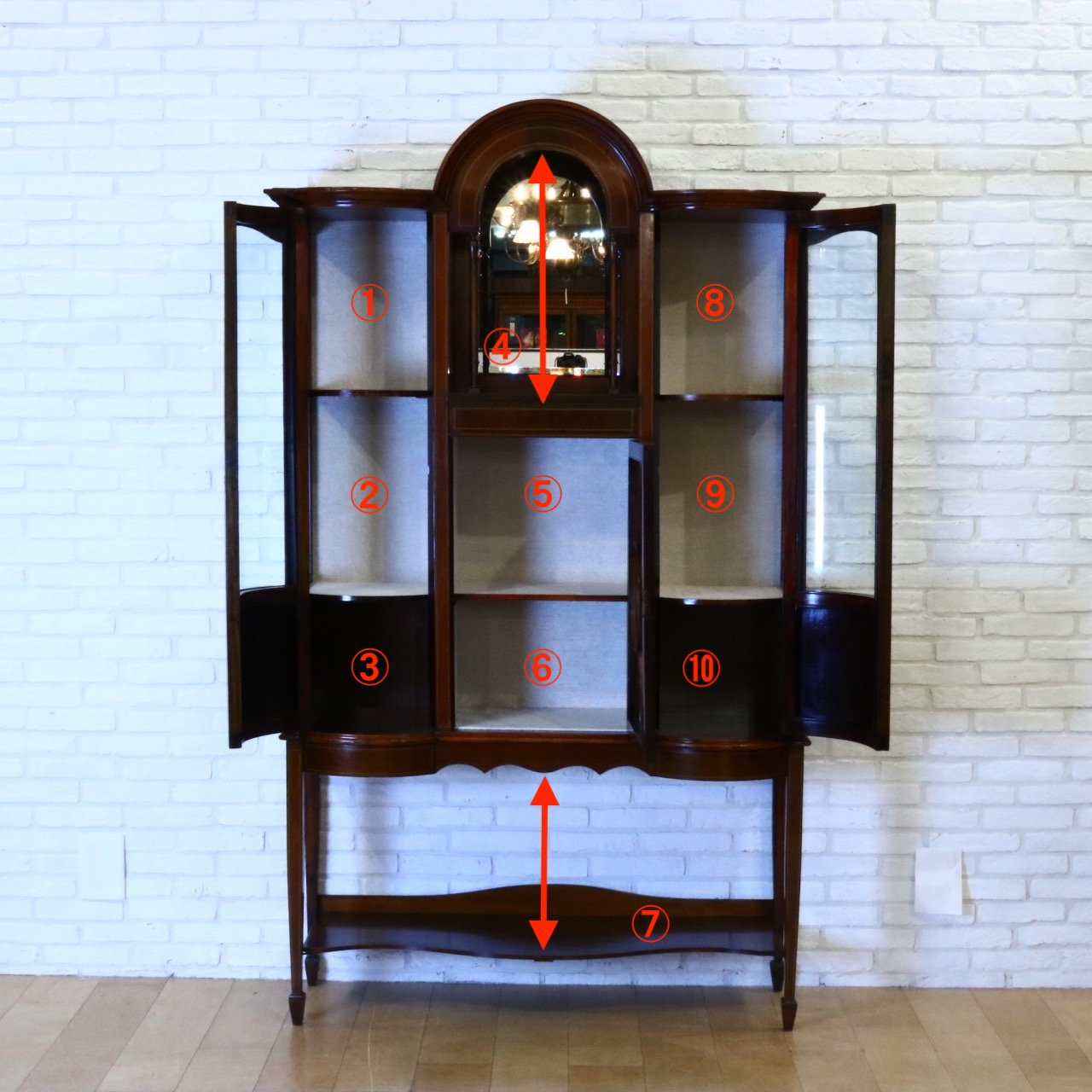 左右の曲面扉は上質な雰囲気を醸し出し、中に飾るものも美しく映えます。アンティークガラスのゆらめきが表情をより豊かにします。