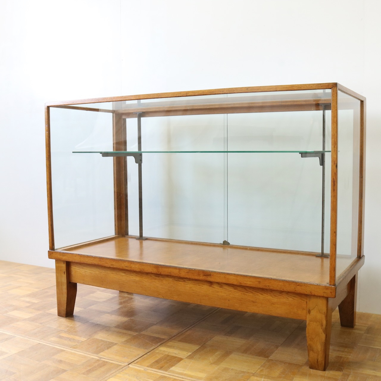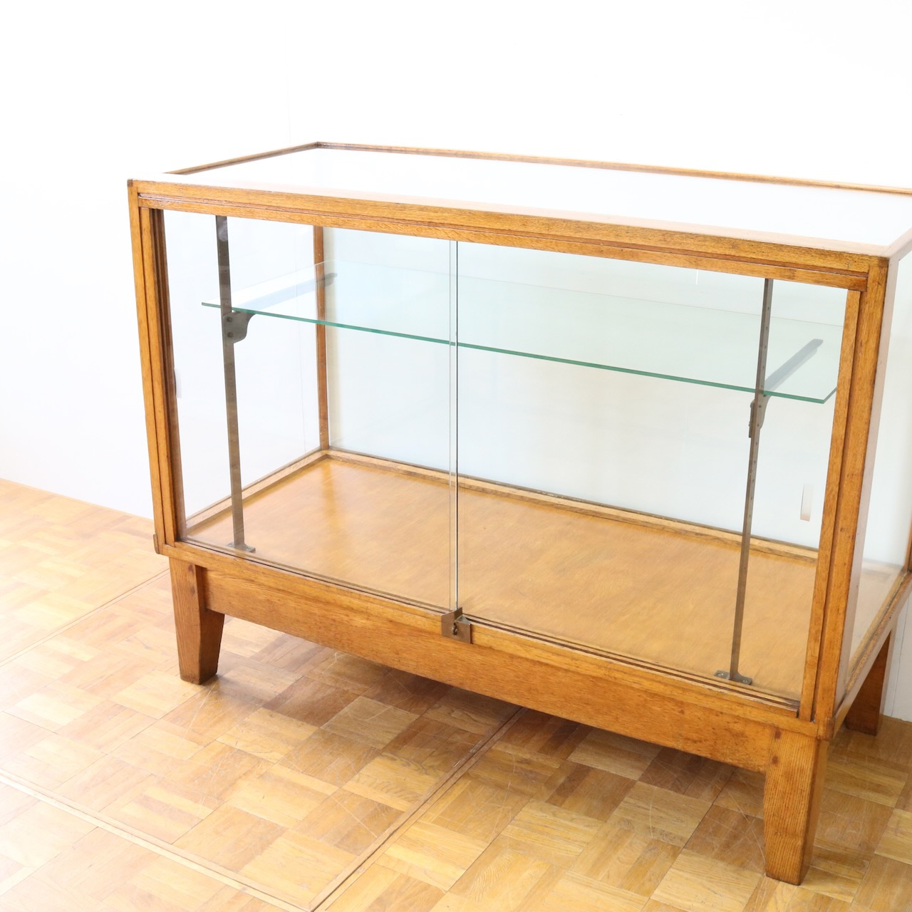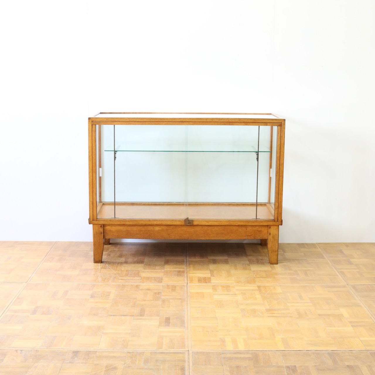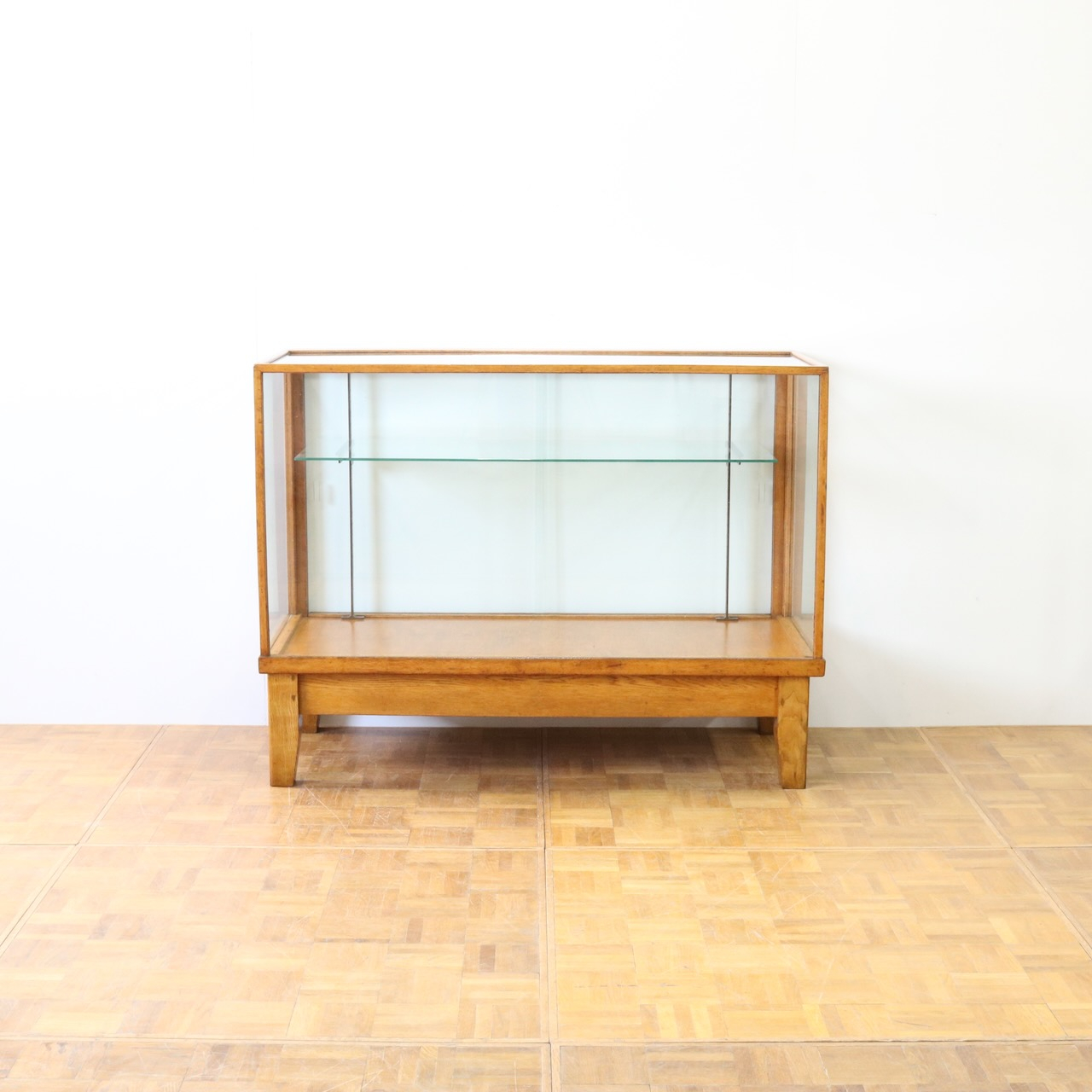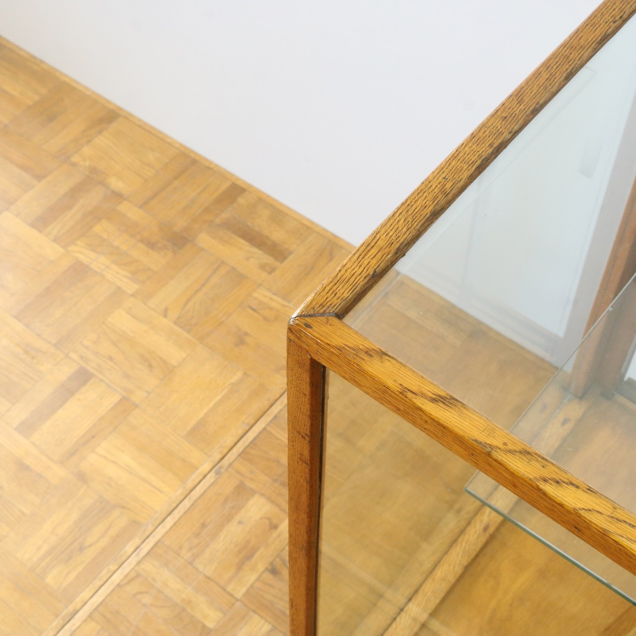 1930年代、オーク材のショップキャビネット。コンパクトサイズでたっぷりとした収納力、4面ガラスで中に飾るものも美しく見えます。店舗用の什器にいかがでしょうか。