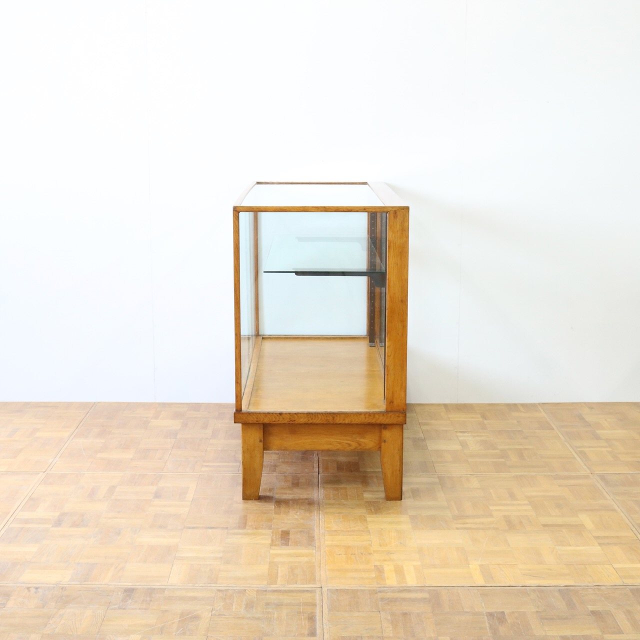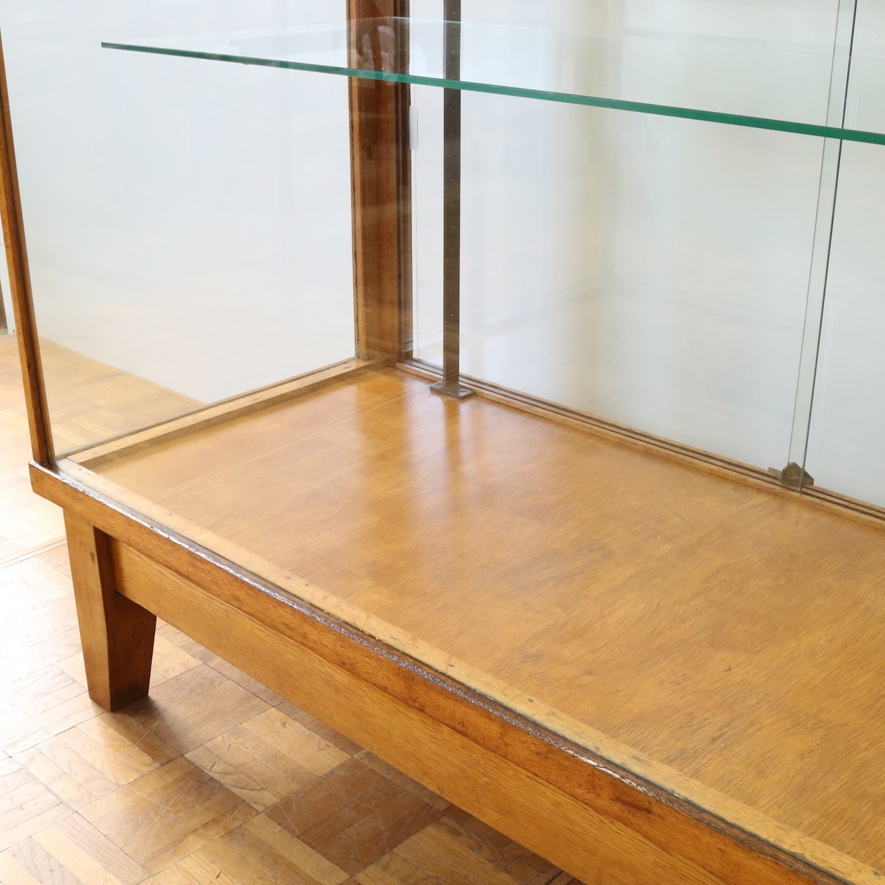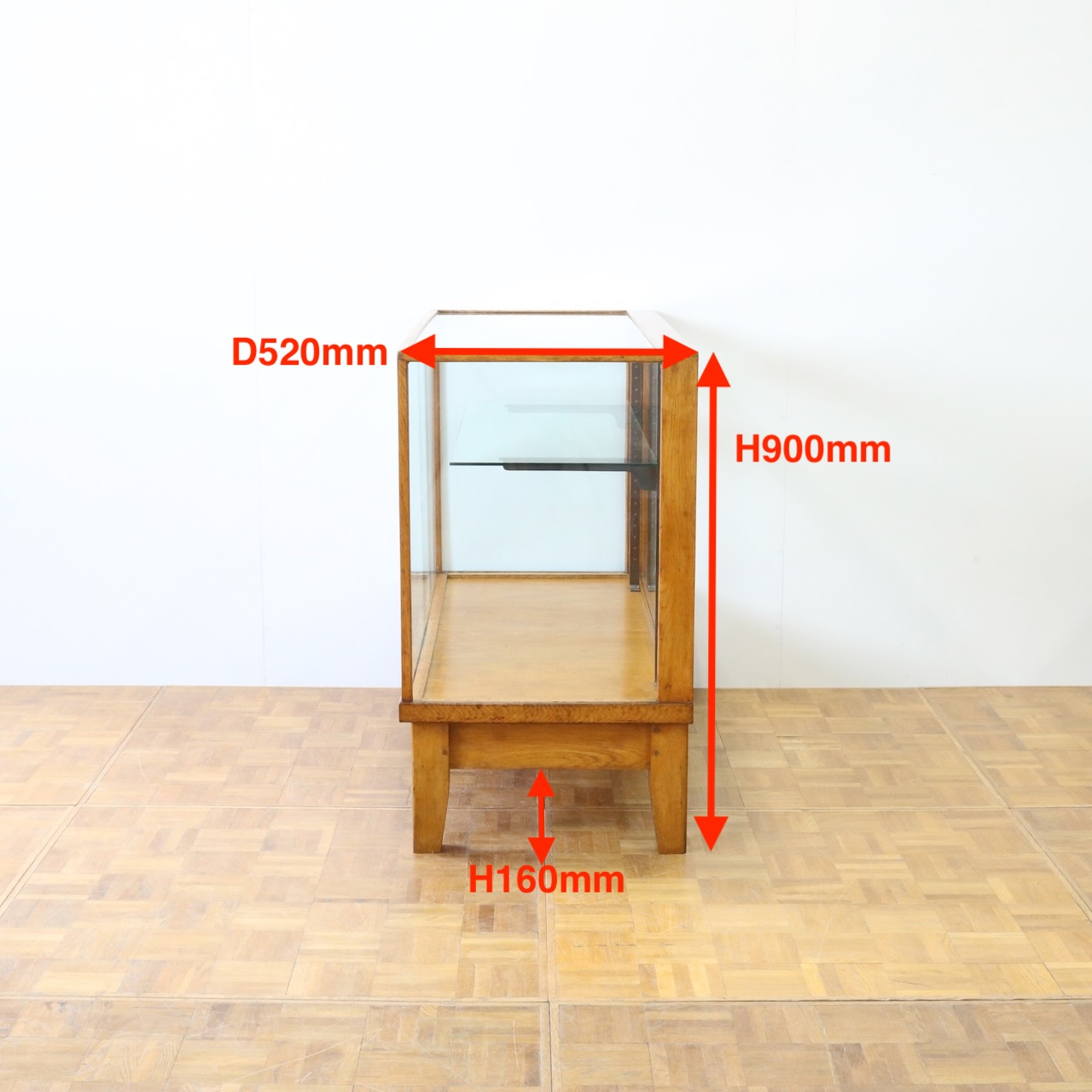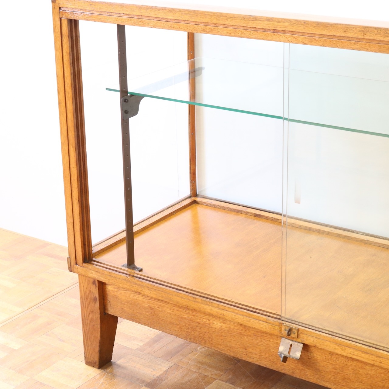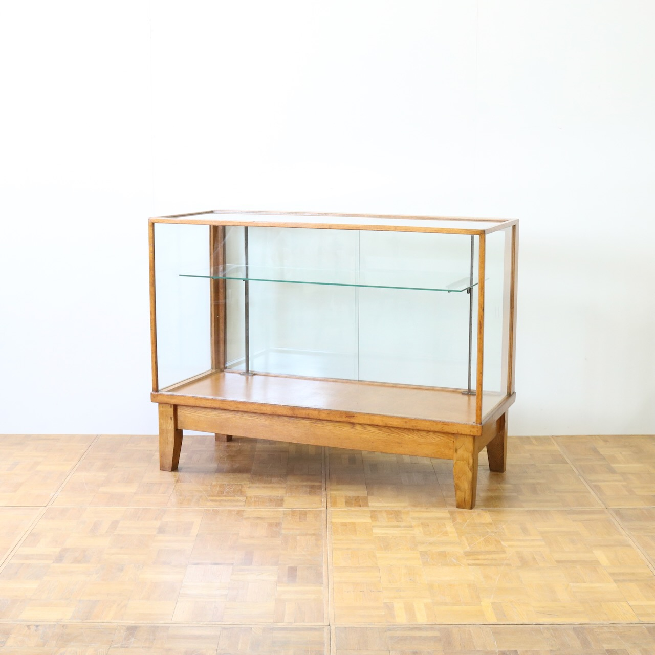 1930年代、オーク材のショップキャビネット。コンパクトサイズでたっぷりとした収納力、4面ガラスで中に飾るものも美しく見えます。店舗用の什器にいかがでしょうか。