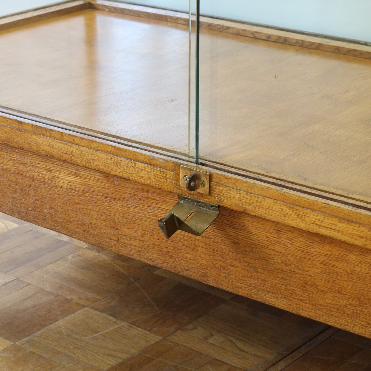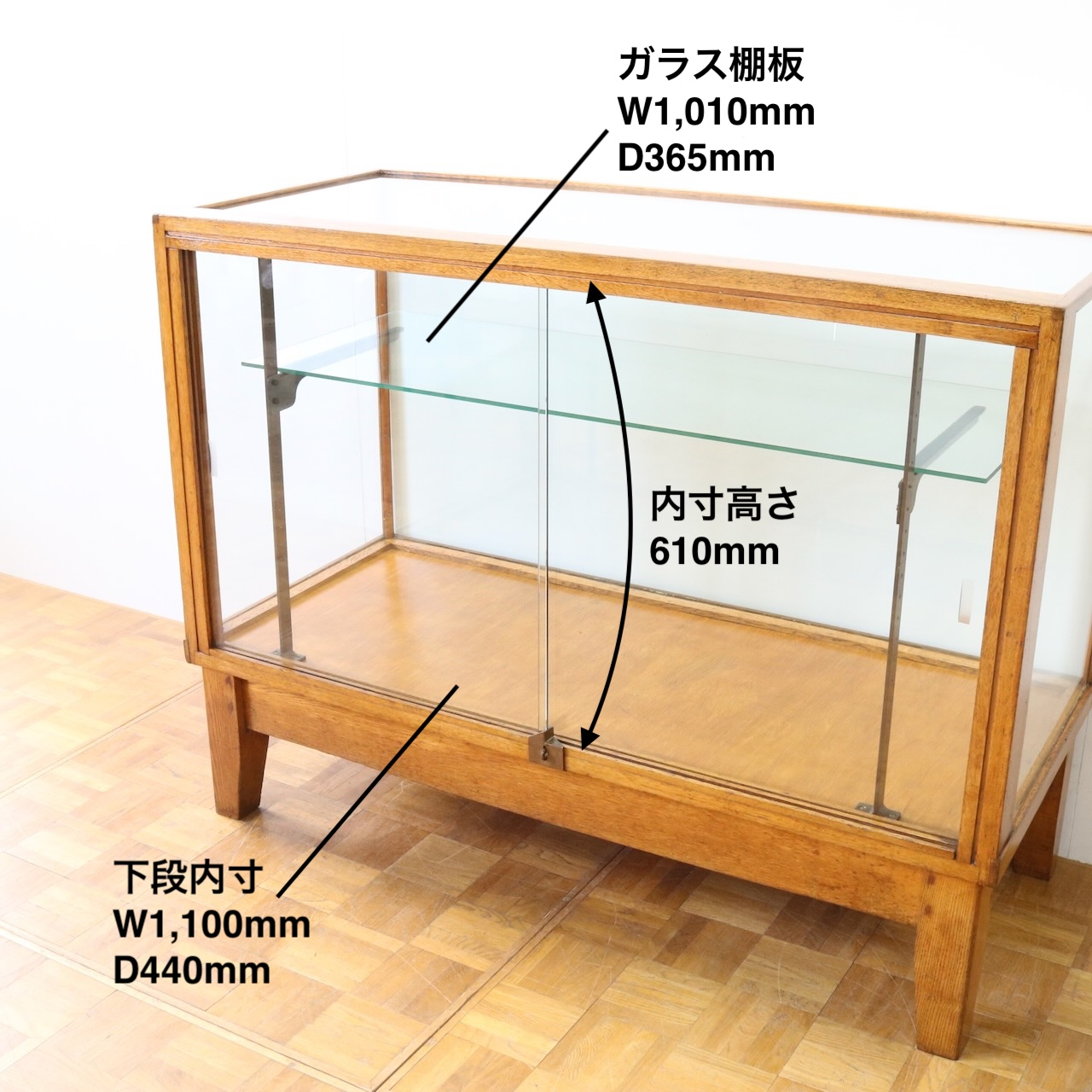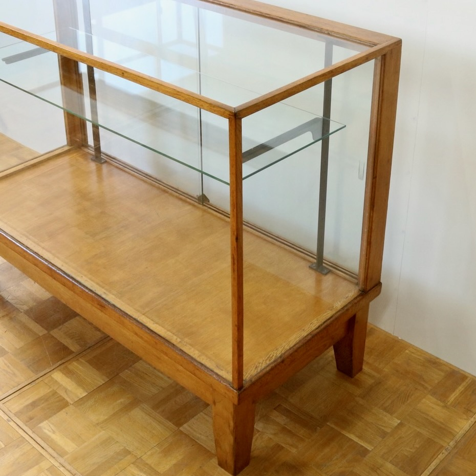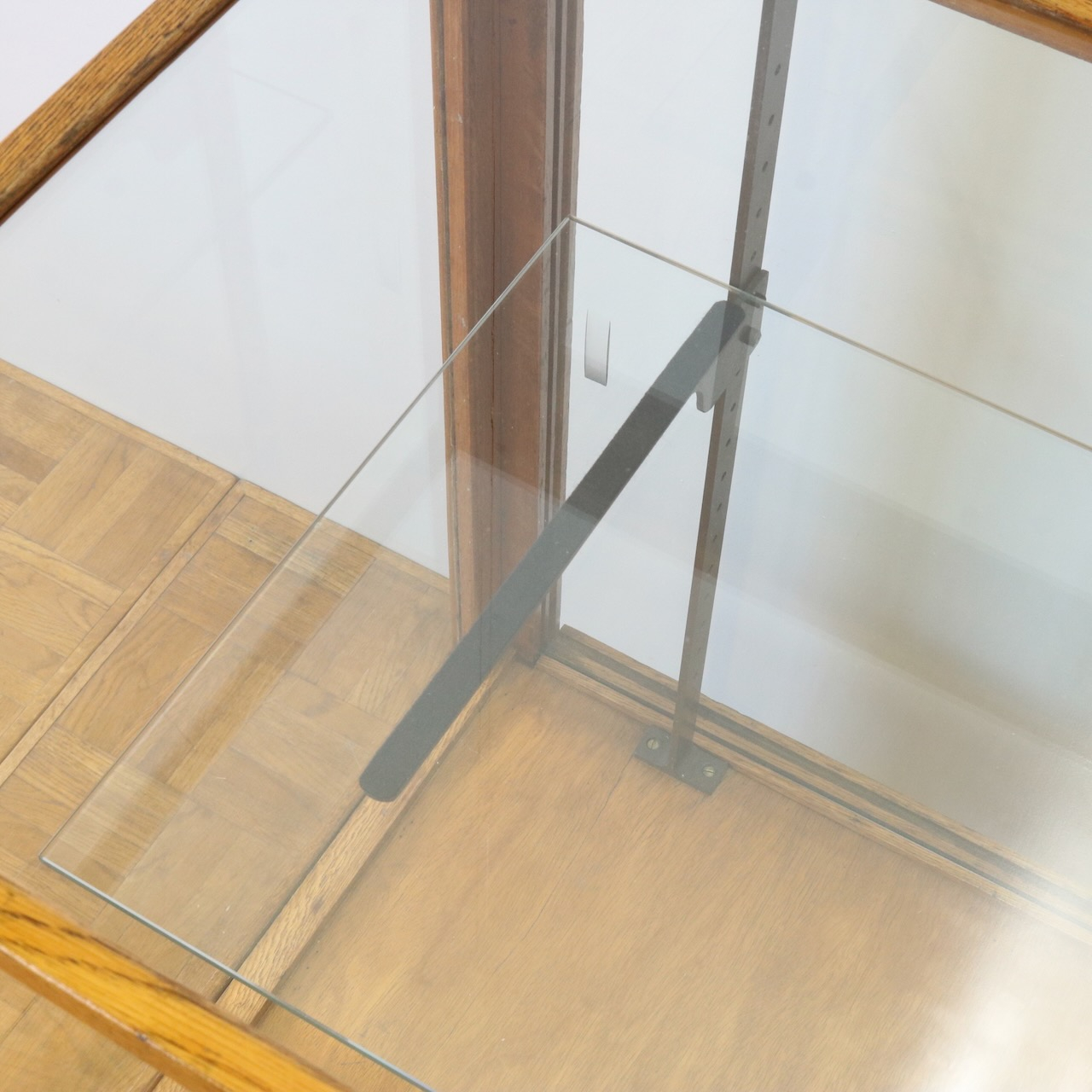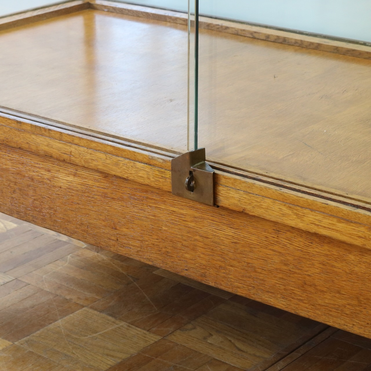 1930年代、オーク材のショップキャビネット。コンパクトサイズでたっぷりとした収納力、4面ガラスで中に飾るものも美しく見えます。店舗用の什器にいかがでしょうか。