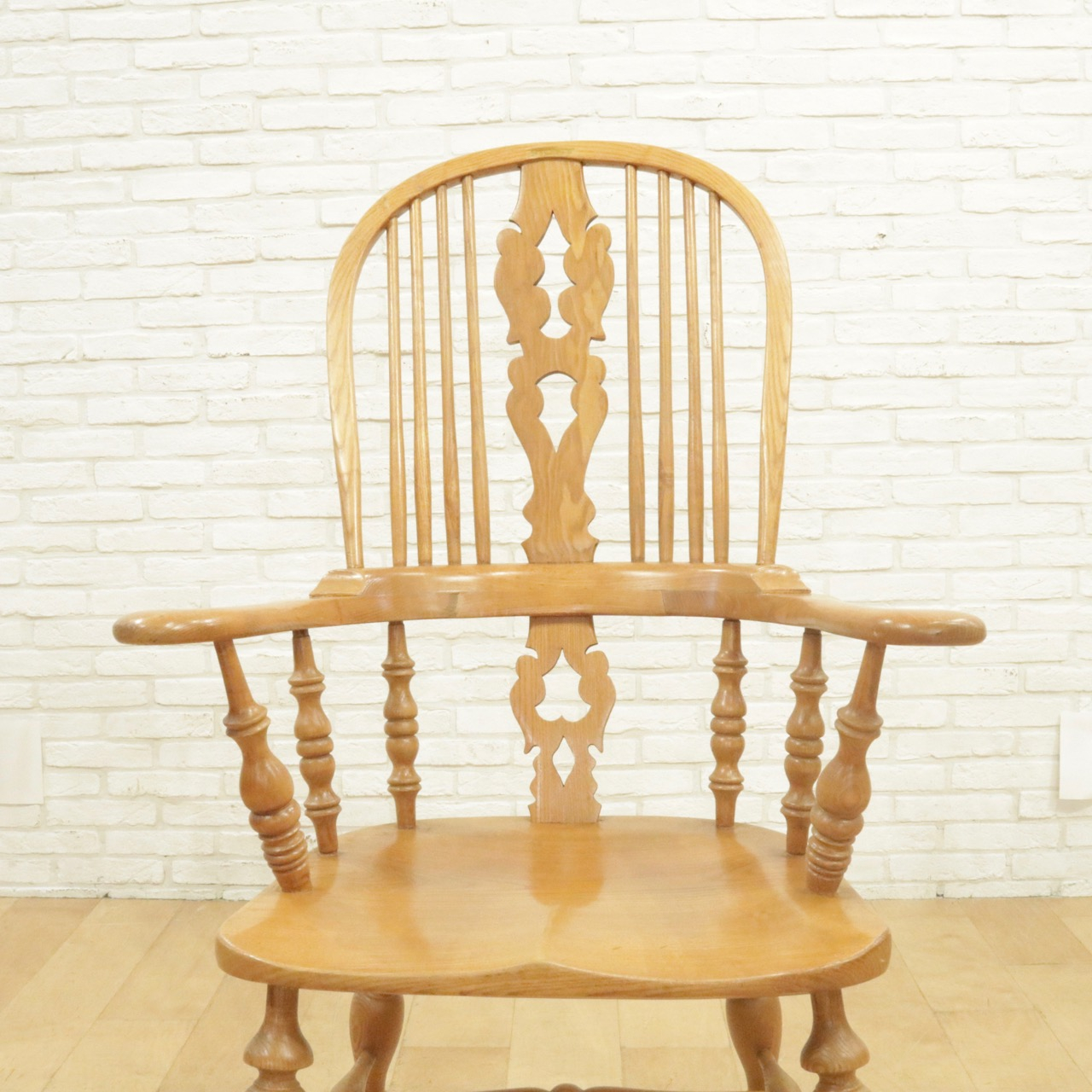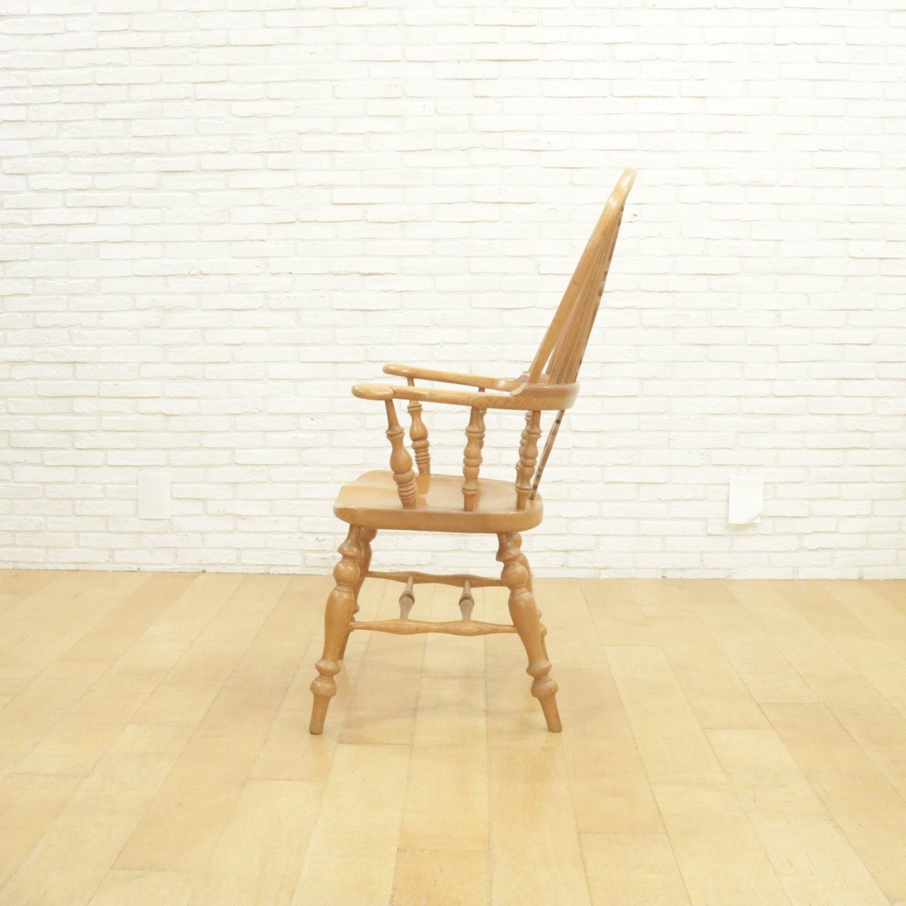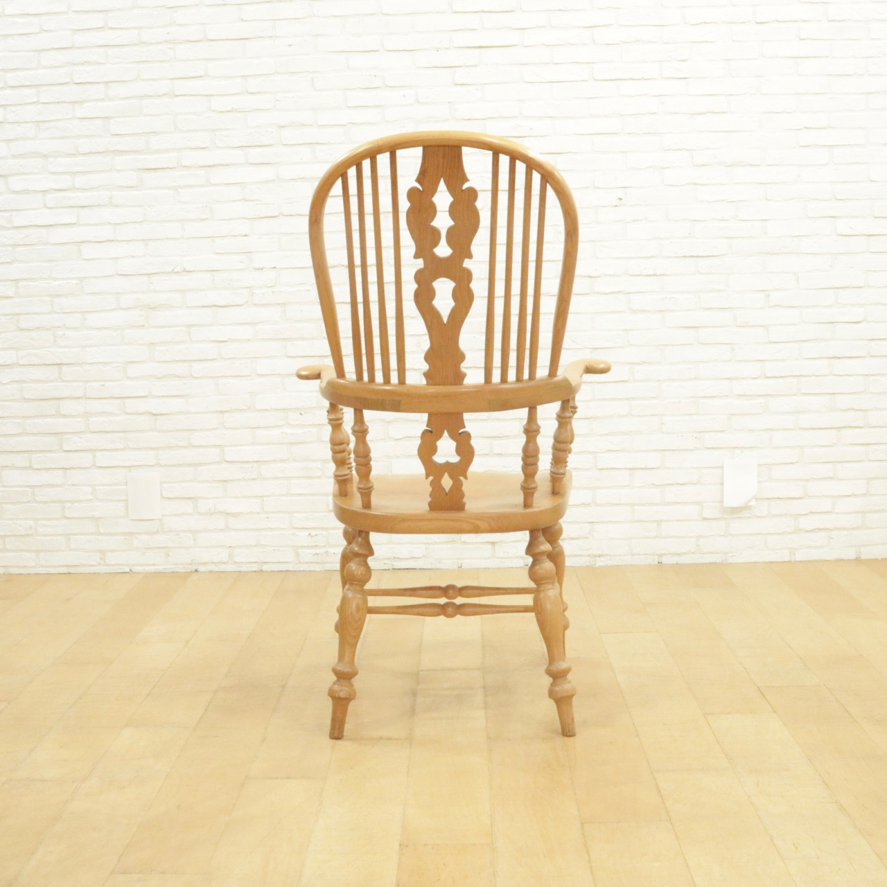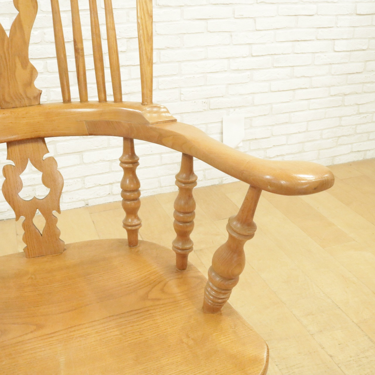 配送料の目安 ▶︎エルム材のウィンザーチェア。大きな背もたれとアームでゆったりと身を預けることができます。