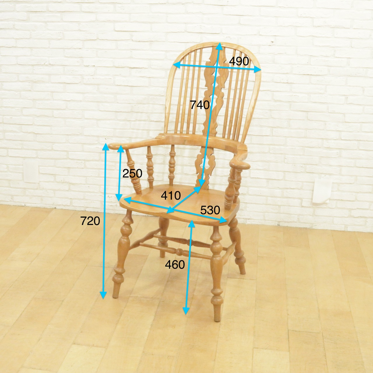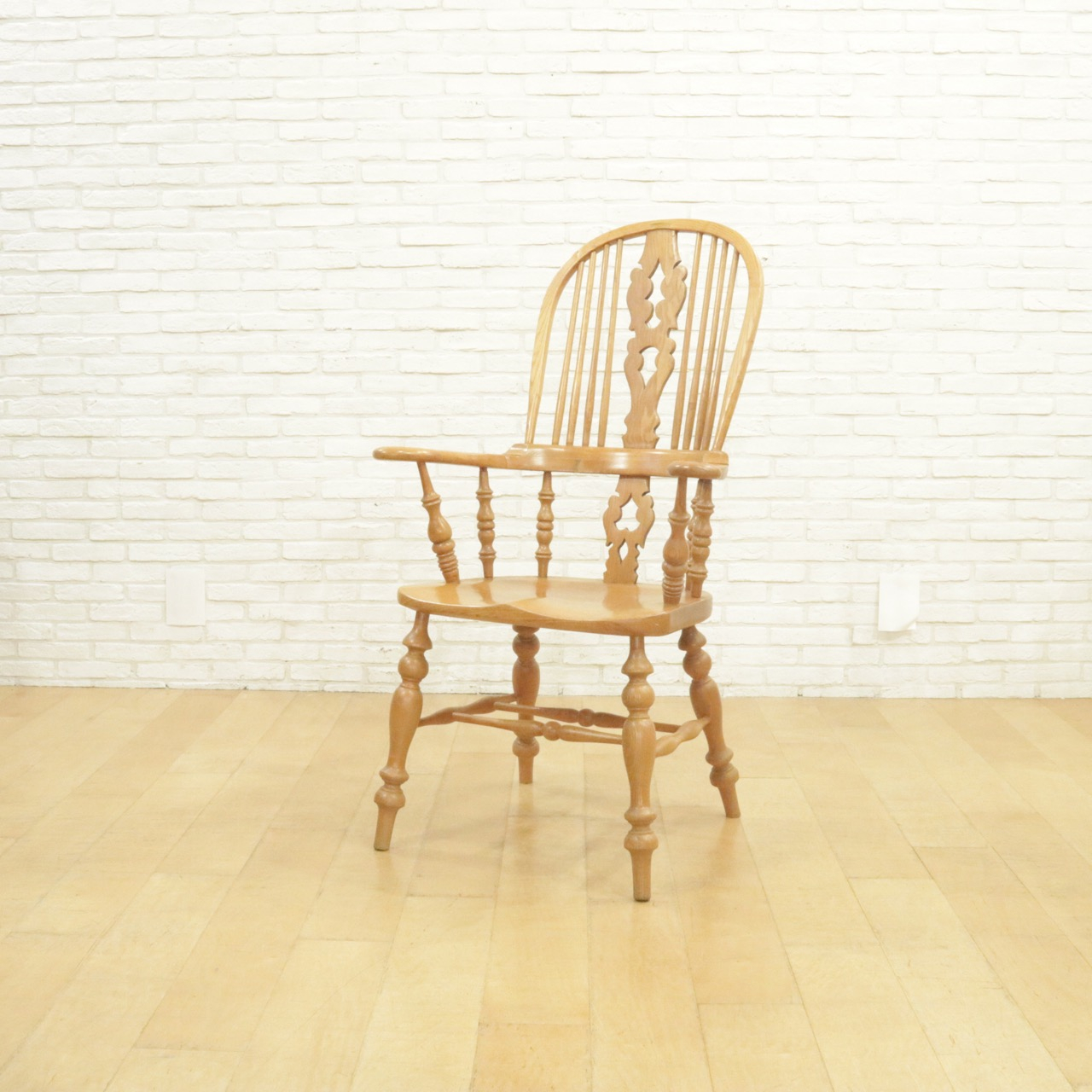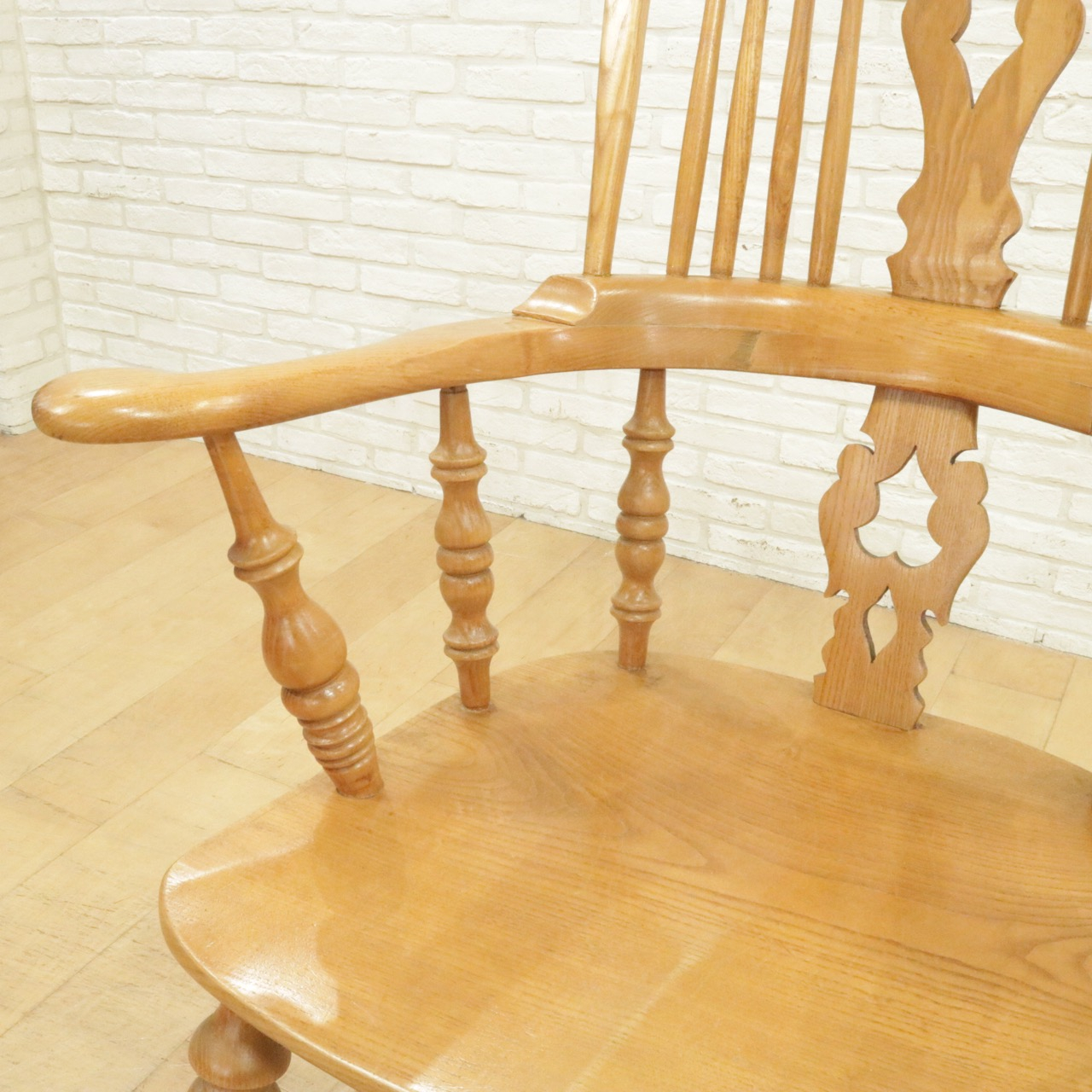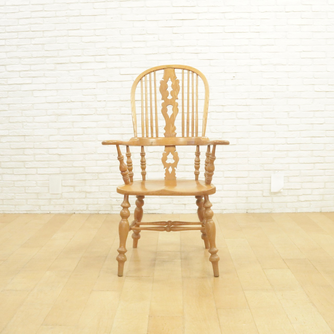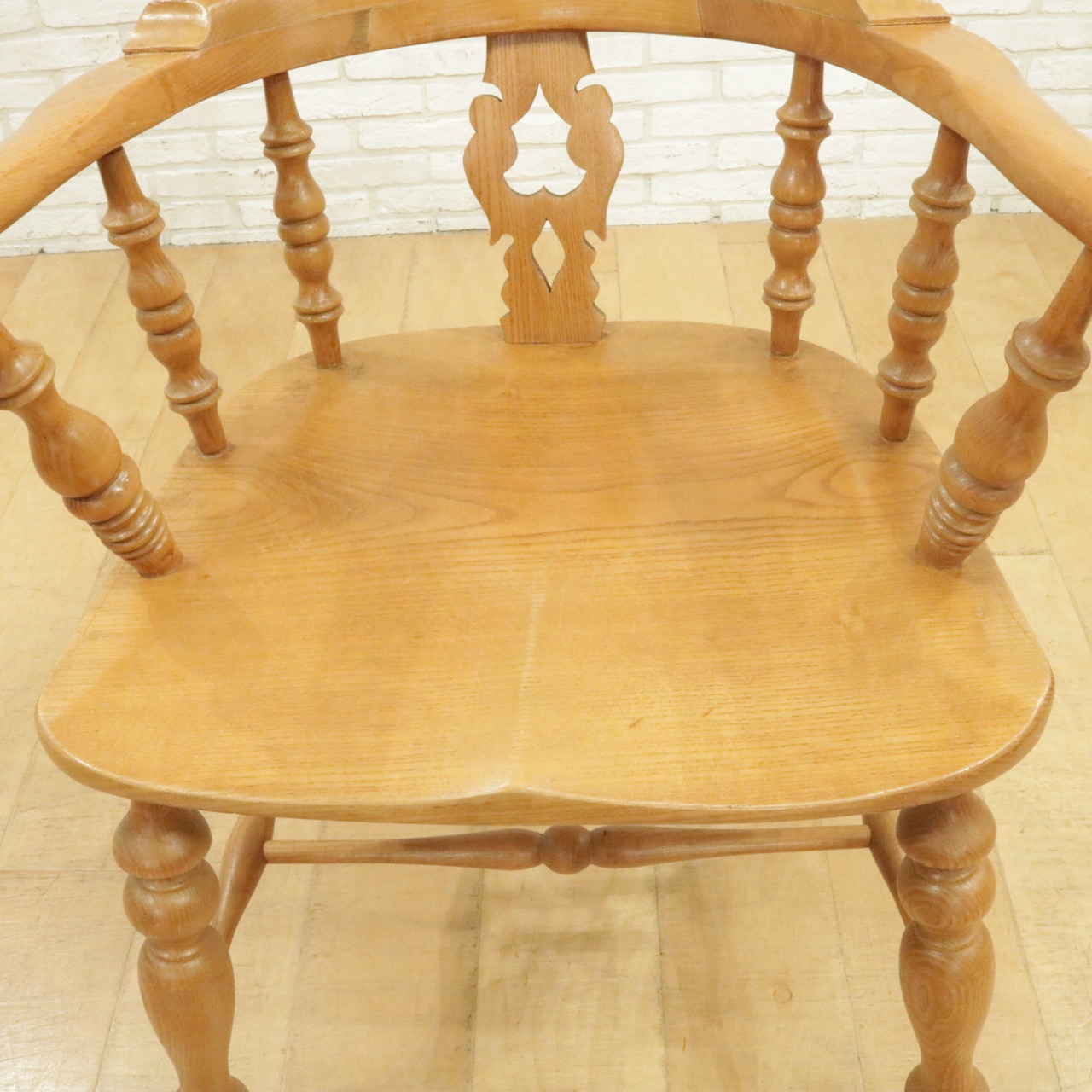 配送料の目安 ▶︎エルム材のウィンザーチェア。大きな背もたれとアームでゆったりと身を預けることができます。