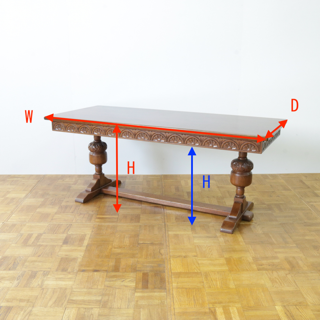 配送料の目安 ▶︎オーク材のコーヒーテーブル。幕板の彫刻や脚のブルボースがクラシックです。長方形でソファの前に収まり良くセッティングが出来ます。