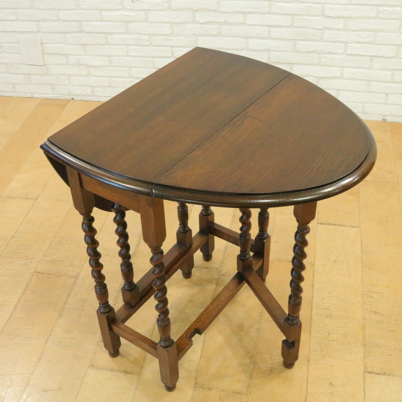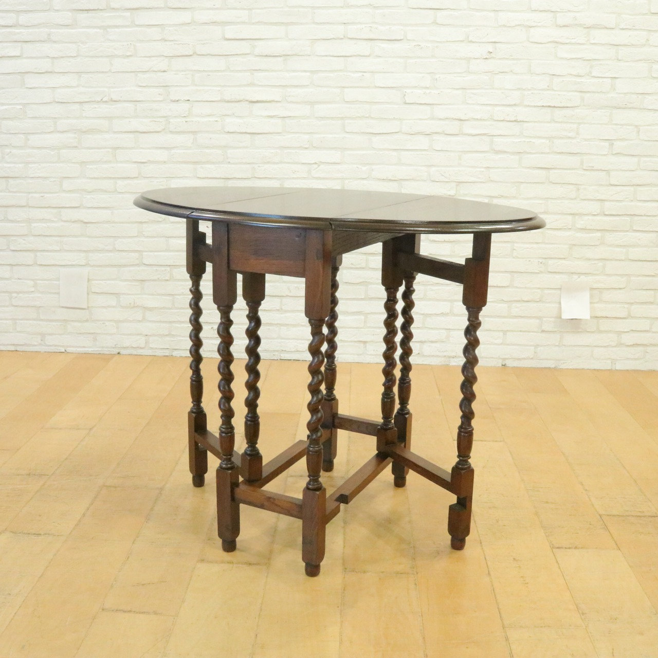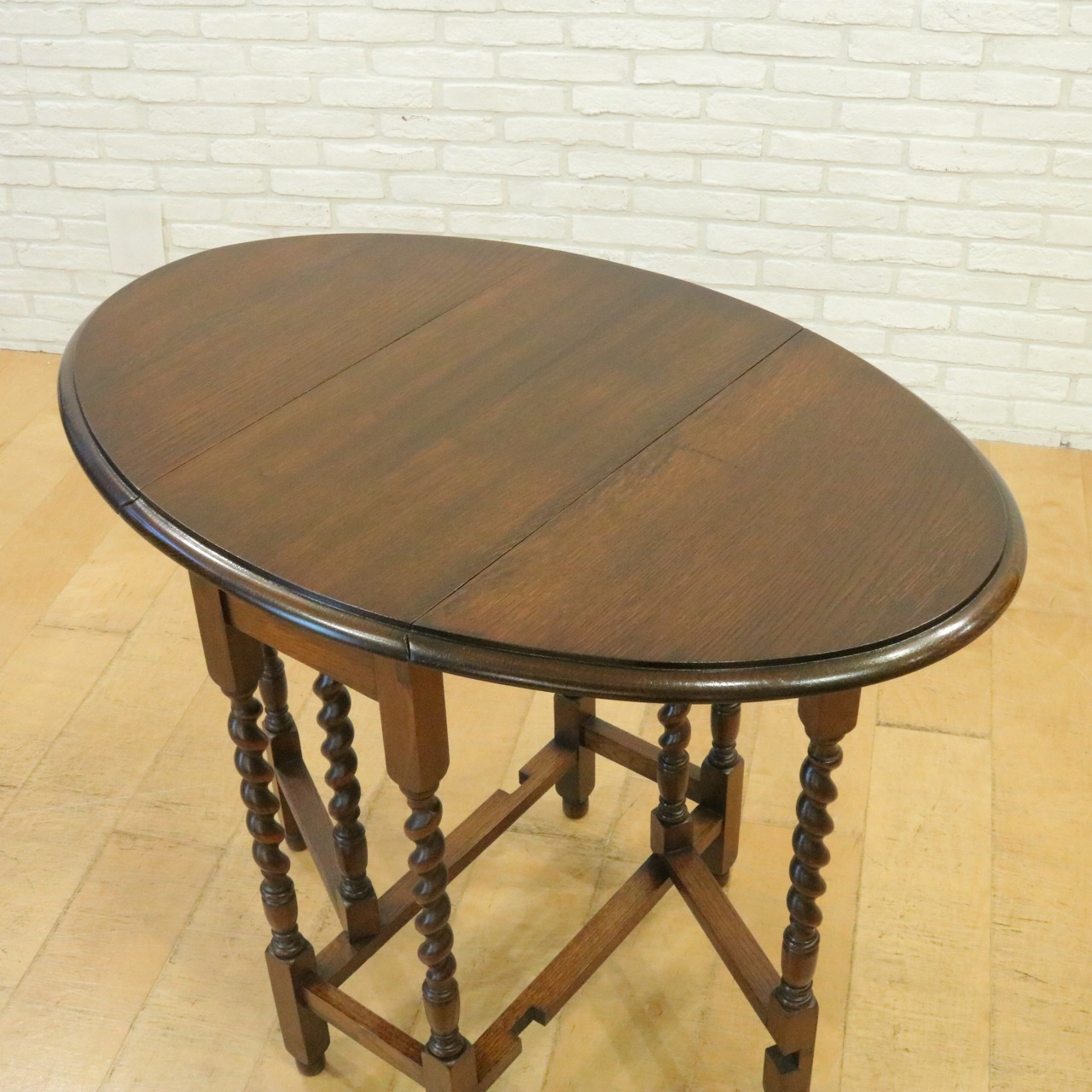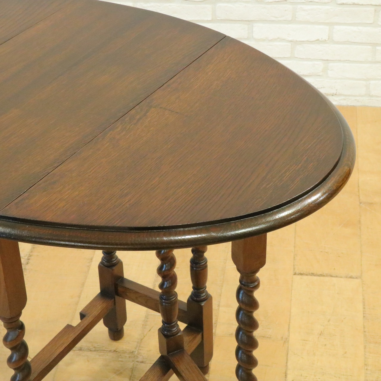 オーバル天板×バーリーシュガーツイストレッグのゲートレッグテーブルはアンティークの王道デザイン。