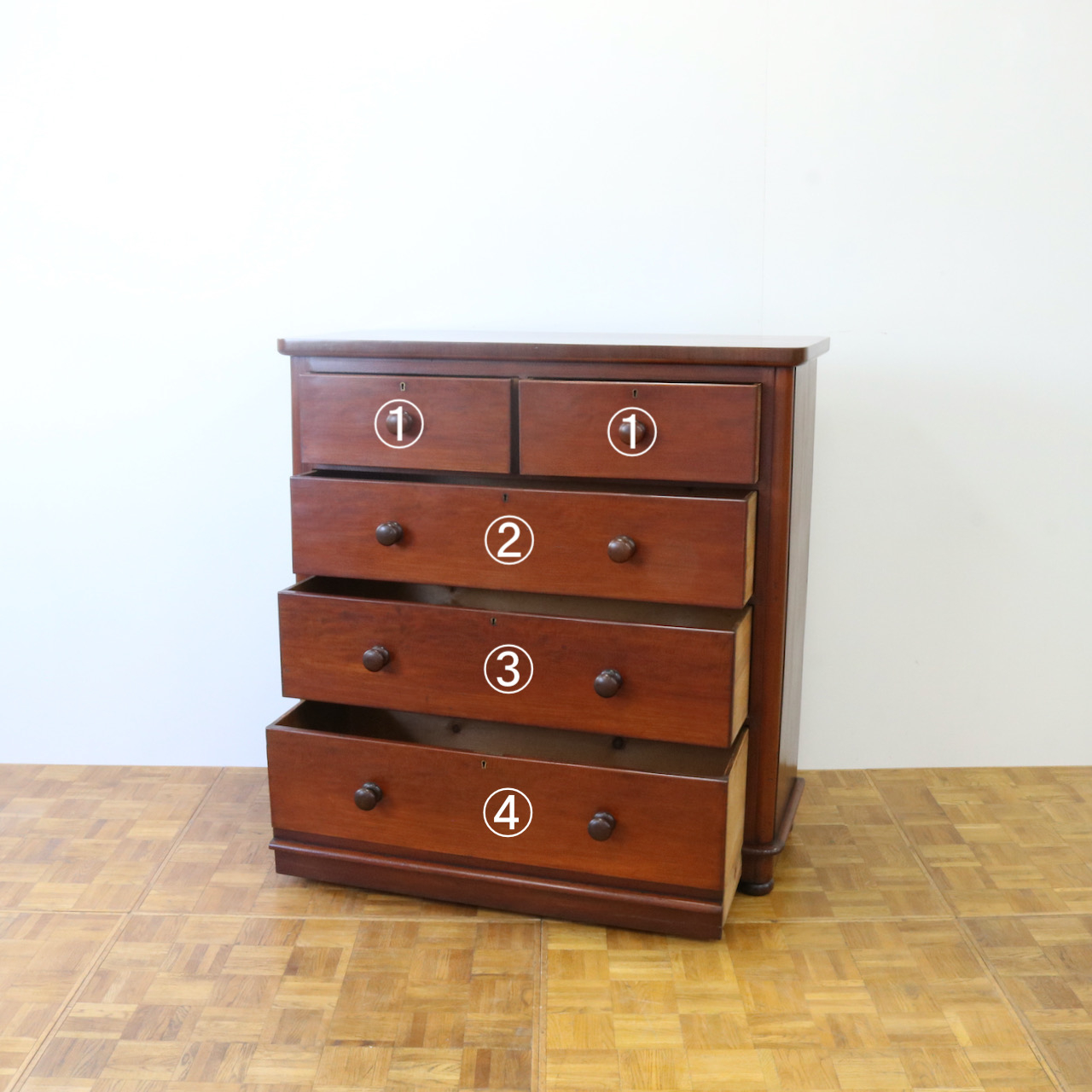 配送料の目安 ▶︎1890年代ヴィクトリアン 、マホガニーのチェスト。