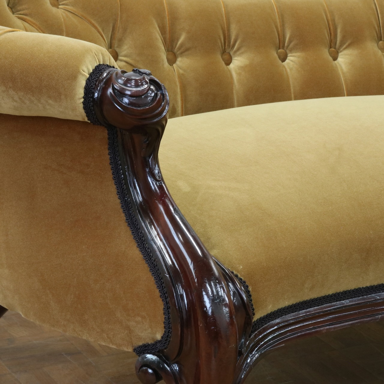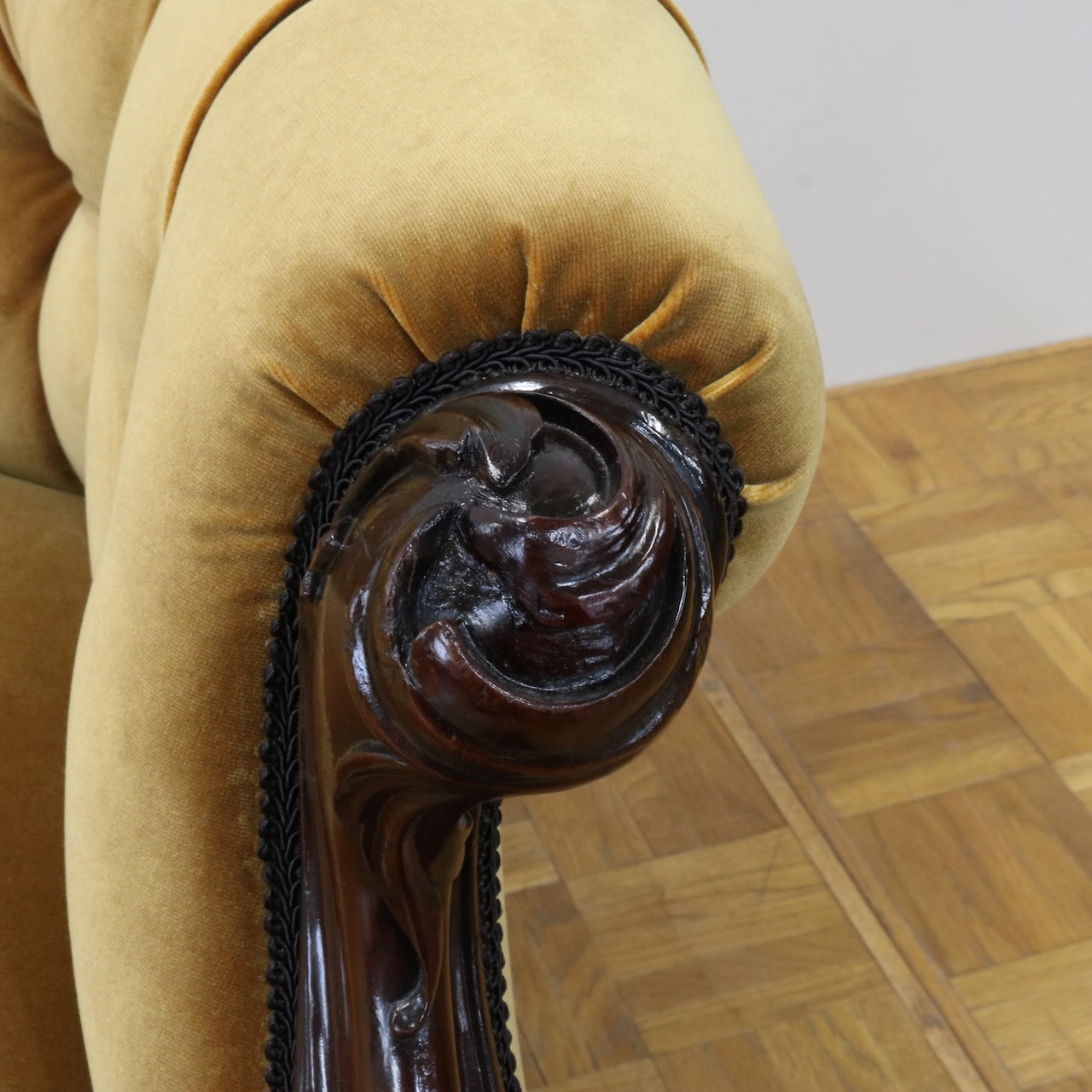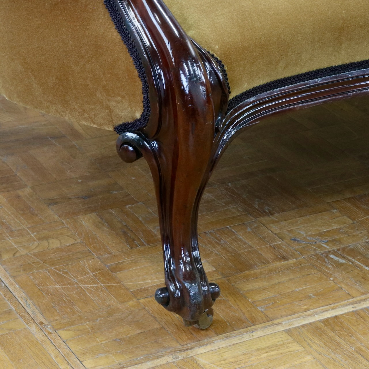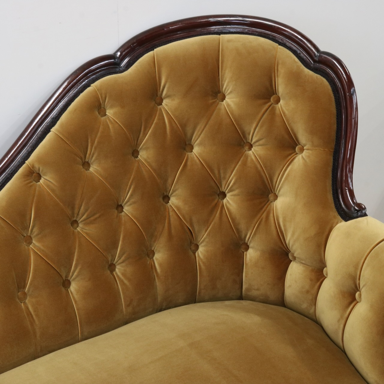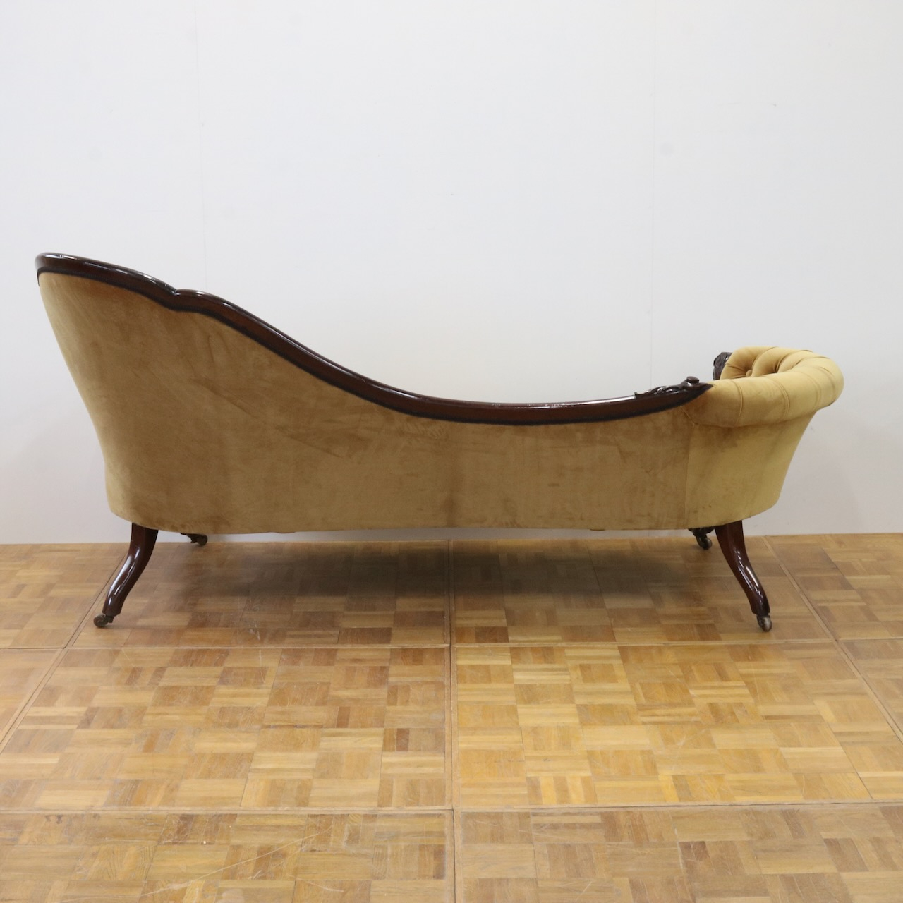 1890年代ヴィクトリアン期、ウォールナット材のカウチ。ゆったりと身を預けられる背もたれのカーブが優美で、エレガントな空間の主役になれる家具です。