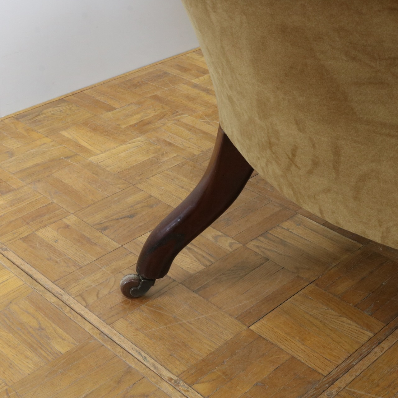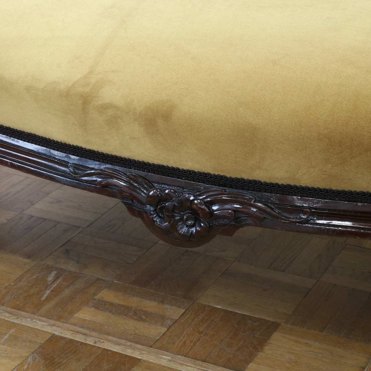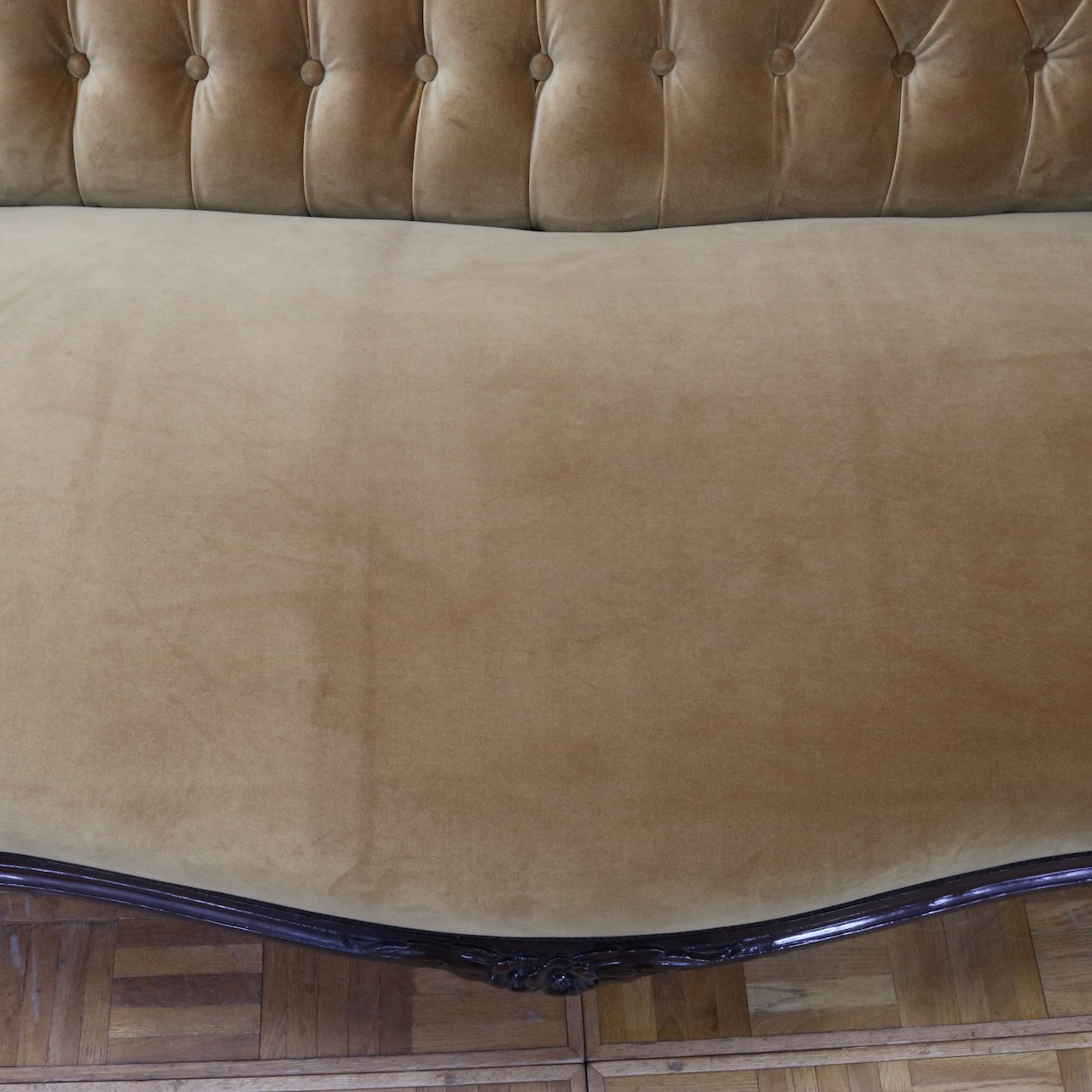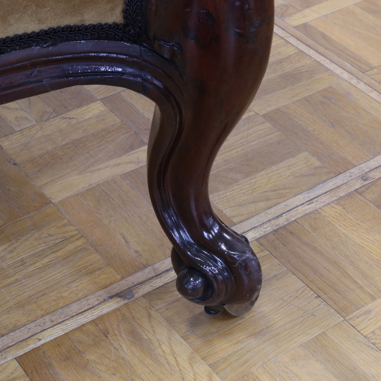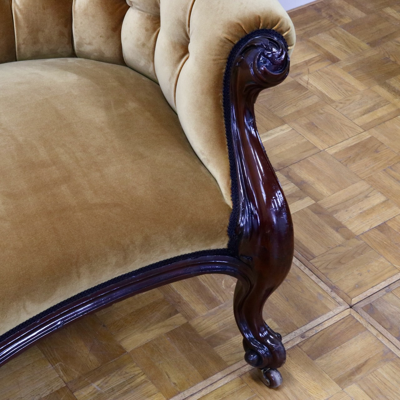 1890年代ヴィクトリアン期、ウォールナット材のカウチ。ゆったりと身を預けられる背もたれのカーブが優美で、エレガントな空間の主役になれる家具です。