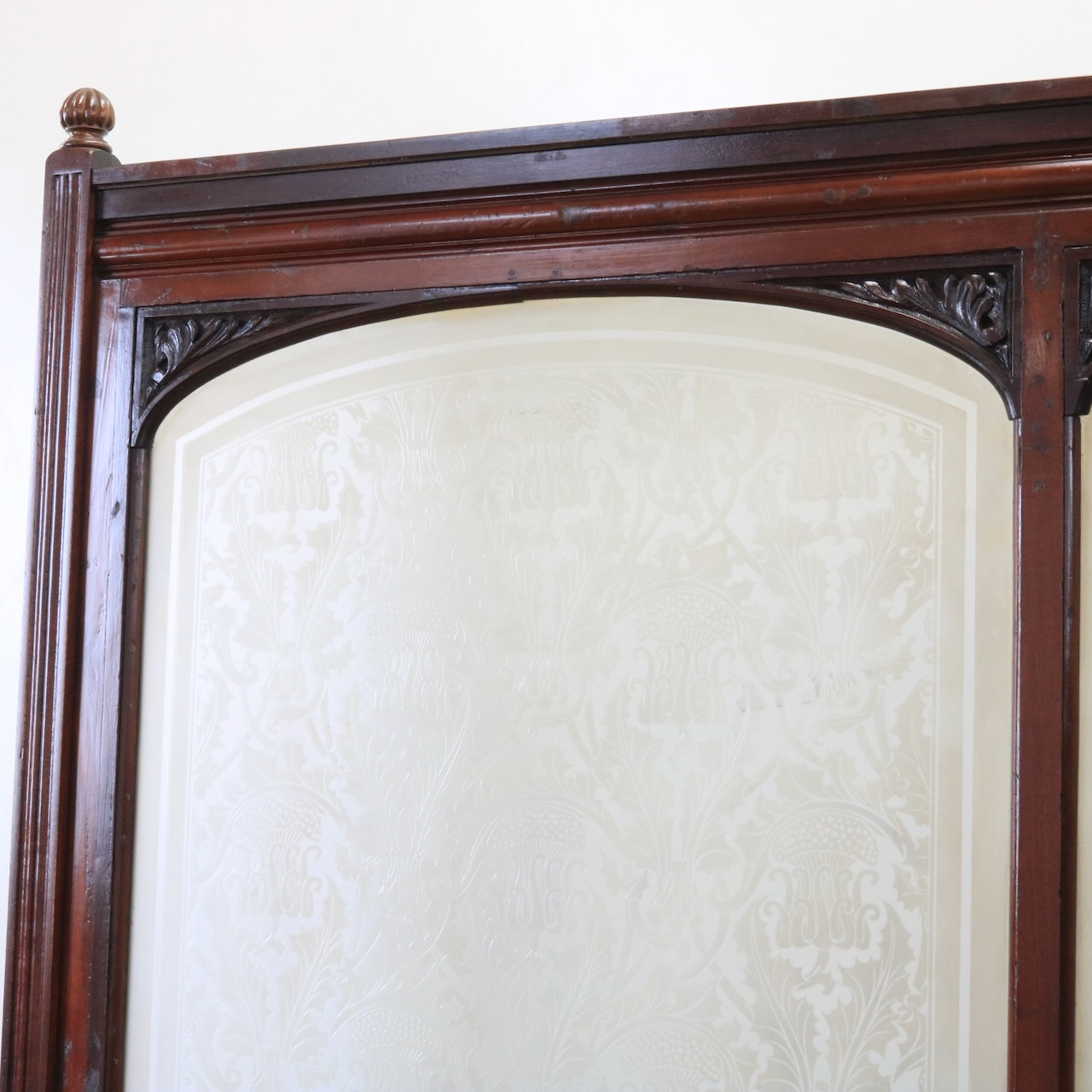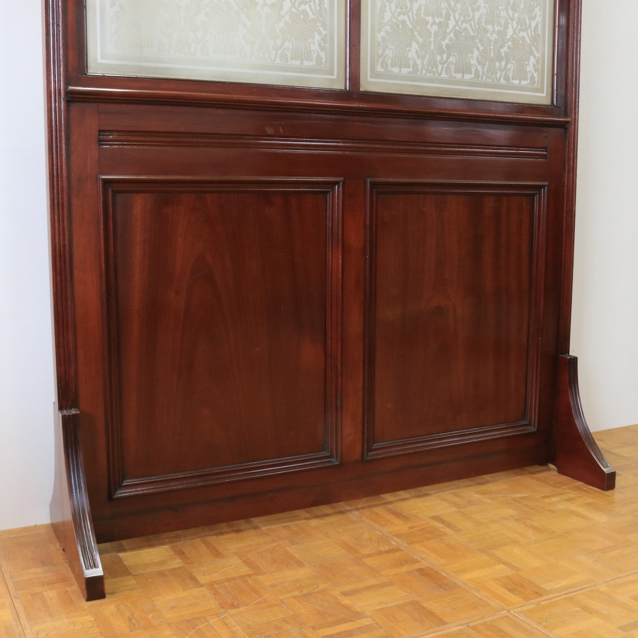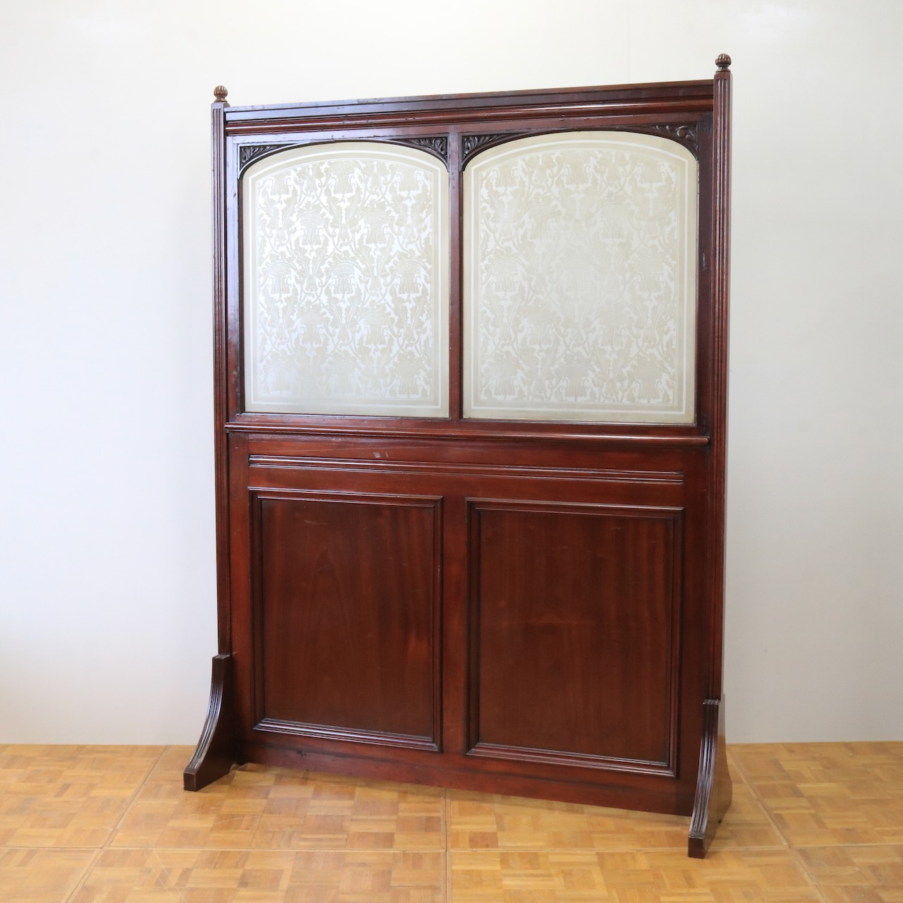 1880年代のマホガニーのパーツとステンドグラスに脚部を取り付けて製作したパーティション。