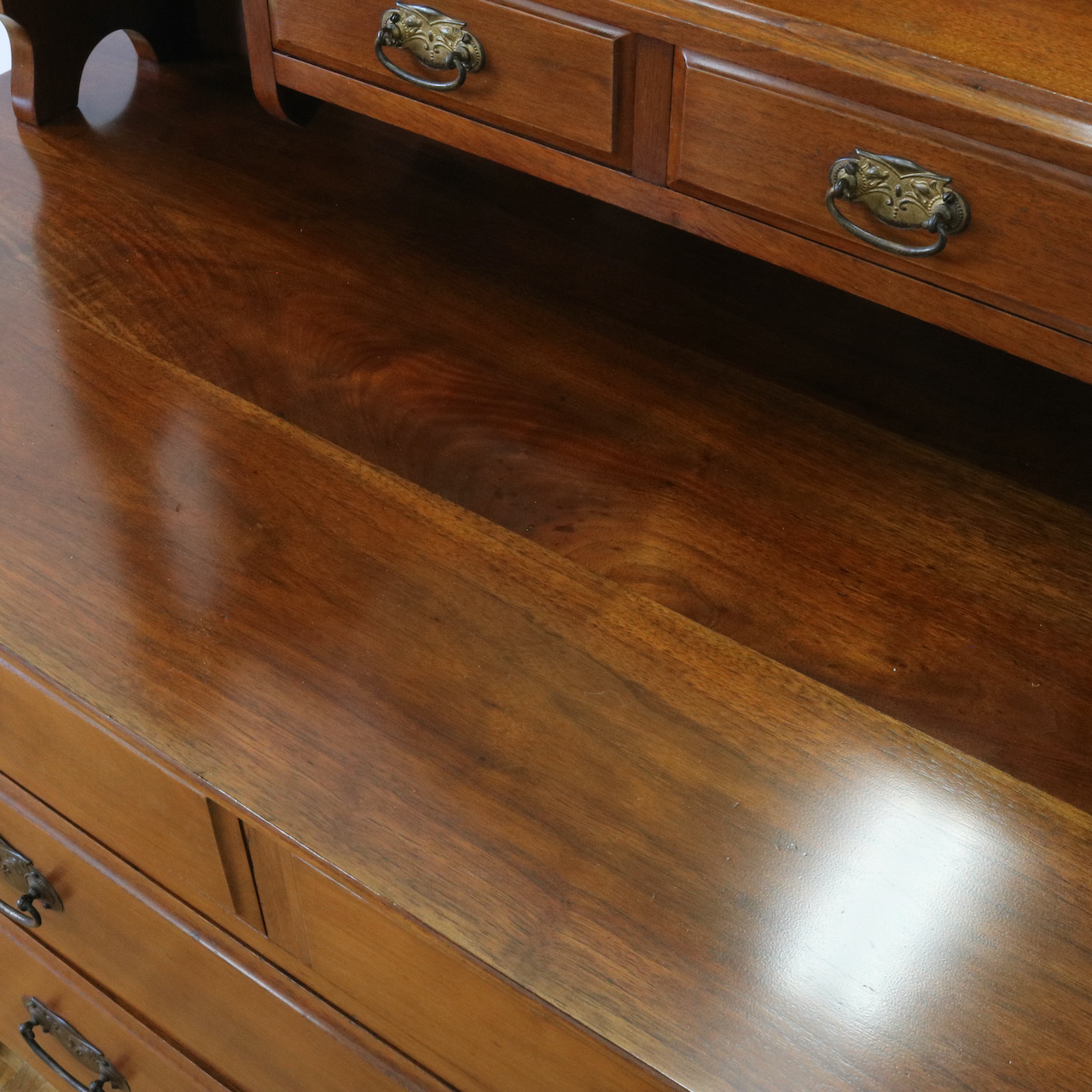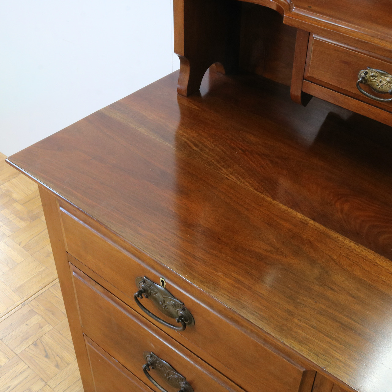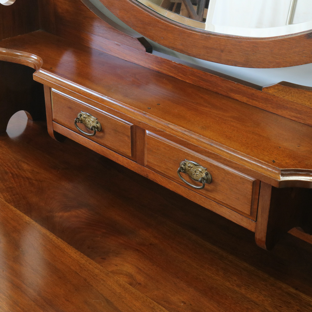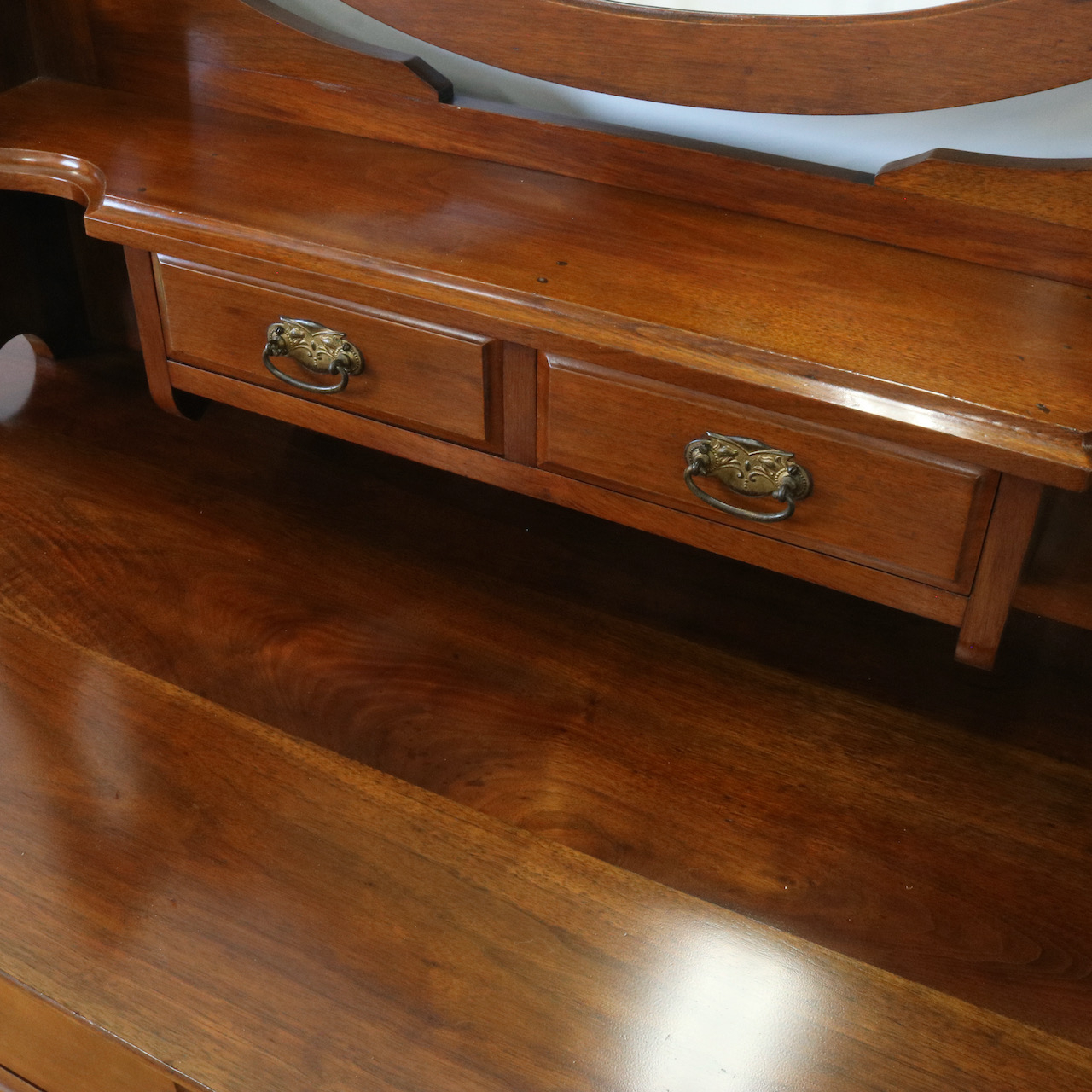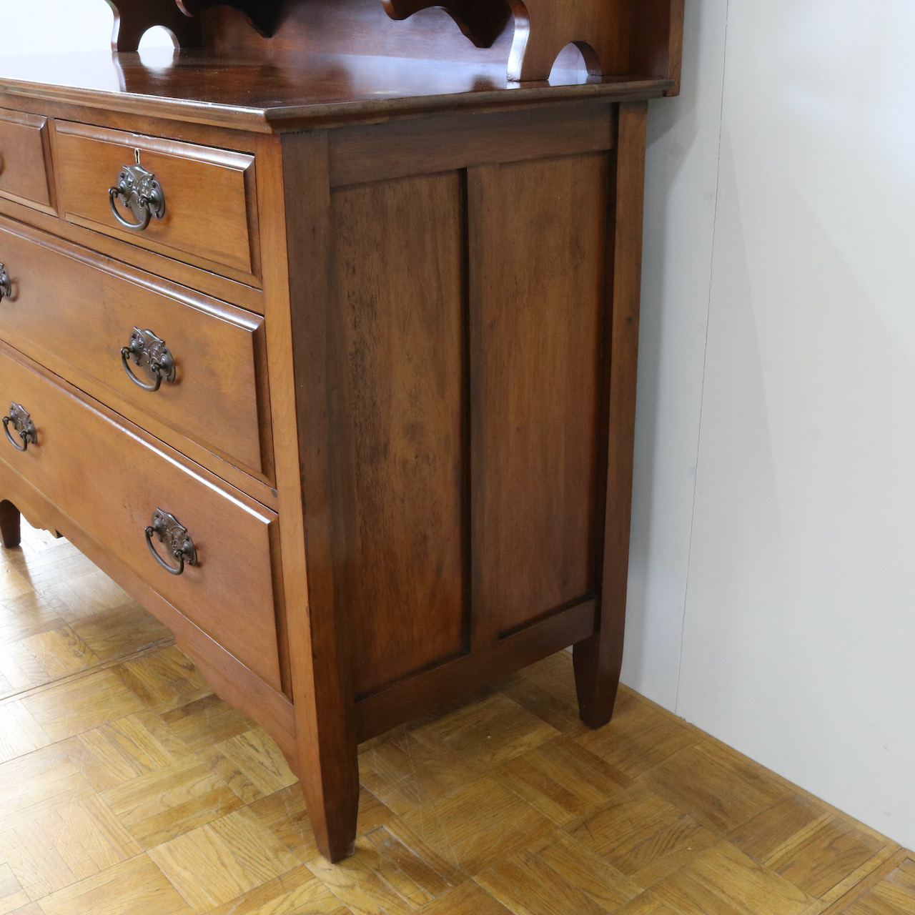 配送料の目安 ▶︎1930年代、ウォールナット材のドレッシングチェスト。楕円形の大きなミラーに、お化粧品やアクセサリー小物などを置いておきやすい棚や小さな引き出しなど機能性に優れた家具です。収納力抜群のチェスト部分も嬉しいですね。