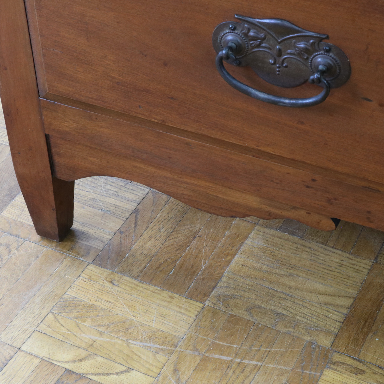 こちらの取っ手金具も上段の小さな引き出しとおそろいのデザインです。