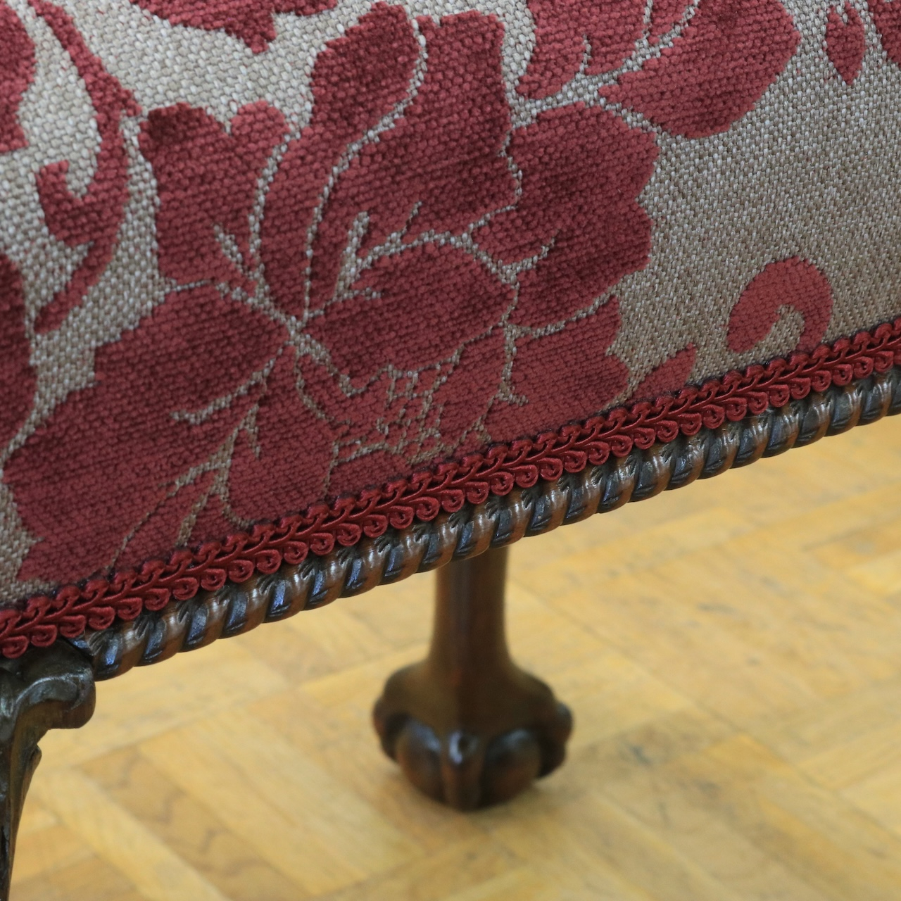 深いエンジ色の花柄の張り地がクラシックな雰囲気を添えています。