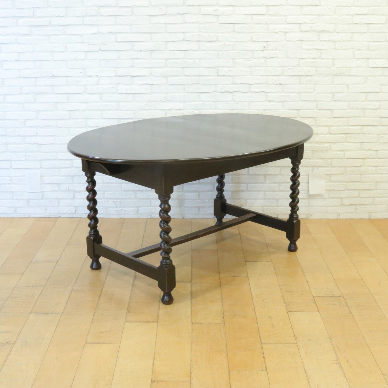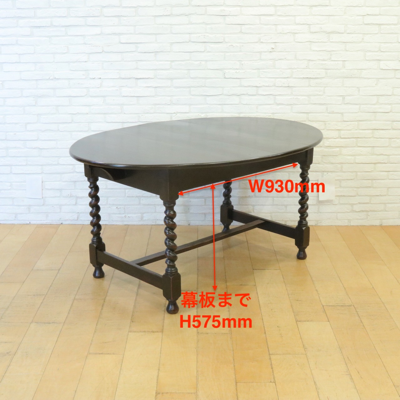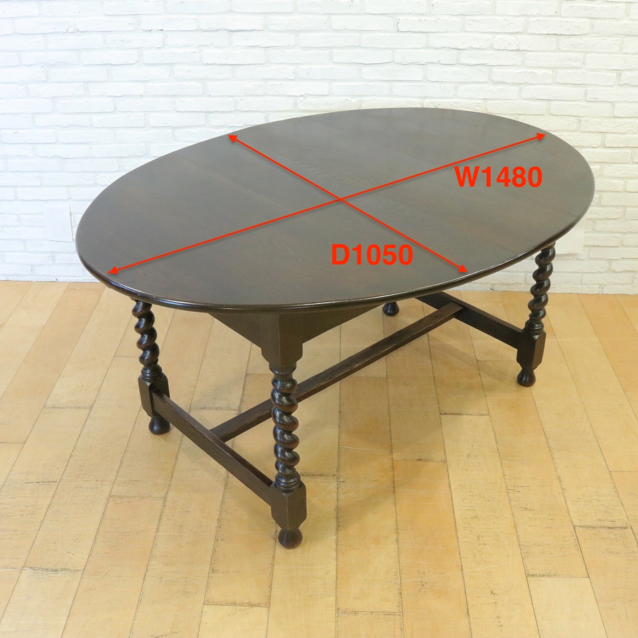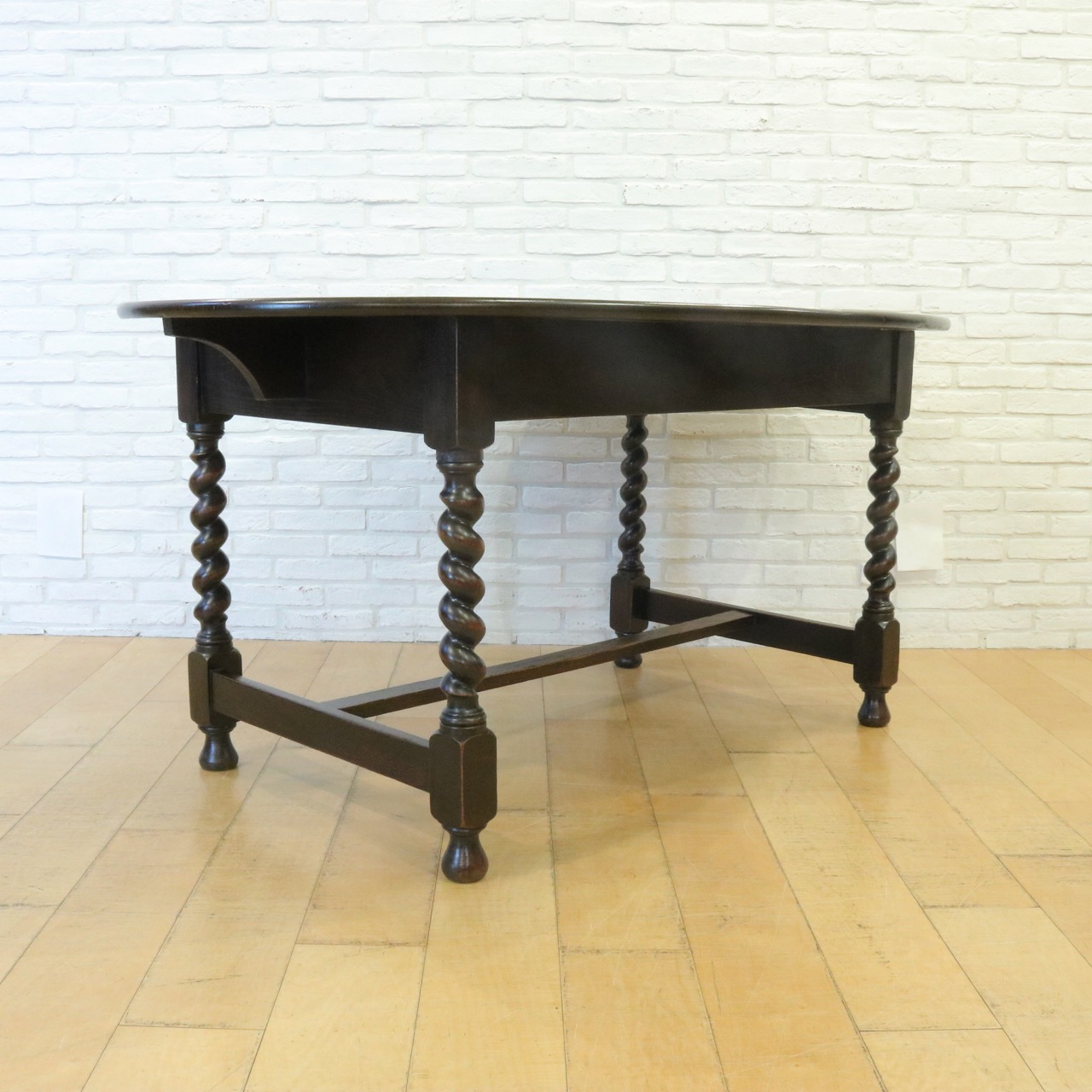 オーク材らしい美しい木目と、特徴的なバーリーシュガーツイストの脚部がポイントです。