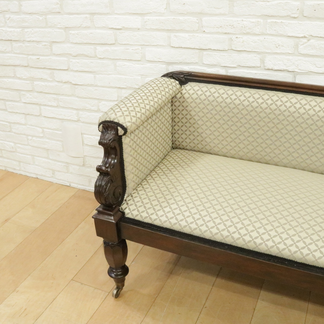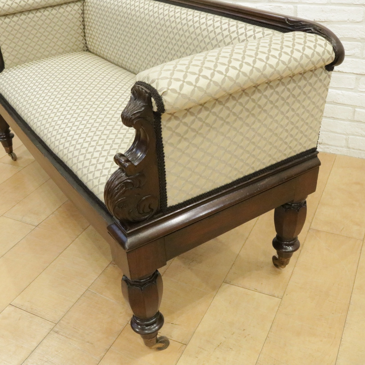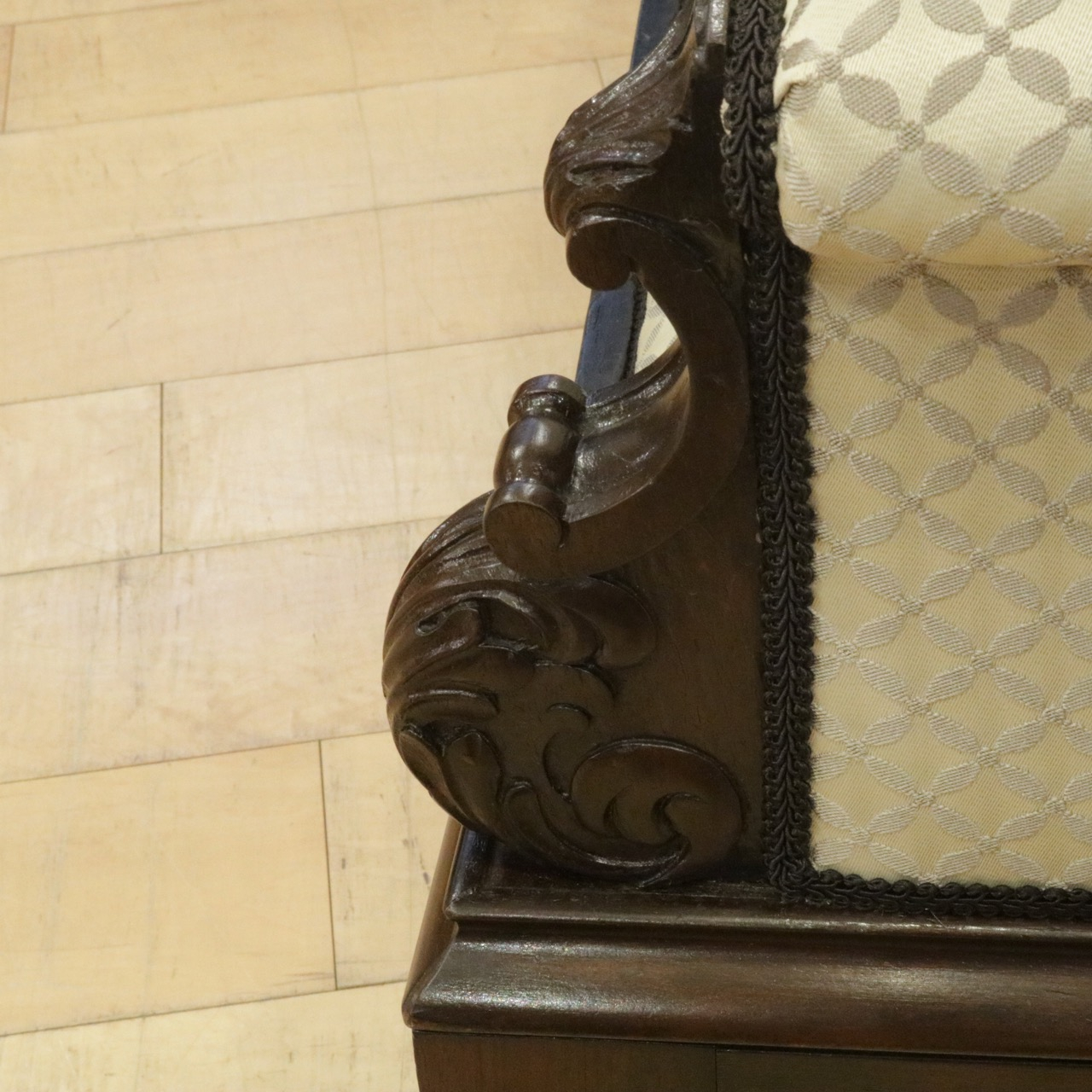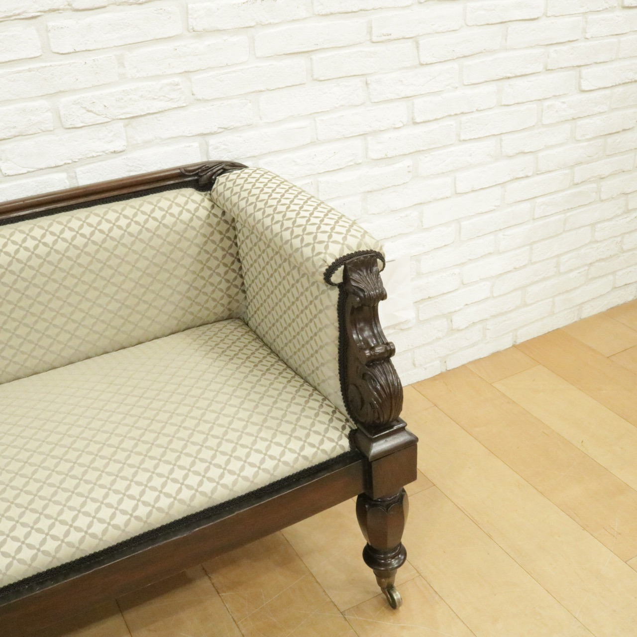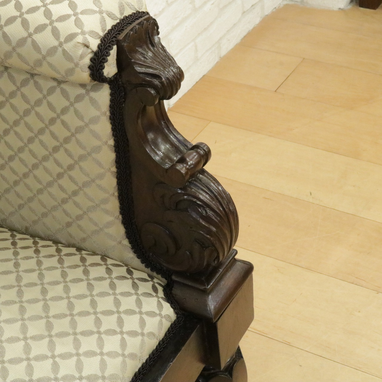 アーム部前面や左右背の角にはアカンサスをモチーフとした美しい装飾が施されています。