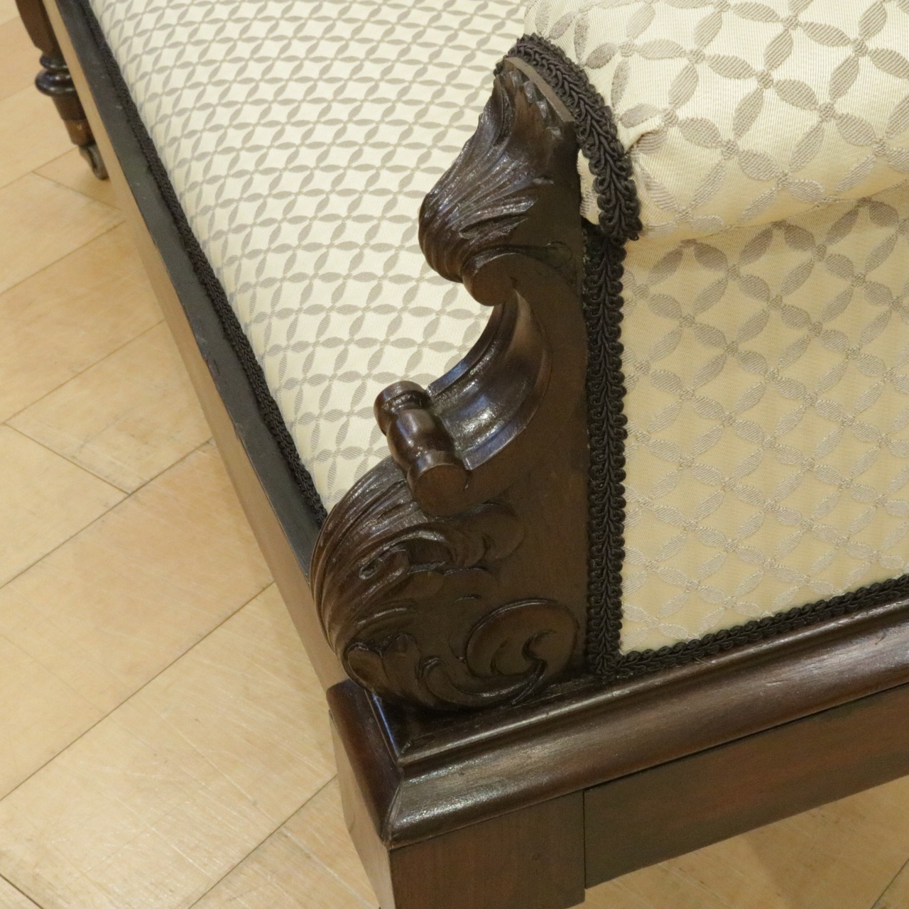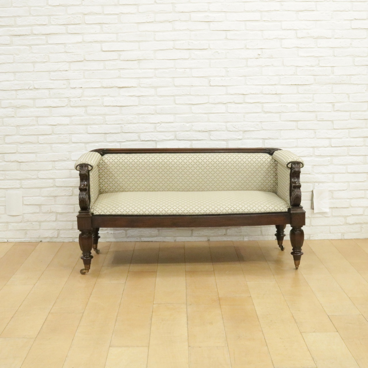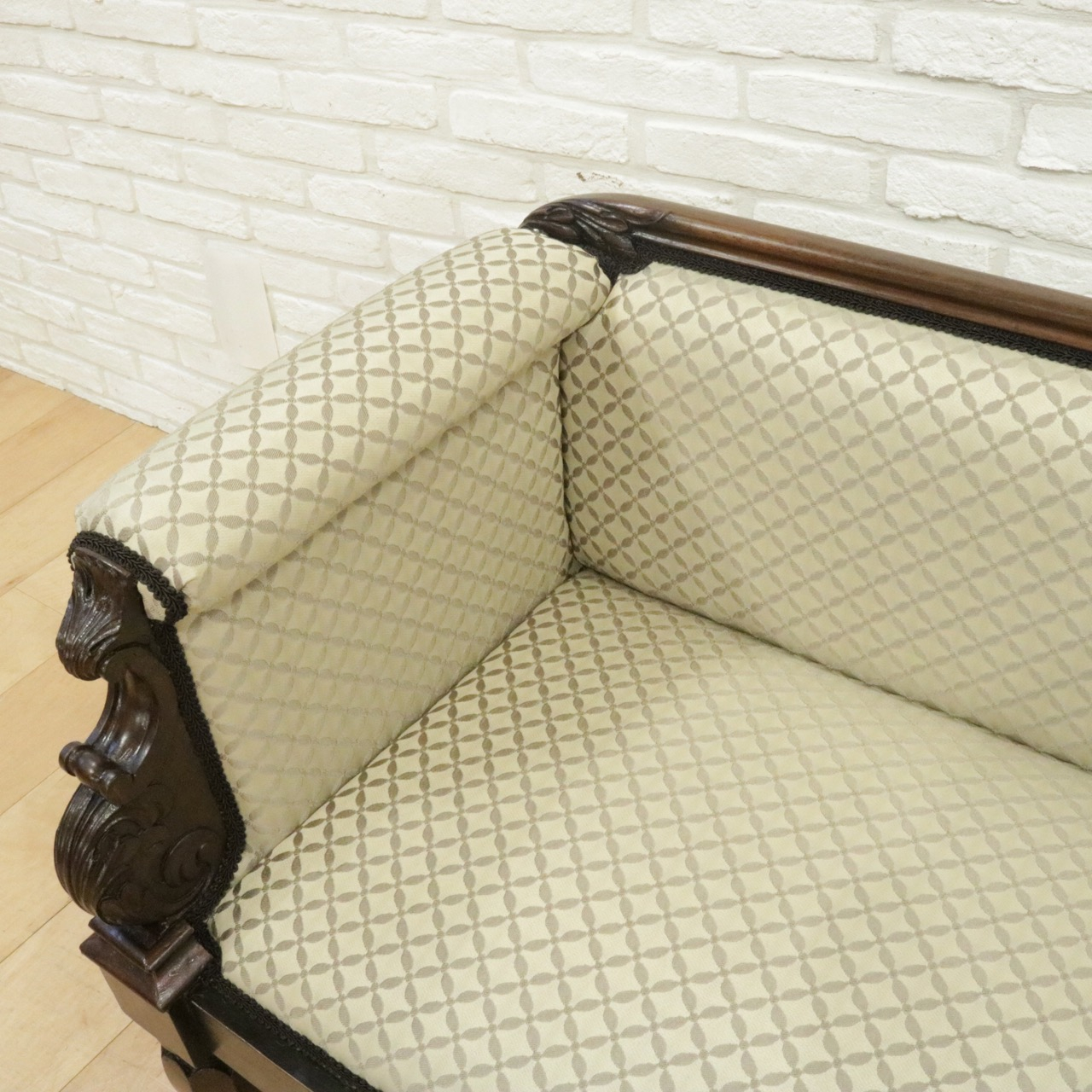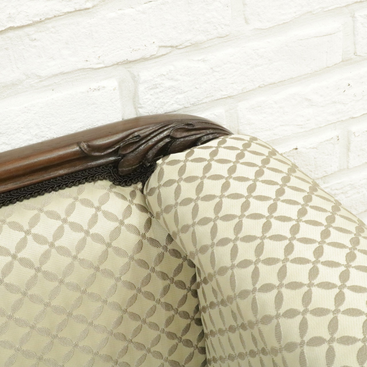 アーム部前面や左右背の角にはアカンサスをモチーフとした美しい装飾が施されています。