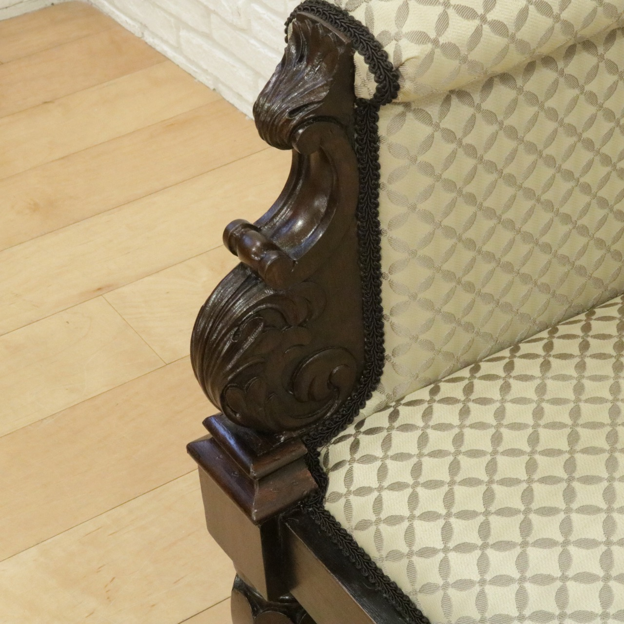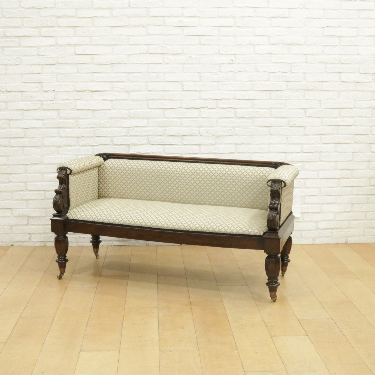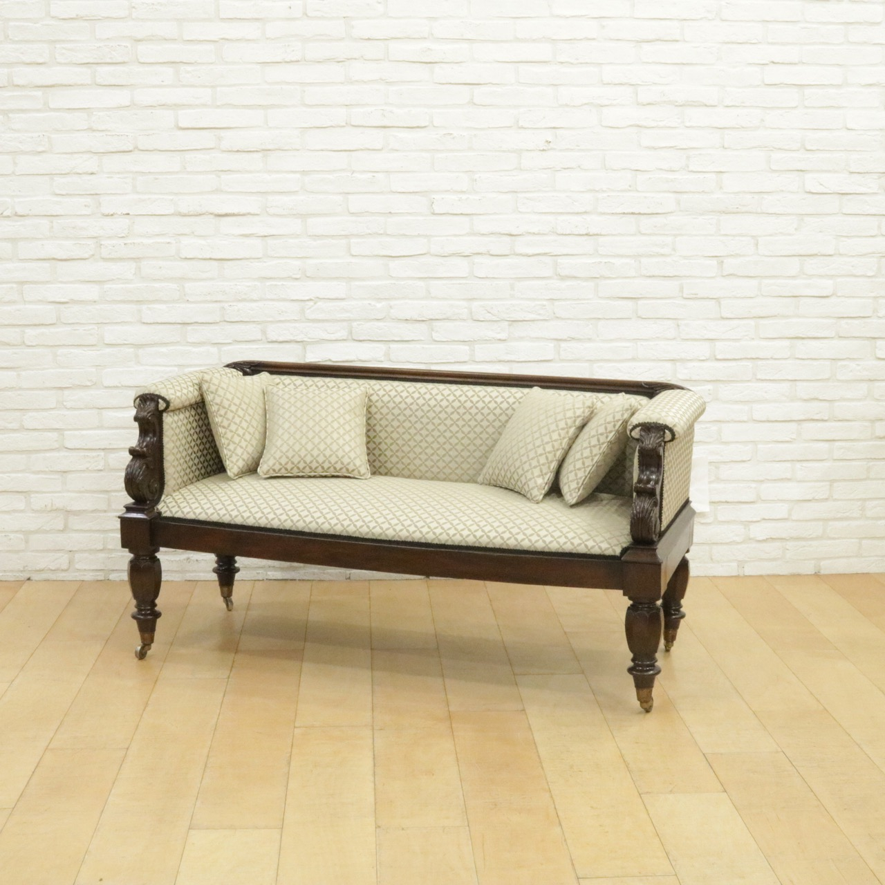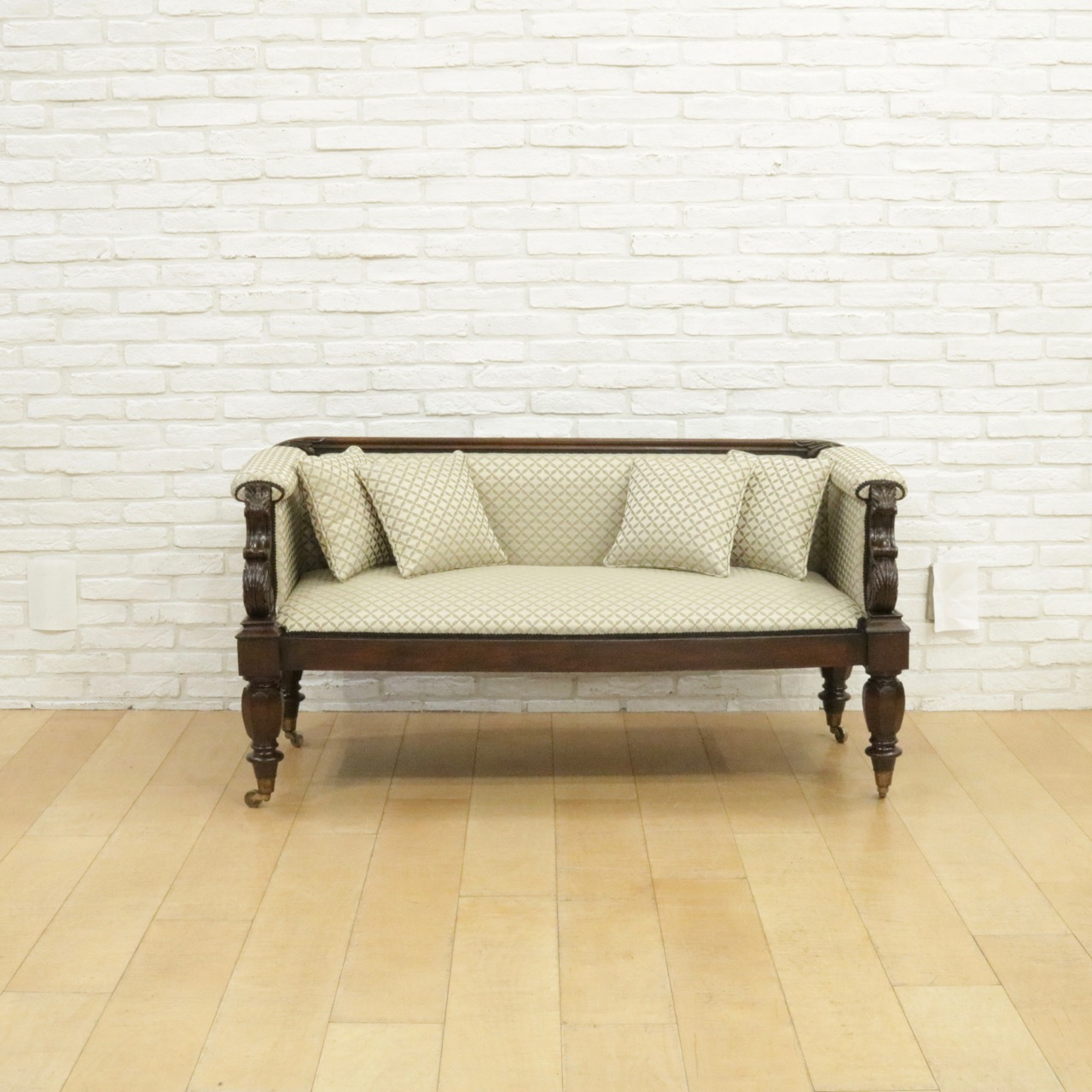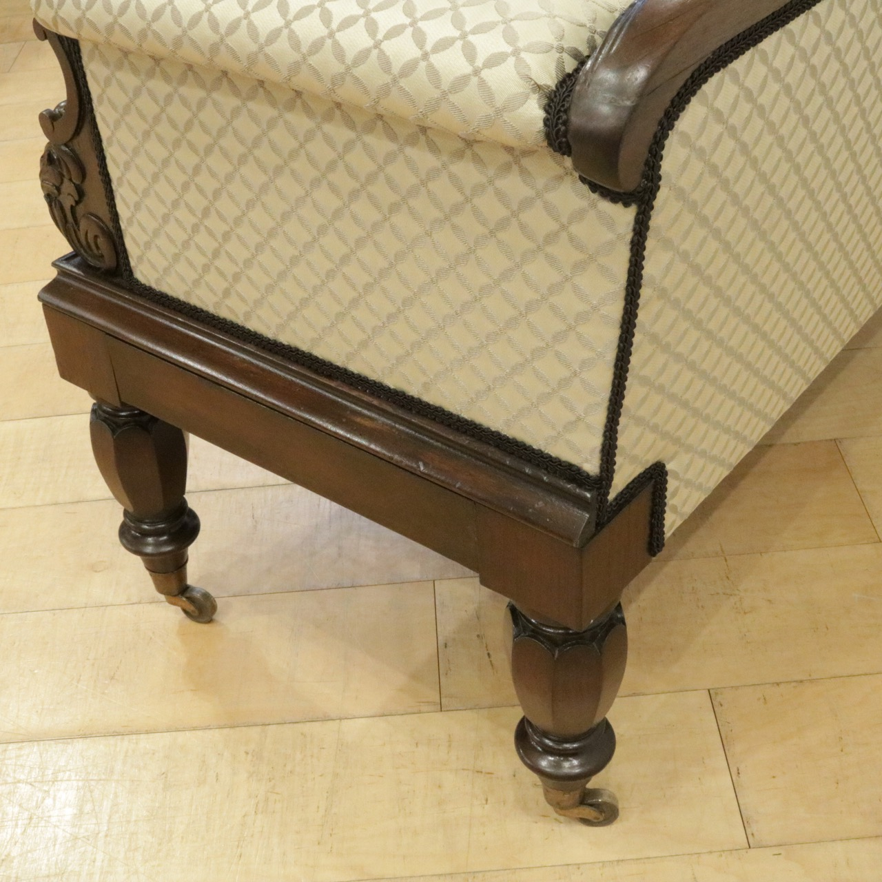 アーム部前面や左右背の角にはアカンサスをモチーフとした美しい装飾が施されています。