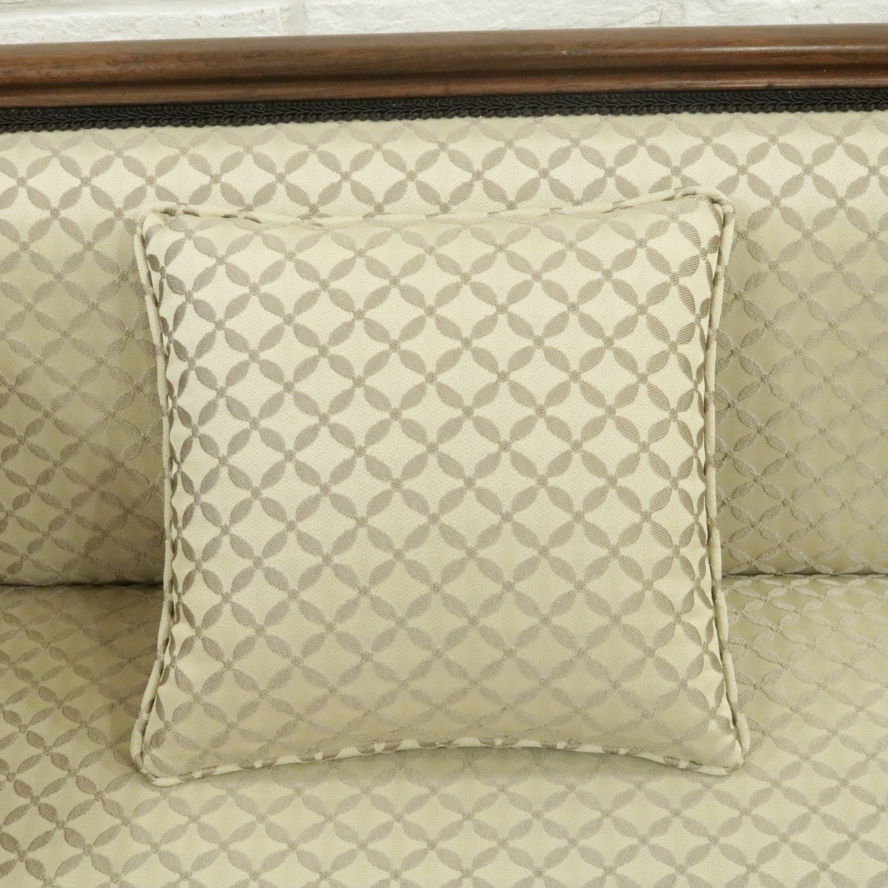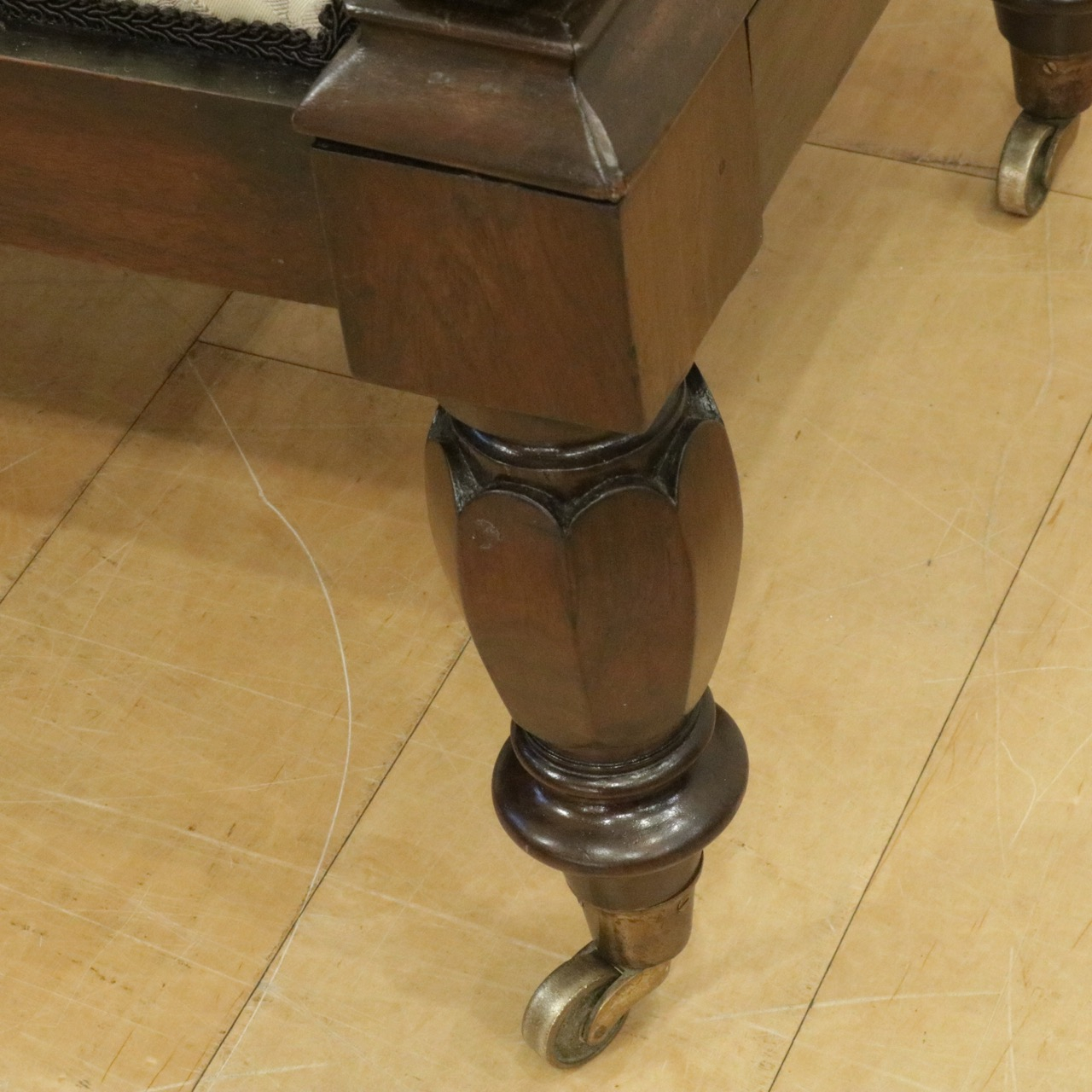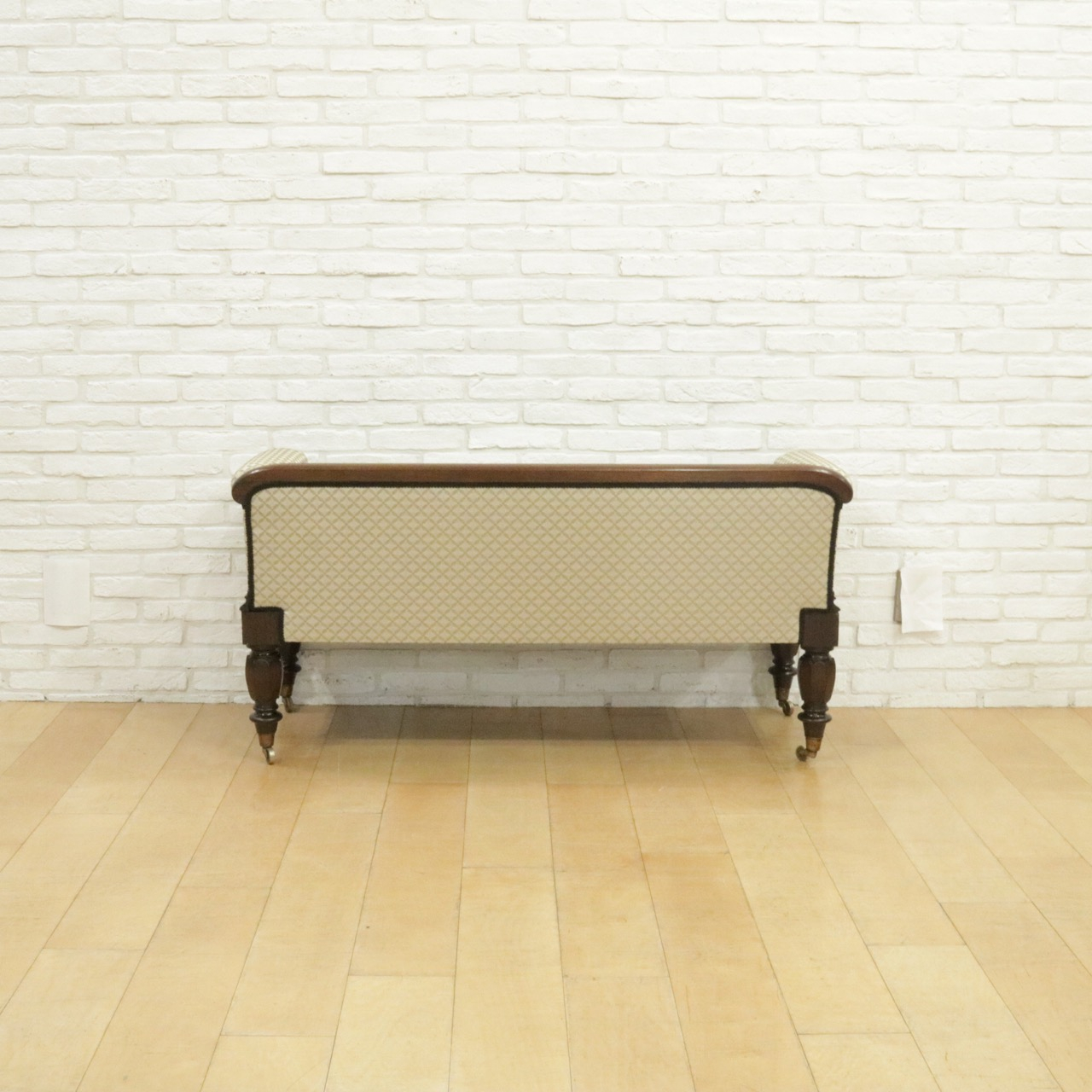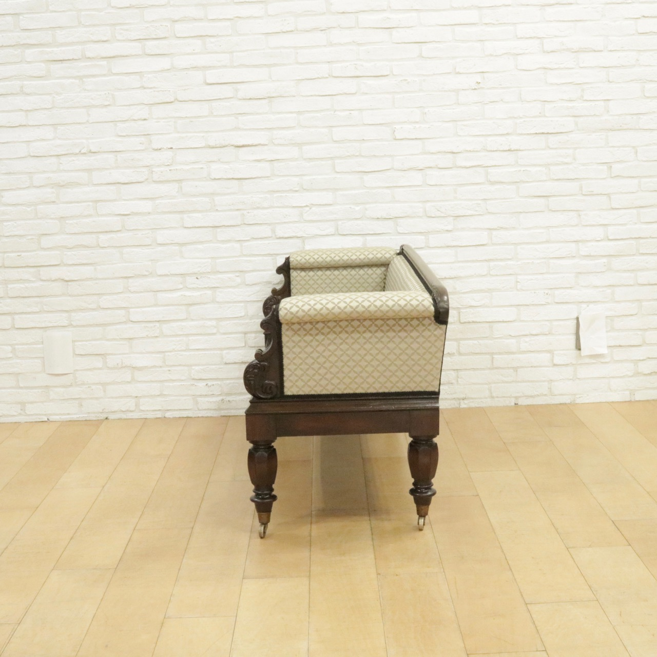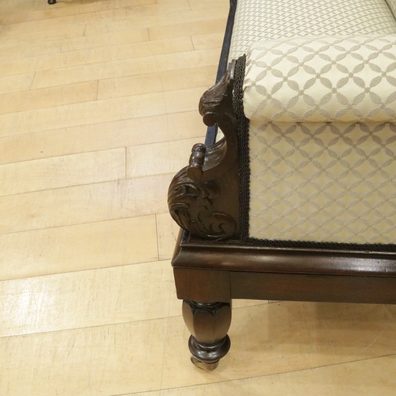 アーム部前面や左右背の角にはアカンサスをモチーフとした美しい装飾が施されています。