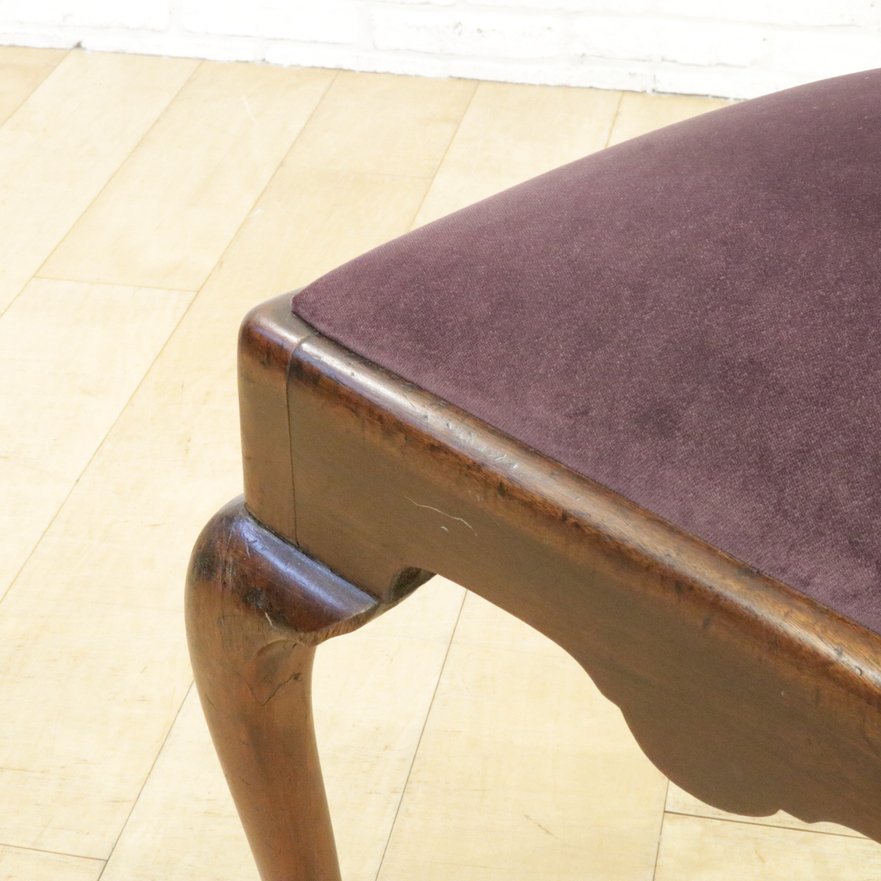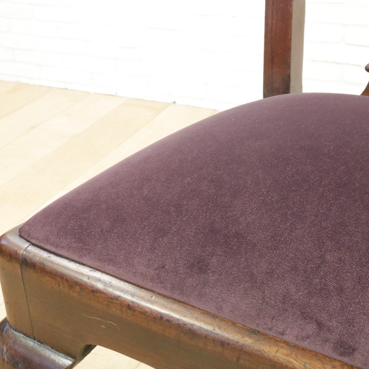 座面は、落ち着いたパープルのなめらかなベロア生地で張り替えました。