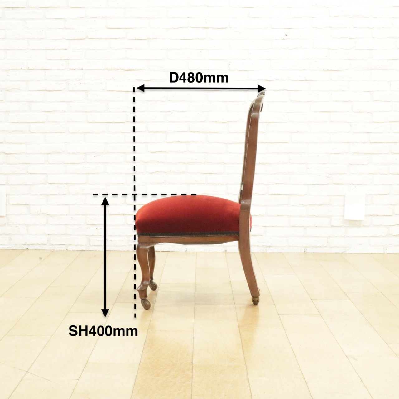 座面は赤いベルベットで張り替えよりクラシカルな佇まいに仕上げました。