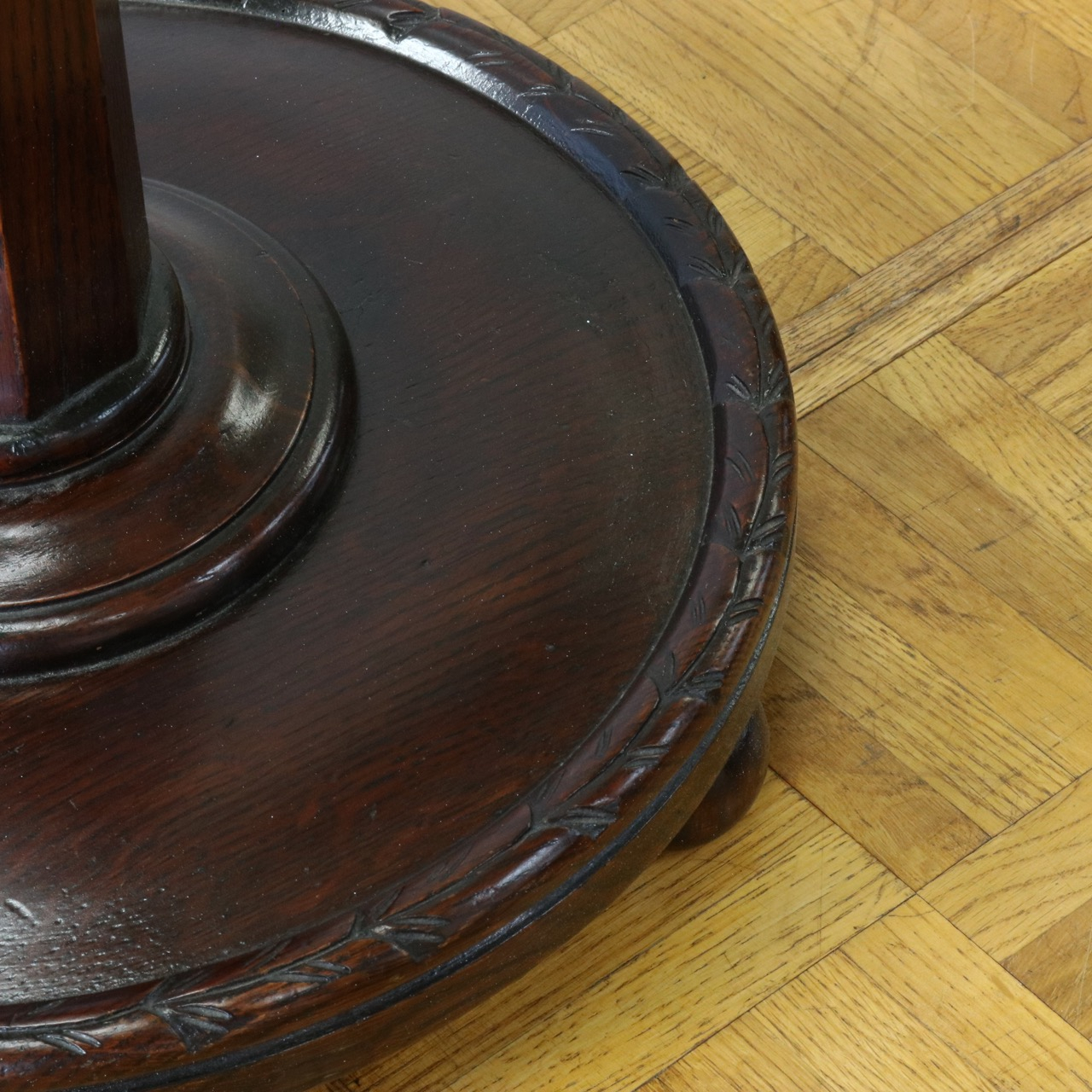 縁に沿って植物の蔦と葉の彫刻が彫られています。