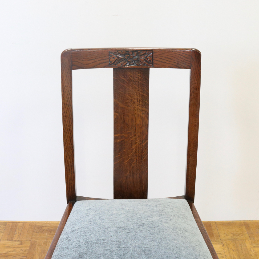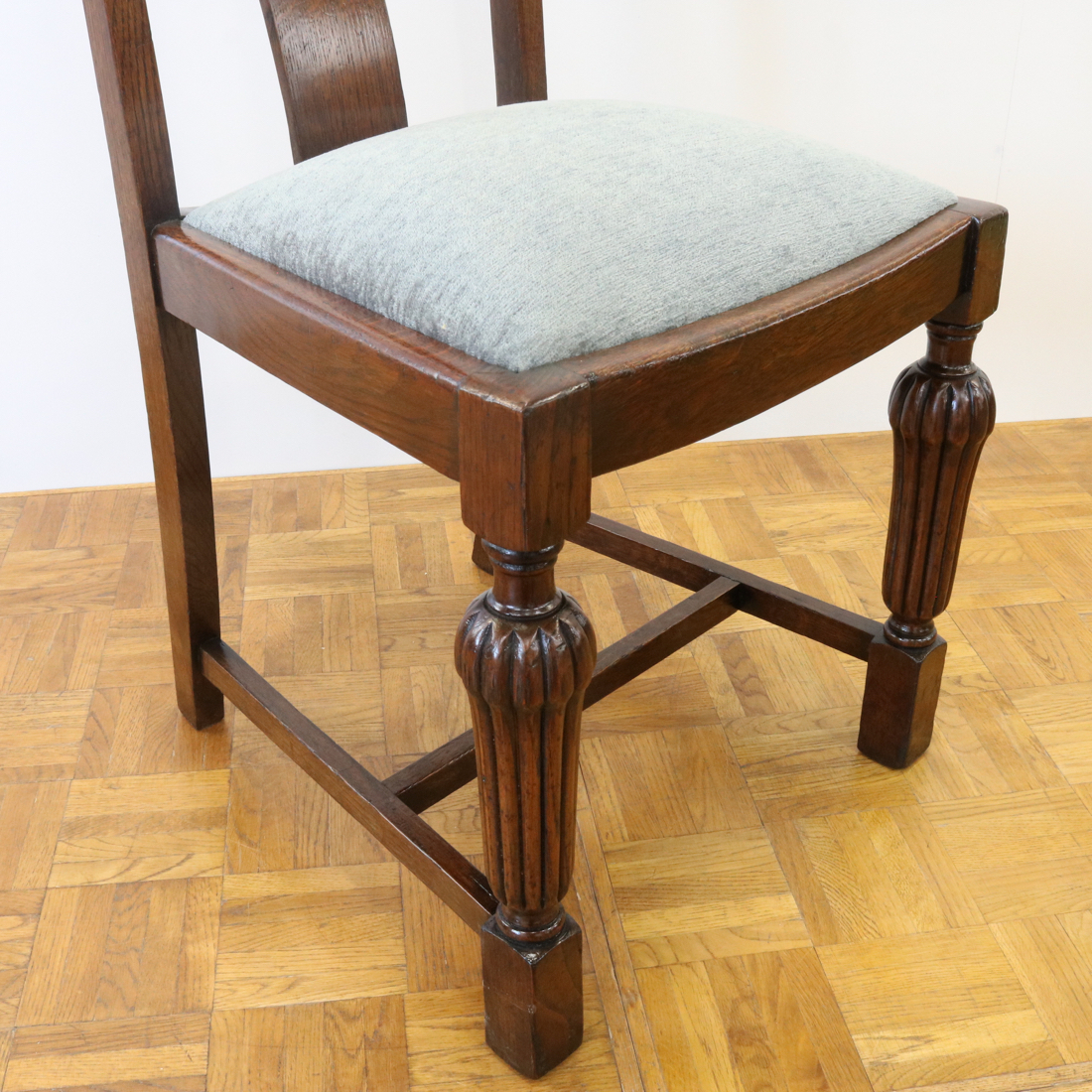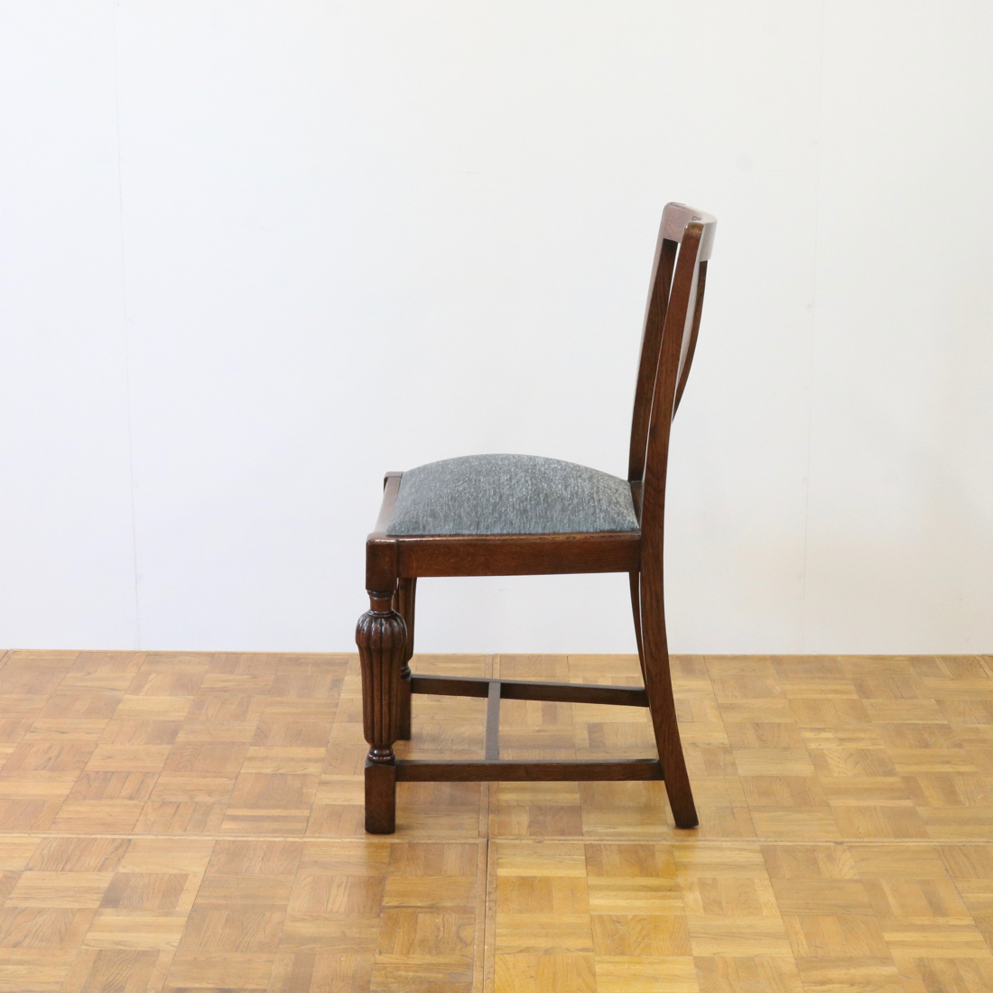 配送料の目安 ▶︎1930年代のオークチェアー。背もたれのお花の彫刻装飾や、縦溝が特徴的な前脚などデザインされた意匠が魅力的なチェアーです。ダイニング用にいかがでしょうか。