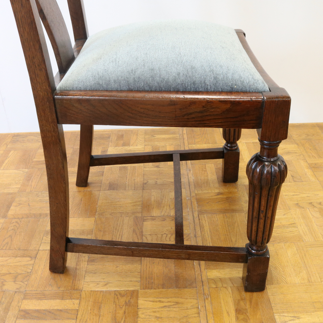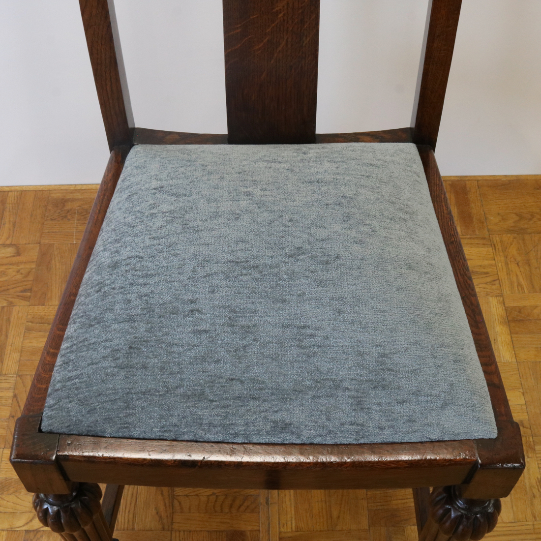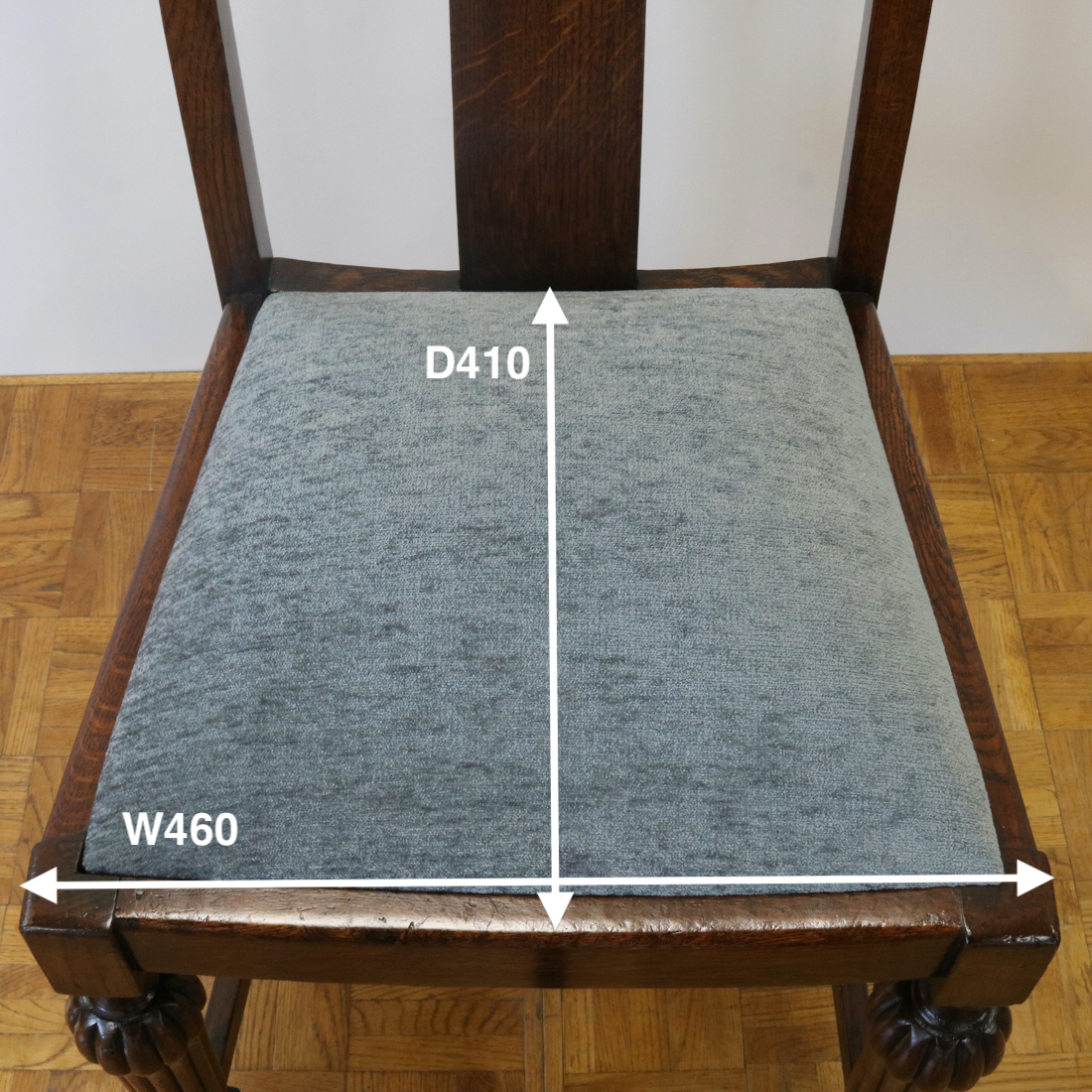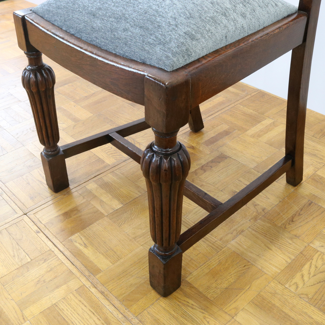 配送料の目安 ▶︎1930年代のオークチェアー。背もたれのお花の彫刻装飾や、縦溝が特徴的な前脚などデザインされた意匠が魅力的なチェアーです。ダイニング用にいかがでしょうか。