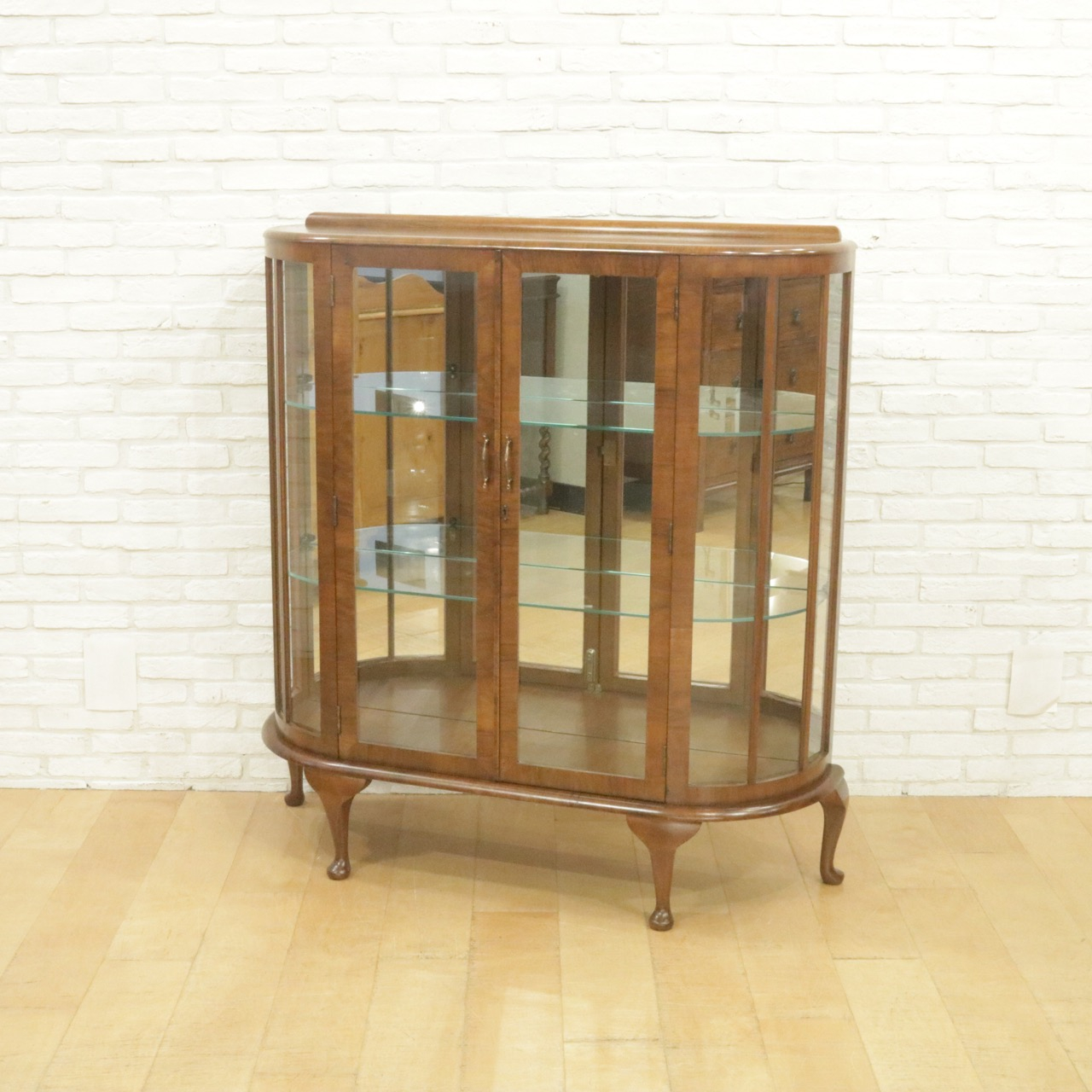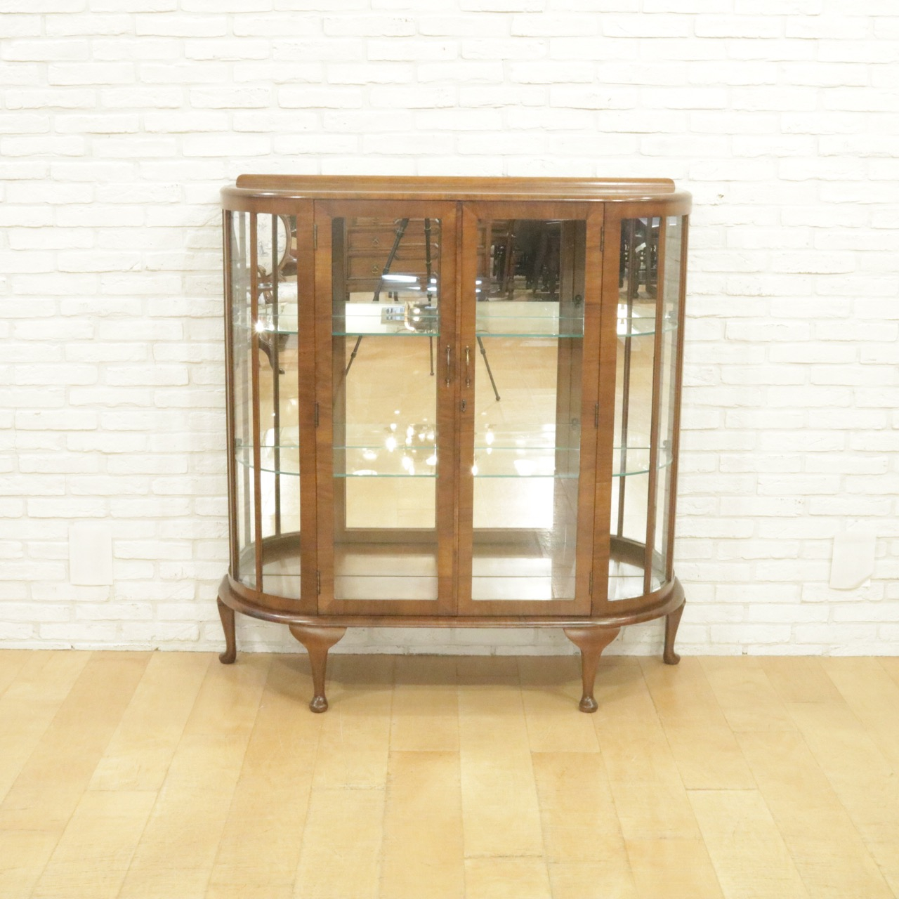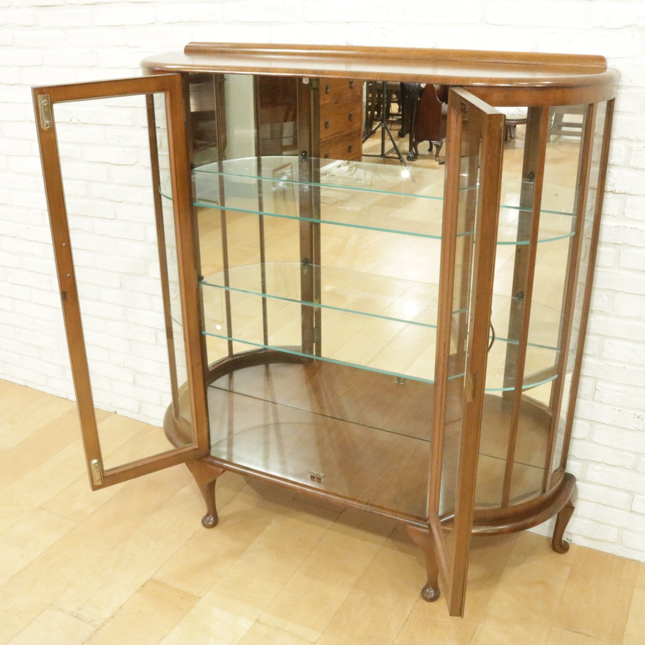 配送料の目安 ▶︎1930年代、ウォールナットのグラスキャビネット 。ハーフムーン型で圧迫感が少なくセッティングが出来ます。