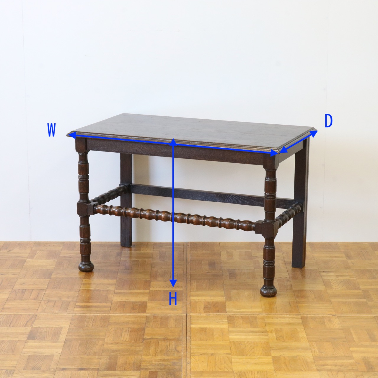 配送料の目安 ▶︎オーク材のサイドテーブル。挽物細工が施された前脚のデザインが特徴的で、後脚は安定感のあるつくり。壁につけてお花や食器、お人形などのコレクションを飾ったりするのにおすすめです。