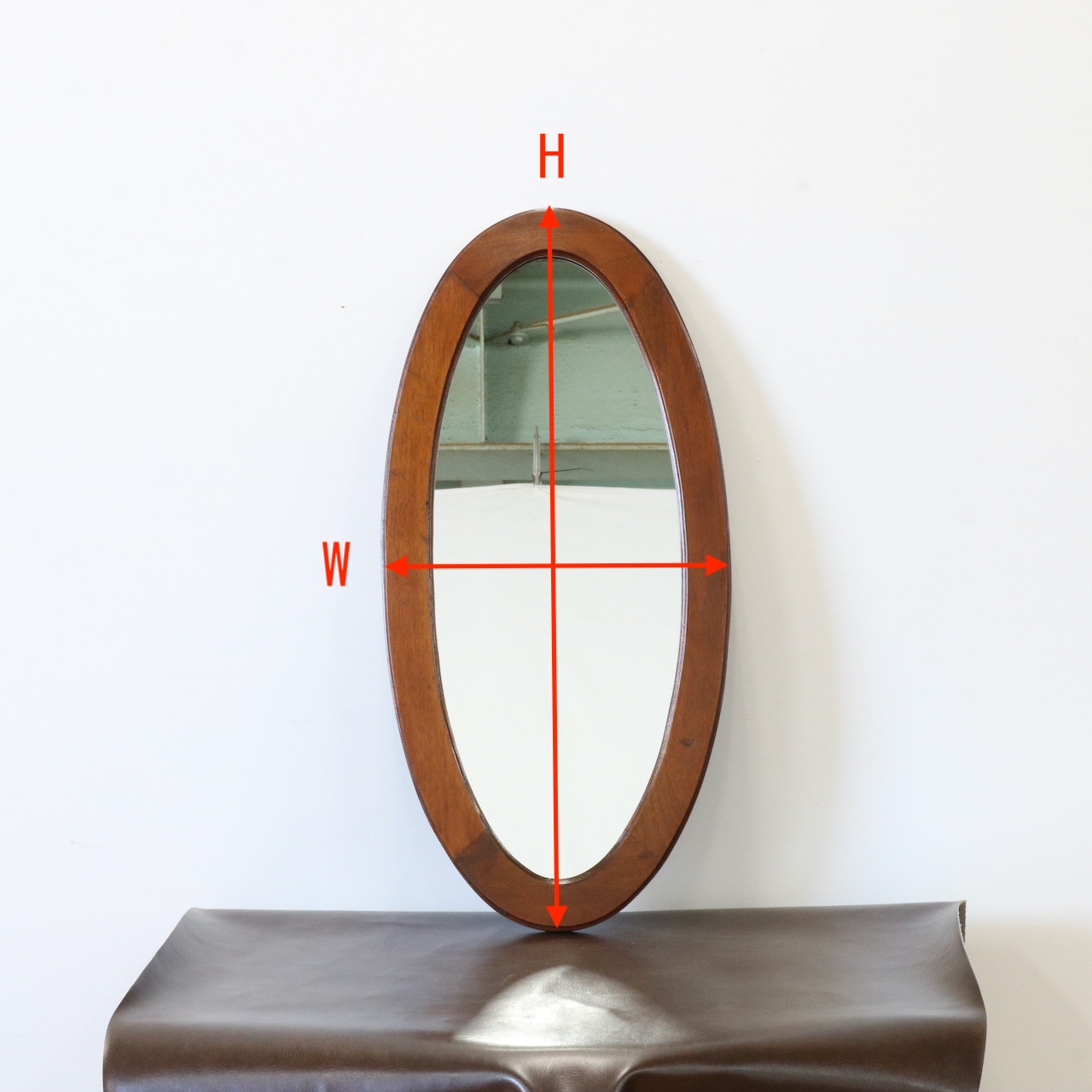1930年代、ウォールナット のウッドフレームミラー 。シンプルな楕円形で優しい木の風合いに深みがあります。壁面のアクセントにいかがでしょうか。