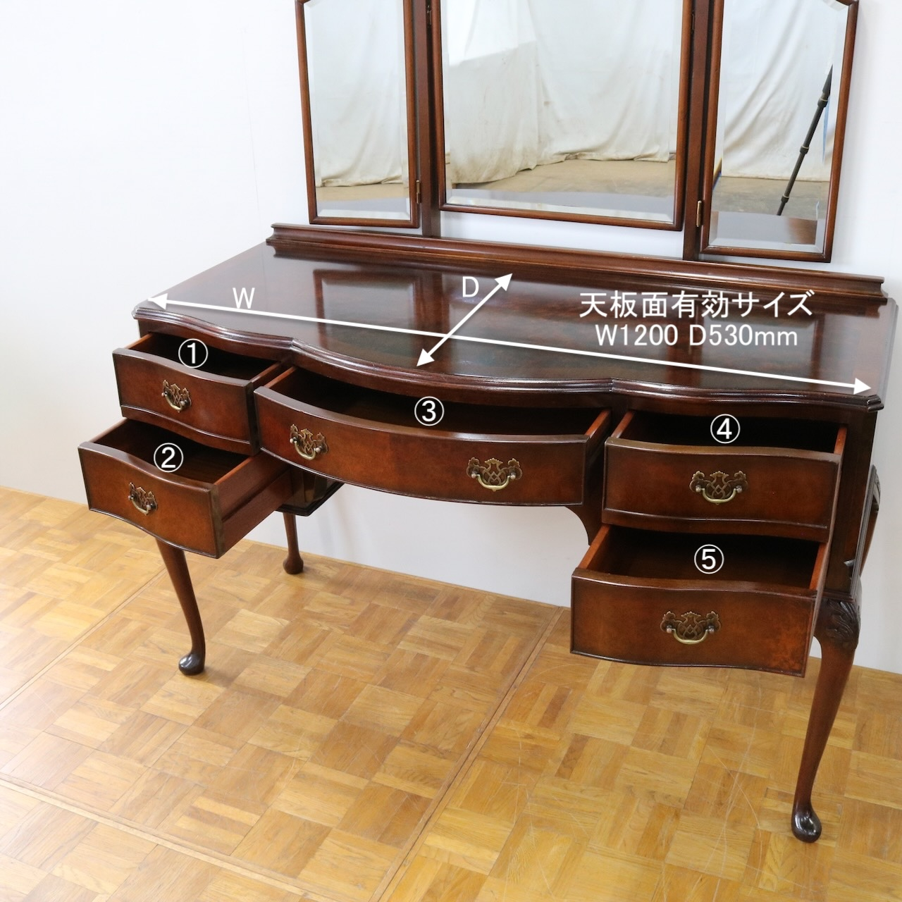 引き出しが5杯も配されていますが、脚周りは比較的ゆったりしています。