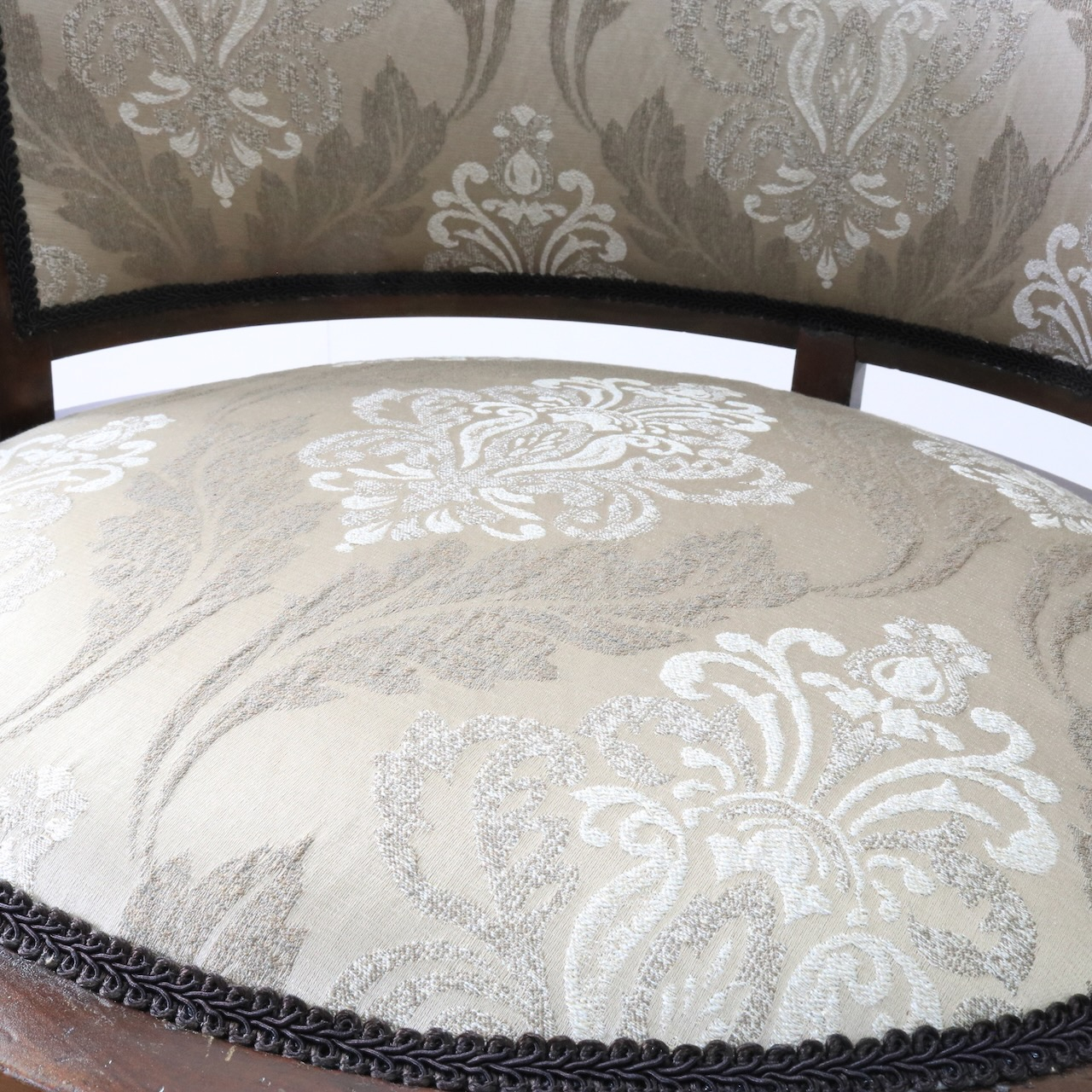 落ち着いた雰囲気のダマスク模様の生地で張りました。