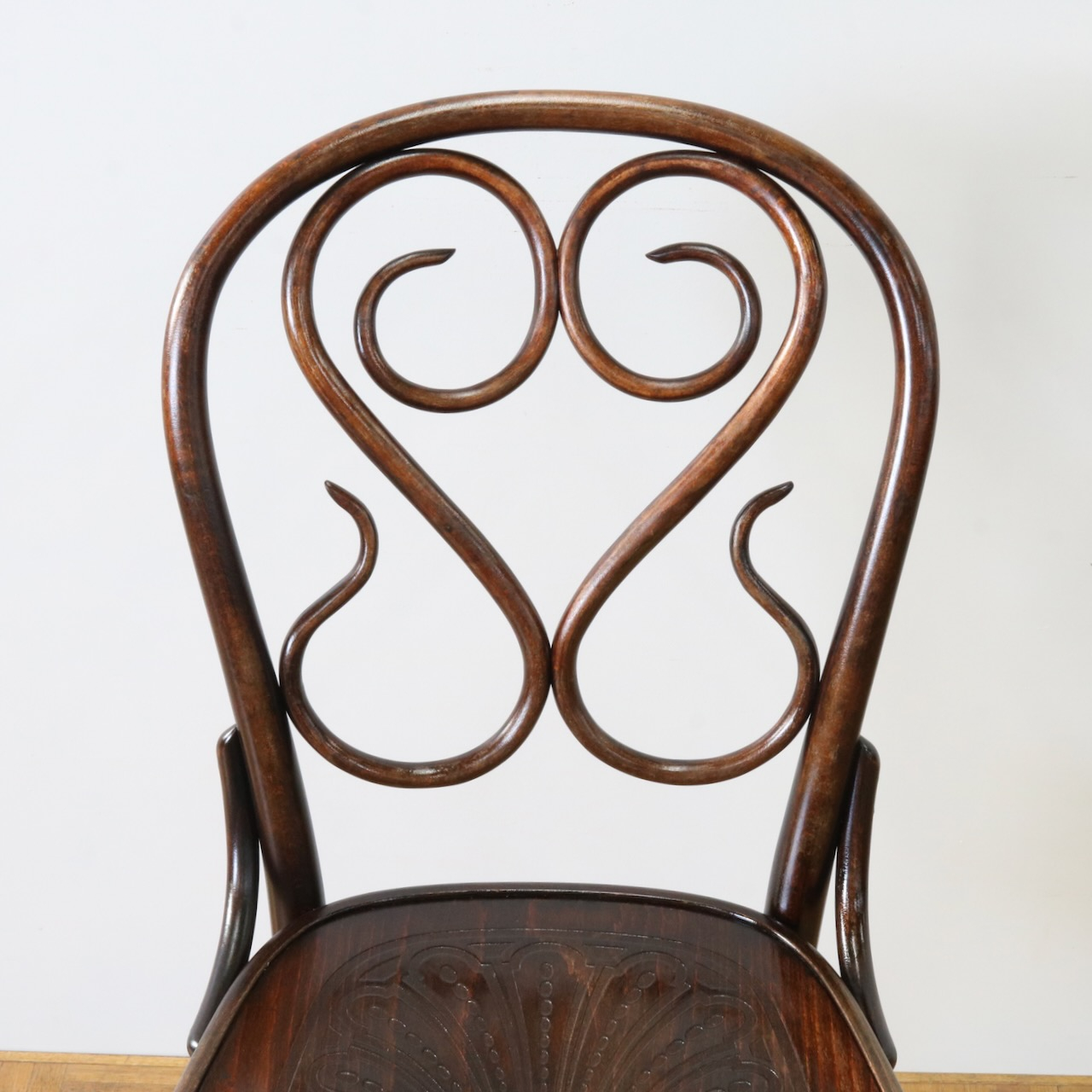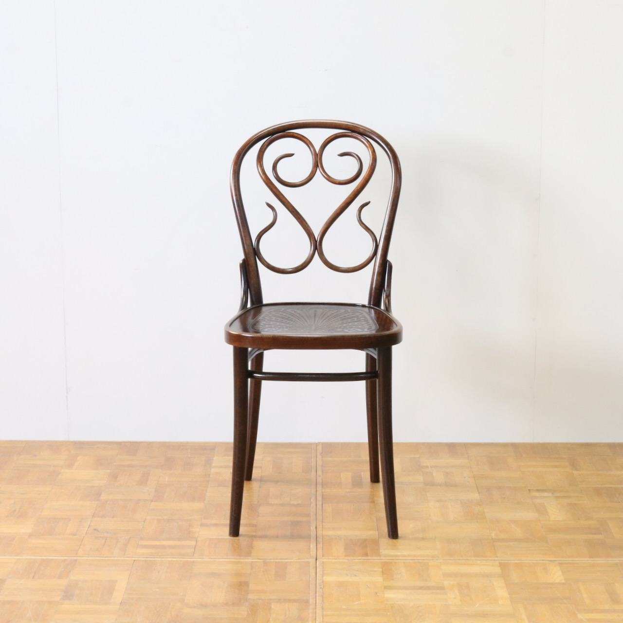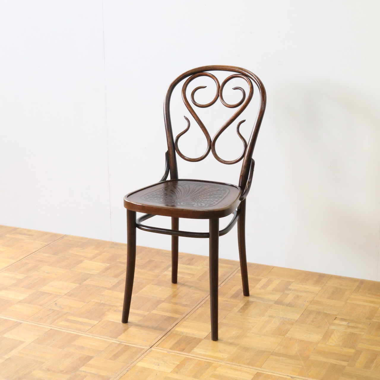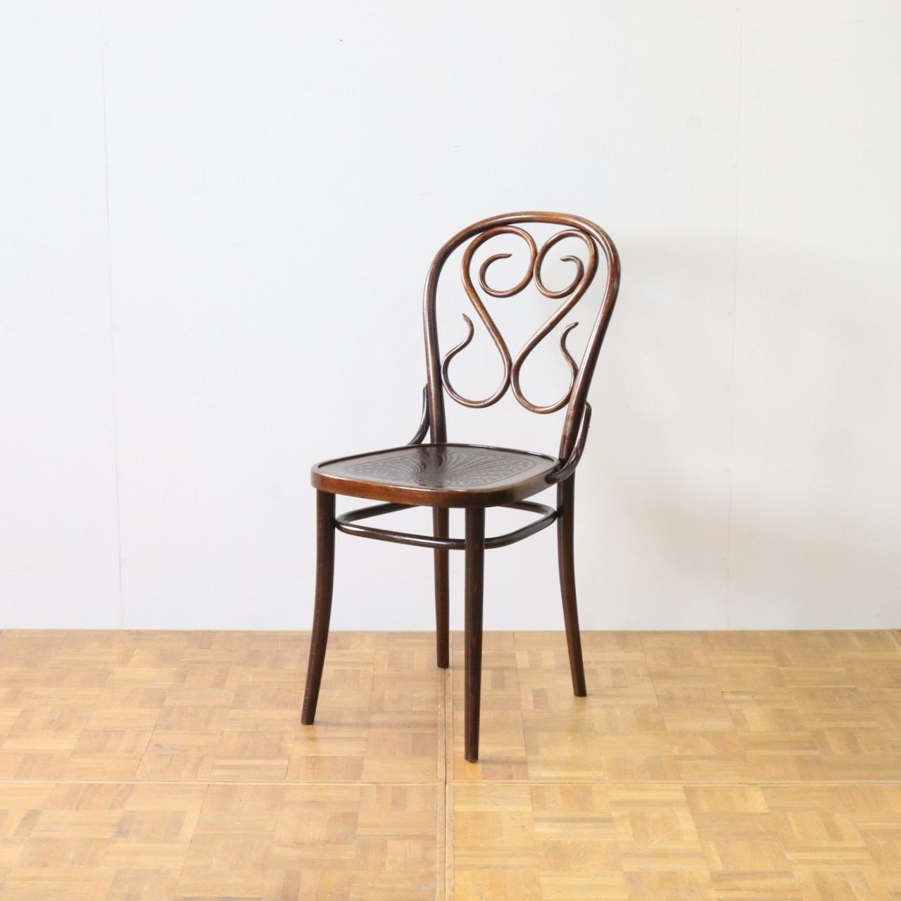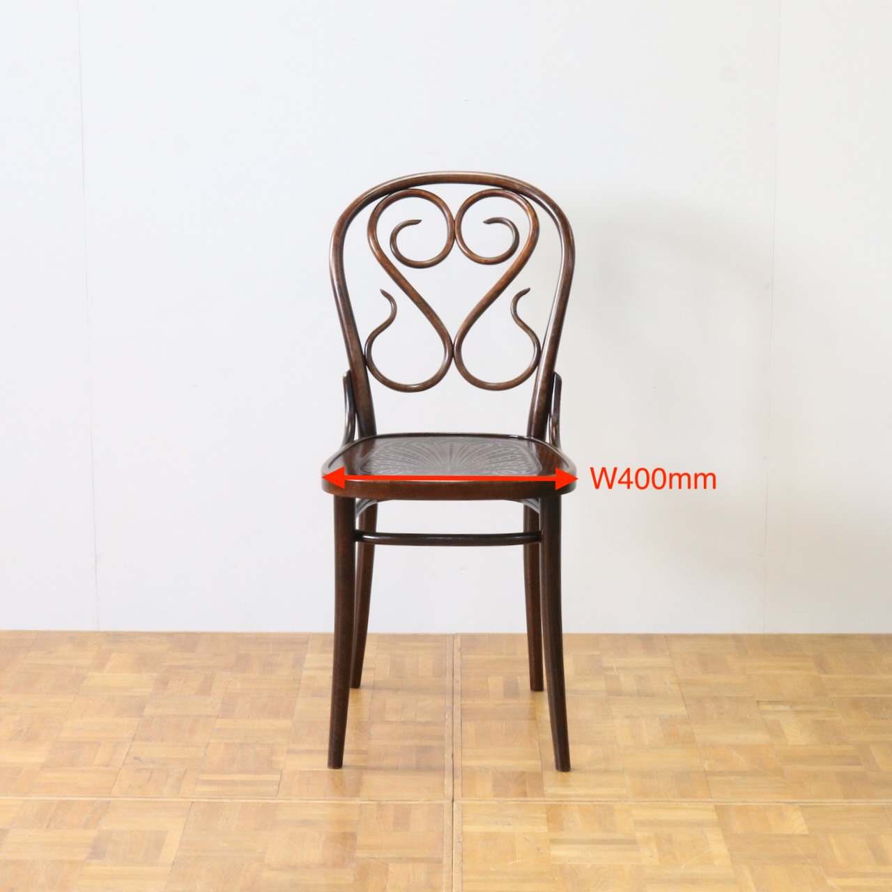 配送料の目安 ▶︎リプロダクションのベントウッドチェアー。シンメトリーのスクロールがデザインされた背もたれ部分がユニークです。深めのお色味も魅力の一つ。