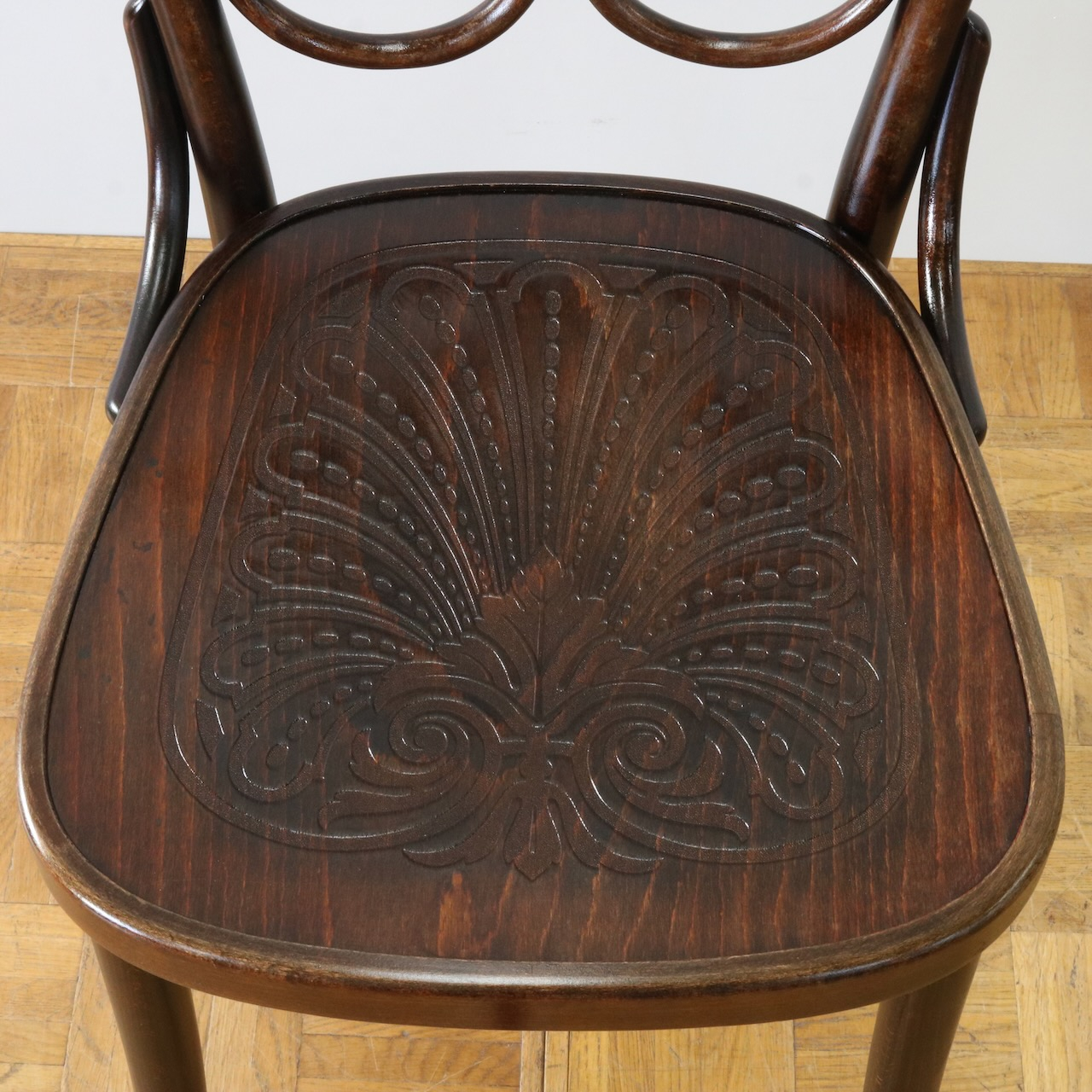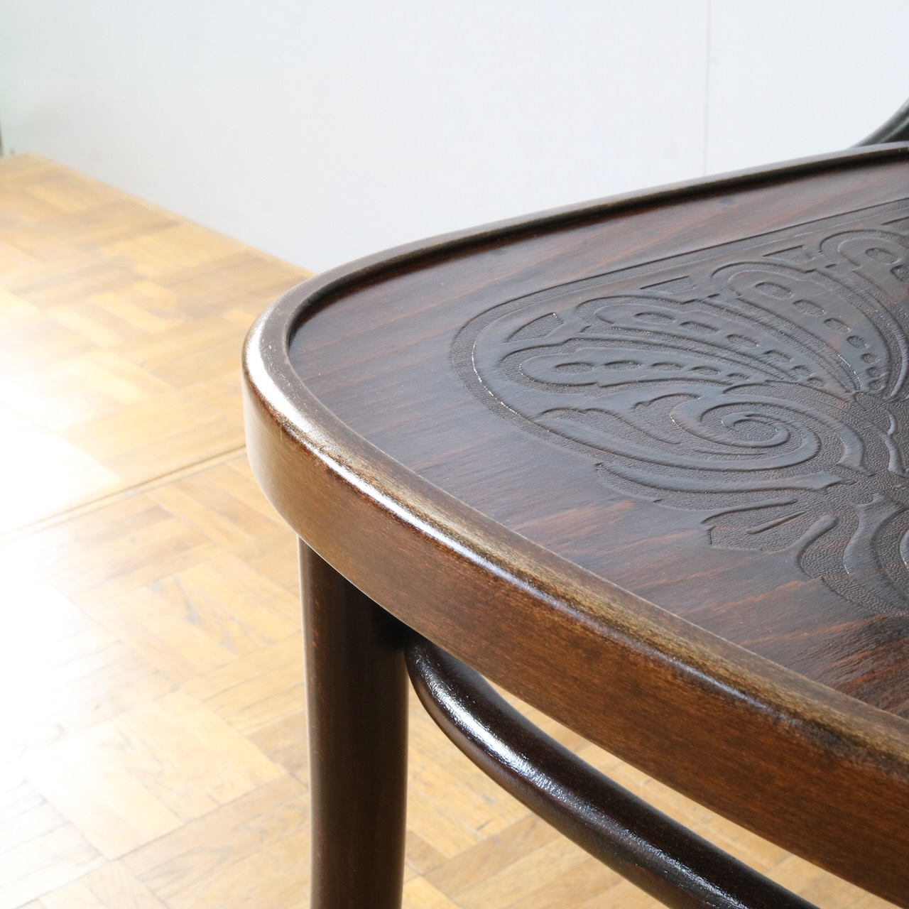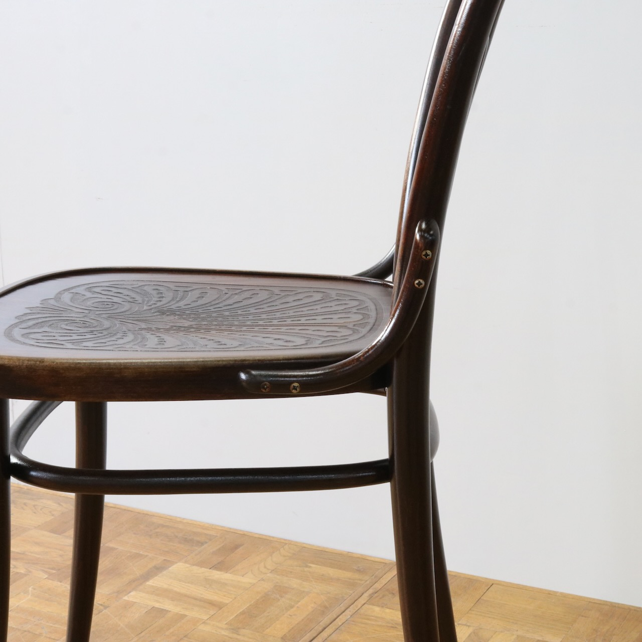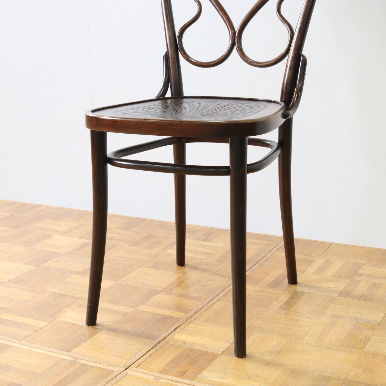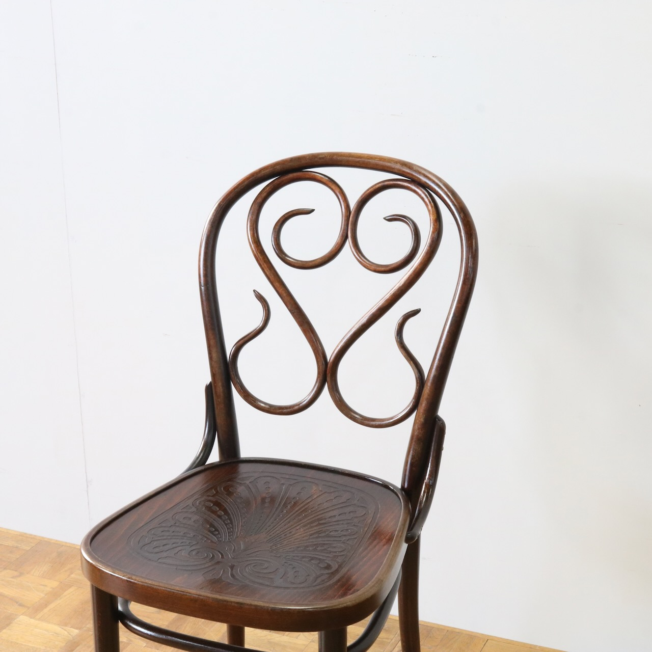 配送料の目安 ▶︎リプロダクションのベントウッドチェアー。シンメトリーのスクロールがデザインされた背もたれ部分がユニークです。深めのお色味も魅力の一つ。