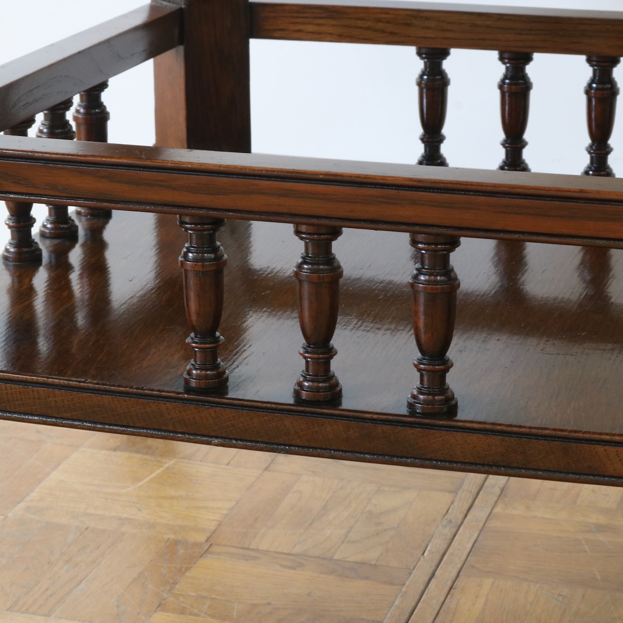 オクタゴナルの天板、脚部や脚先の意匠、挽物が配されたギャラリーなど、アンティークらしい意匠が随所に配された重厚感のあるひと品。