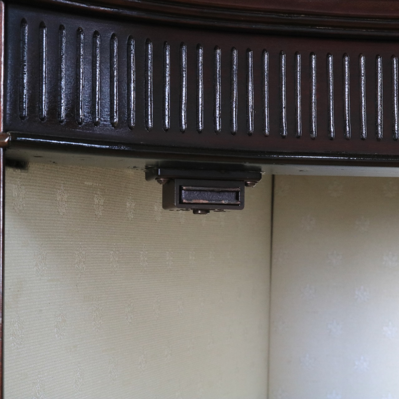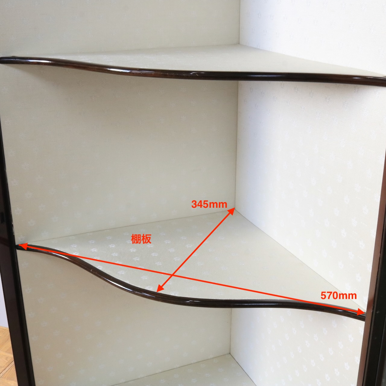 一番下の段はクロスのない板張り。マホガニーの深い質感が楽しめます。