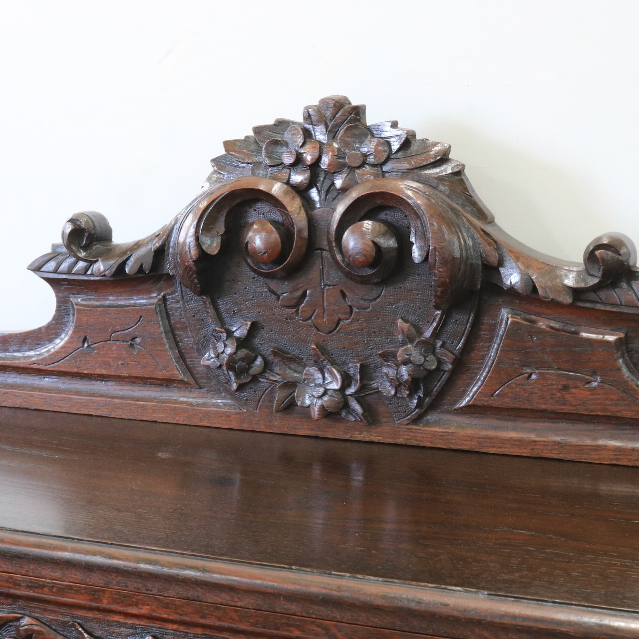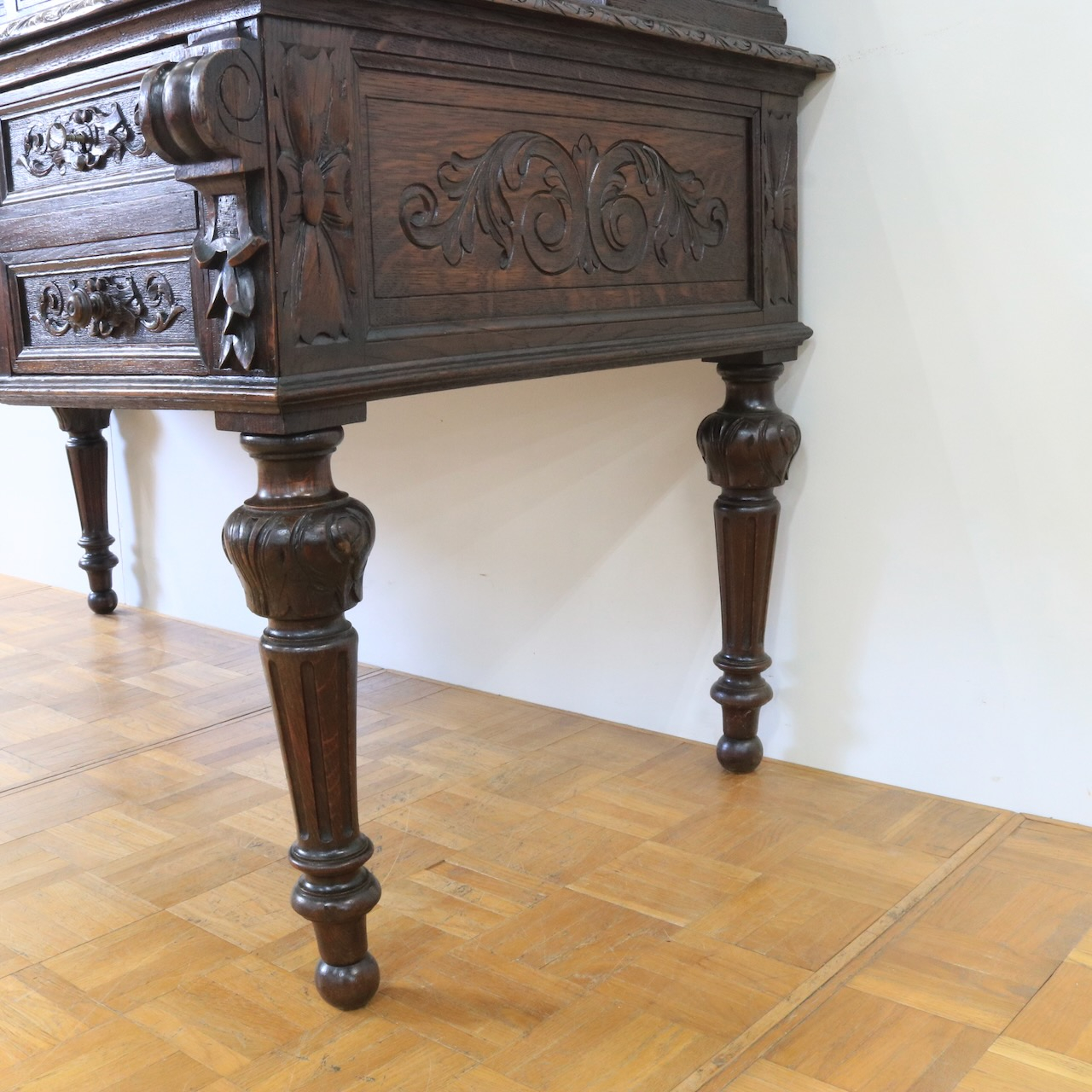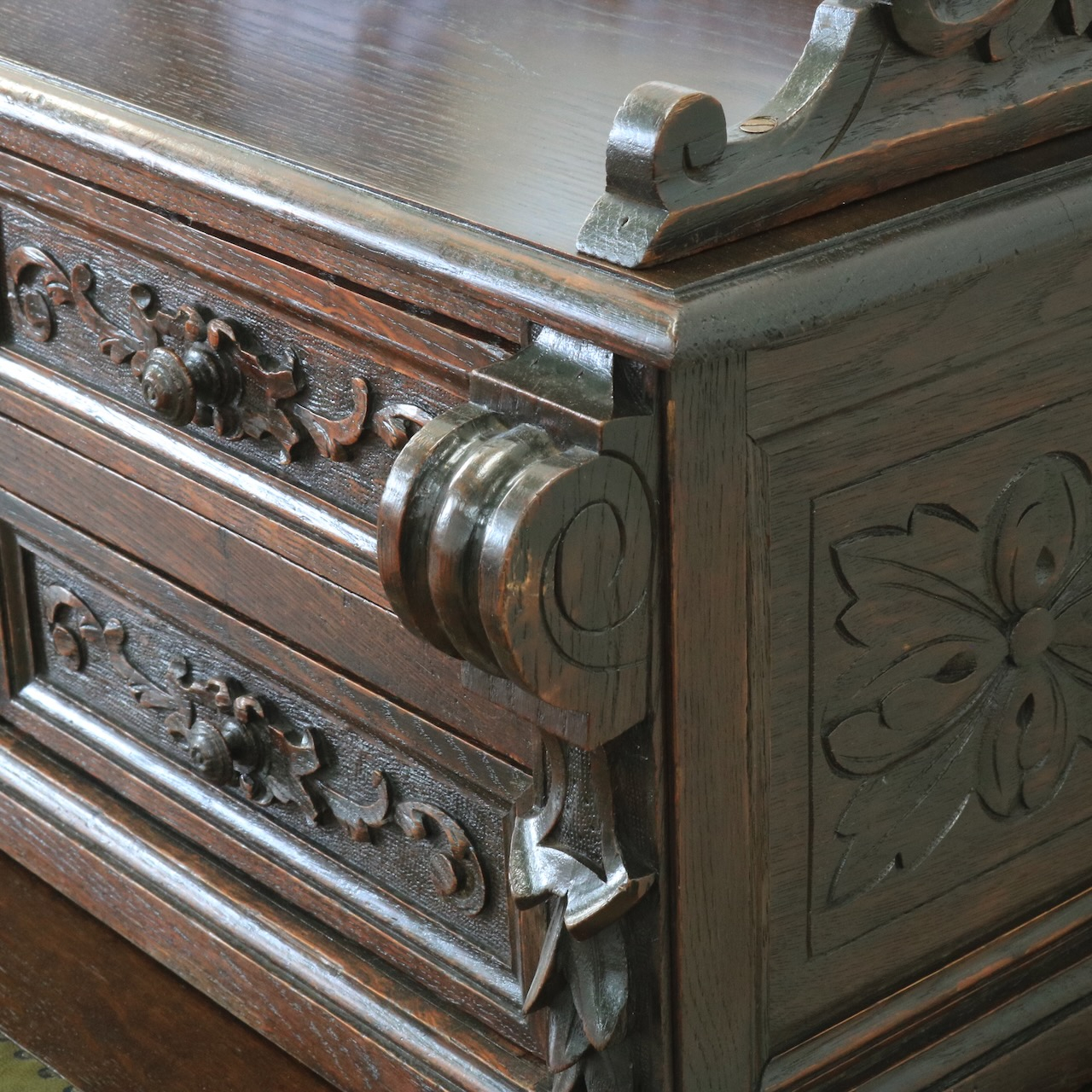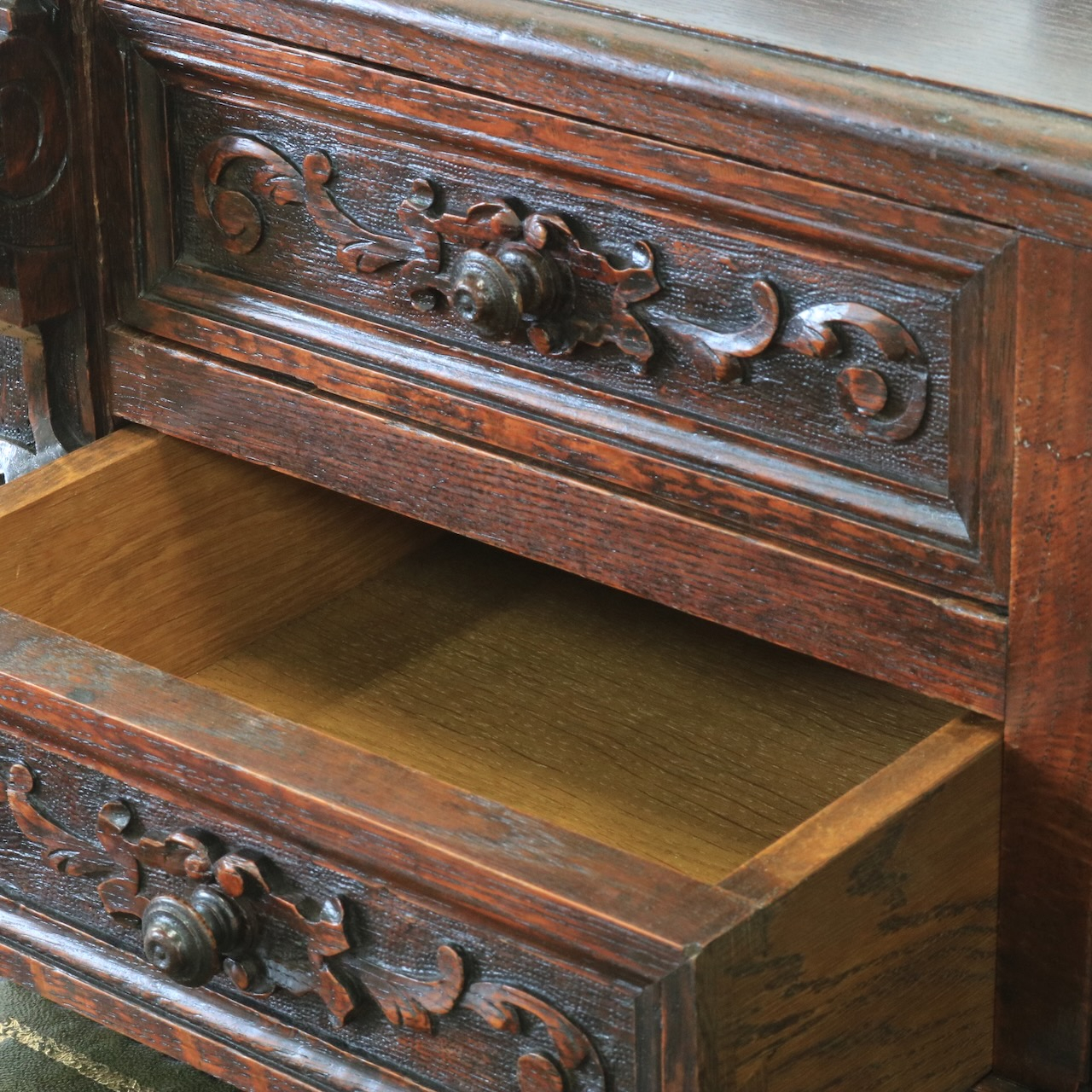 天板下の脚部もどっしりと重みを感じる、これぞオークのアンティーク家具、という荘厳な存在感を放っています。