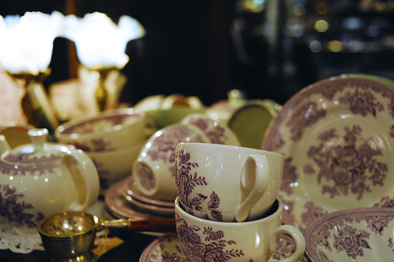 紅茶に加えてアンティークティーカップを多数取り揃え、