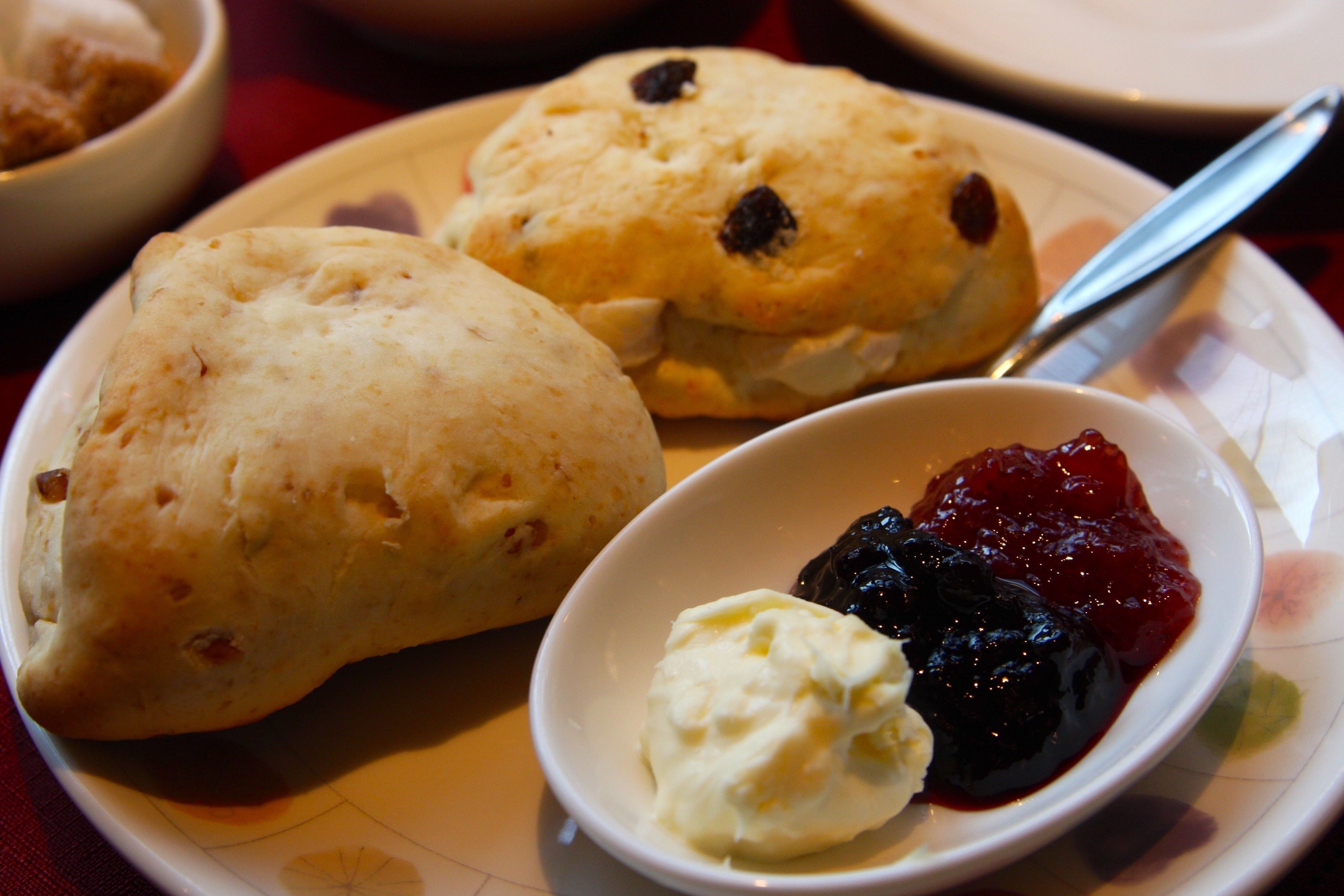 自家製クロテッドクリーム、ブルーベリー&ストロベリージャム添え