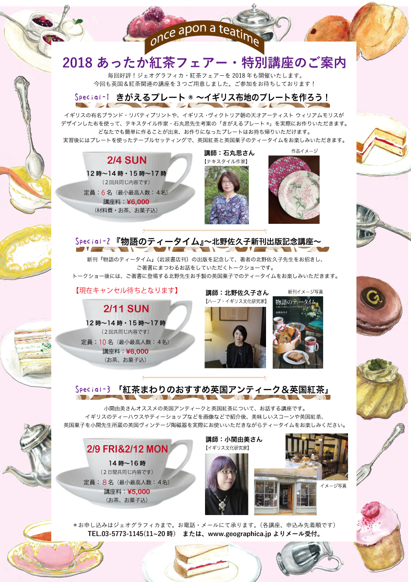 毎回好評の紅茶にまつわる特別講座を2018年も開催いたします!