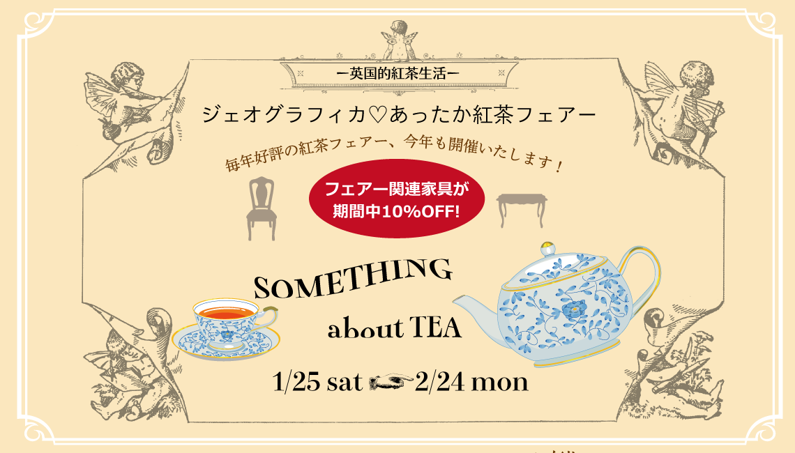 毎年恒例のあったか紅茶フェアーを今年も開催致します!今年のテーマは紅茶にまつわるエトセトラ。上流階級から労働者階級まで広く紅茶が楽しまれるようになった19世紀以降に光を当て、当時流行した紅茶の楽しみ方をアンティーク家具と共にご紹介いたします。この時期にしかお取り扱いの無い選りすぐりの紅茶やお菓子もたくさんご用意し、皆様のご来店をお待ちしております!