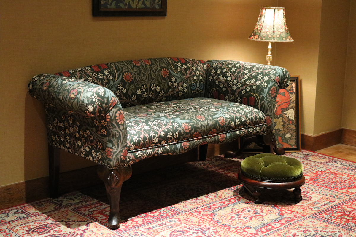 自らの信じる美意識を求め続けたモリス。そのデザインを日々の生活に取り入れるということは彼の目指した美しいものに囲まれる生活を実現することへとつながるのではないでしょうか。モリスデザインと、高い技術の手仕事が光る、美しいイギリスアンティーク家具との共鳴をお楽しみください。