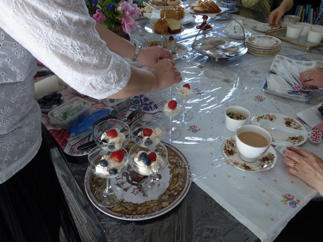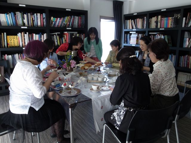ヴィンテージの食器も使い、英国式のティーパーティーを楽しみます。
