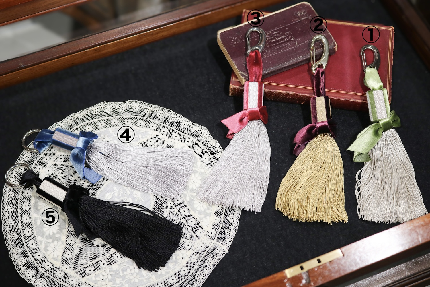 カラーと取り付け部分の仕様(金具またはリボン)をお選び頂け、自分だけのオリジナルタッセルを製作できます。