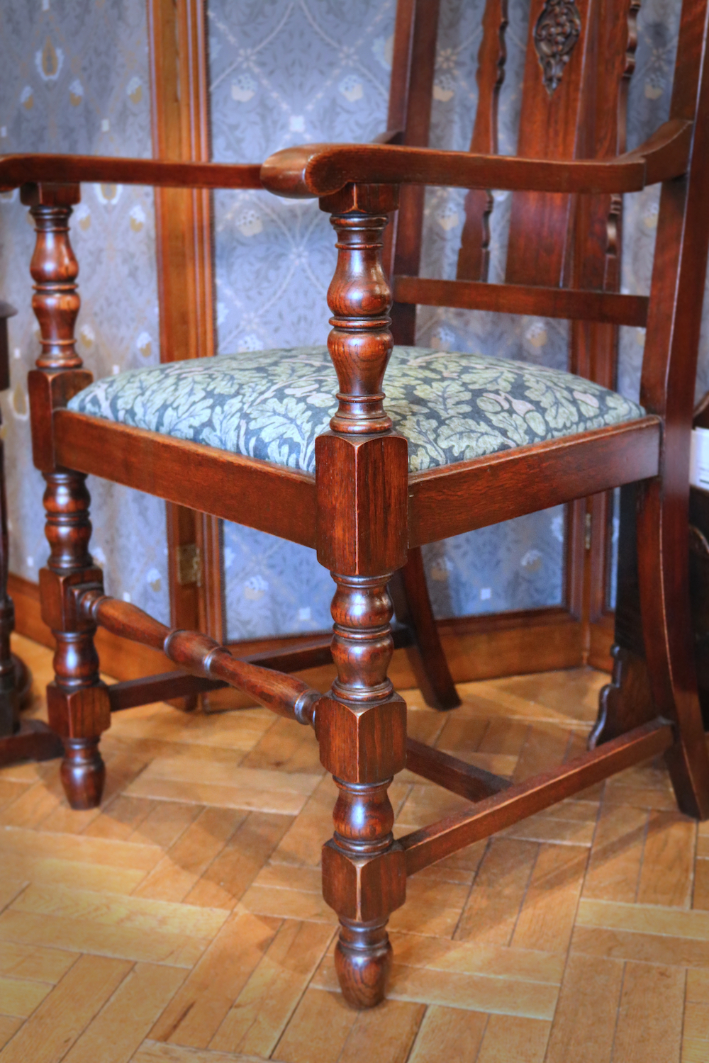 自らの信じる美意識を求め続けたモリス。そのデザインを日々の生活に取り入れるということは彼の目指した美しいものに囲まれる生活を実現することへとつながるのではないでしょうか。モリスデザインと、高い技術の手仕事が光る、美しいイギリスアンティーク家具との共鳴をお楽しみください。