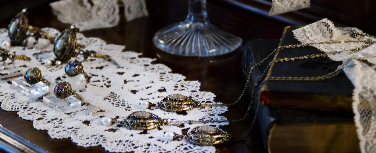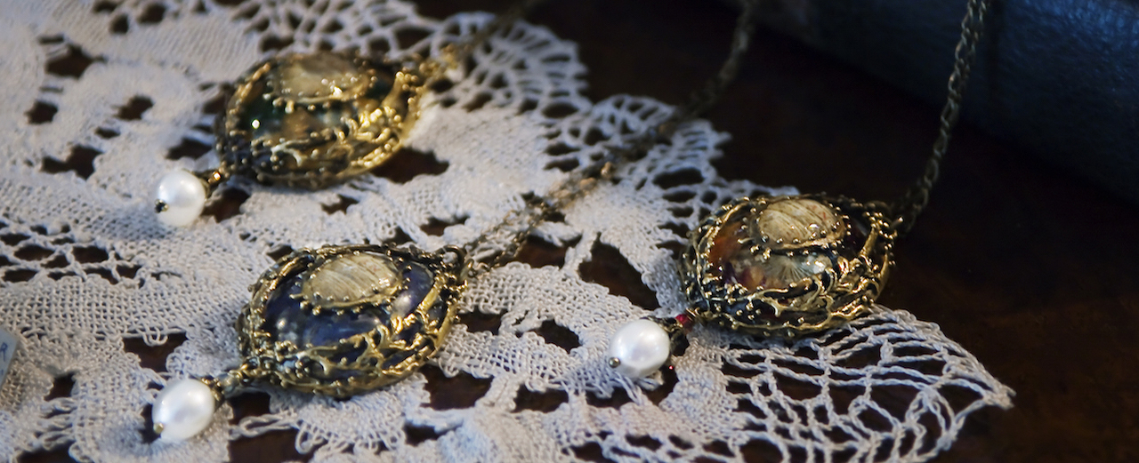 長い年を経て幾重にも物語を纏った古いアクセサリー、見つめいていると幻想的な世界に惹きつけられます。