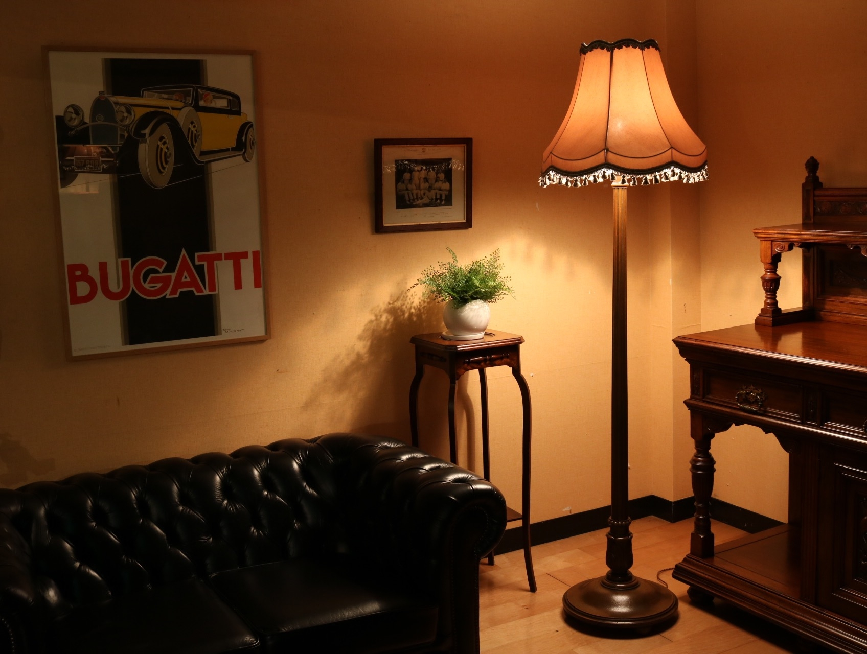 クラシカルなアンティークのフロアランプにひとたび柔らかな灯を灯せば、上質で優雅な時の流れを感じることでしょう。