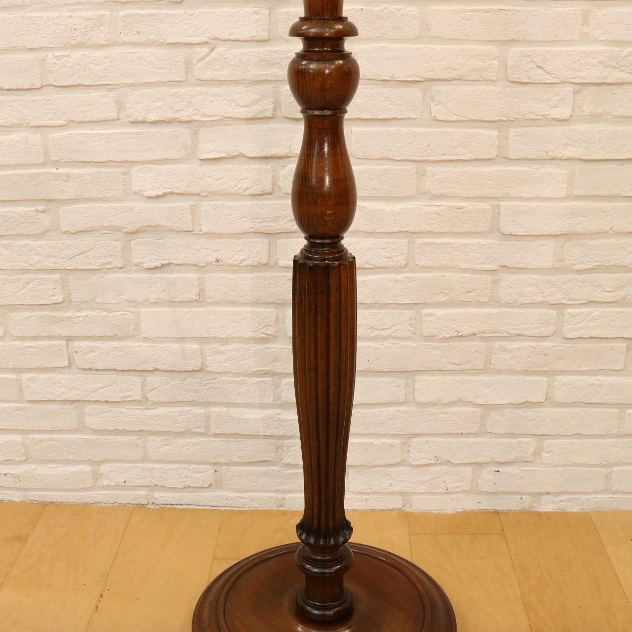 フロアランプと一口に言ってもそのデザインはバラエティに富んでいて、王道のツイスト、トライポッドを始め、豪華なカービングや彫刻、ペイントが施されたもの、シンプルなアールデコスタイルなどデザインの幅は広きに渡ります。現在、日本で見られるアンティークのフロアランプの多くは、1930年前後の折衷様式(エクレクティックスタイル)と呼ばれる時代に製作されました。伝統的な装飾や時代様式を融合させてリバイバルし、さらに新たな技術を取り入れることで実用性にも優れる多様なデザインが生まれた時代でした。