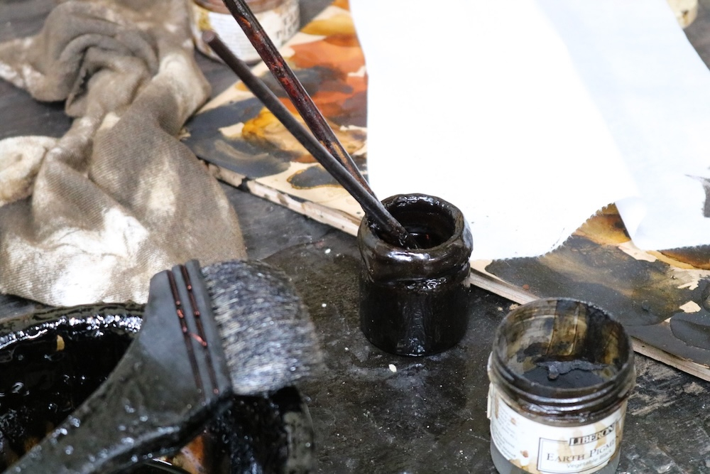 染料は木材の内部に染み込ませ木目本来の美しさを生かし、顔料は木材の表面に付着させ着色を施すことで家具全体の質感を合わせていく役割があります。顔料を混ぜ合わせ色を作る工程はより高度な技術が必要となります。