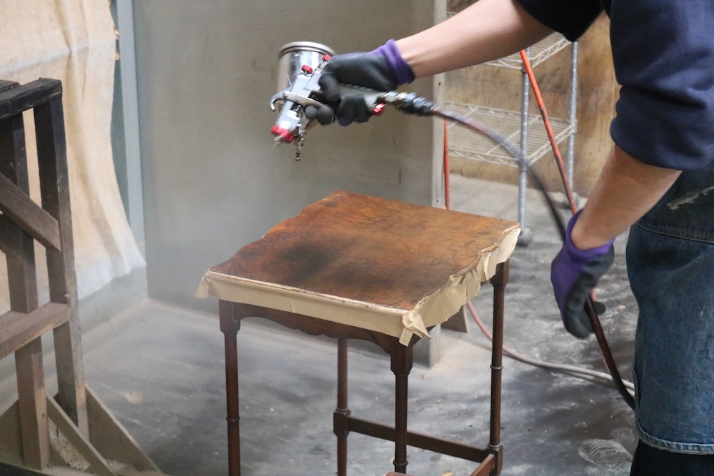 アンティーク家具の塗装は、下地処理が仕上がりの良し悪しを大きく左右します。古くなった塗料や凹凸を落とすために、サンドペーパーで表面を滑らかにし、古い塗装や汚れを落とします。下地剤を塗布することで木材の吸水性を均一にし、上塗りのノリを良くします。