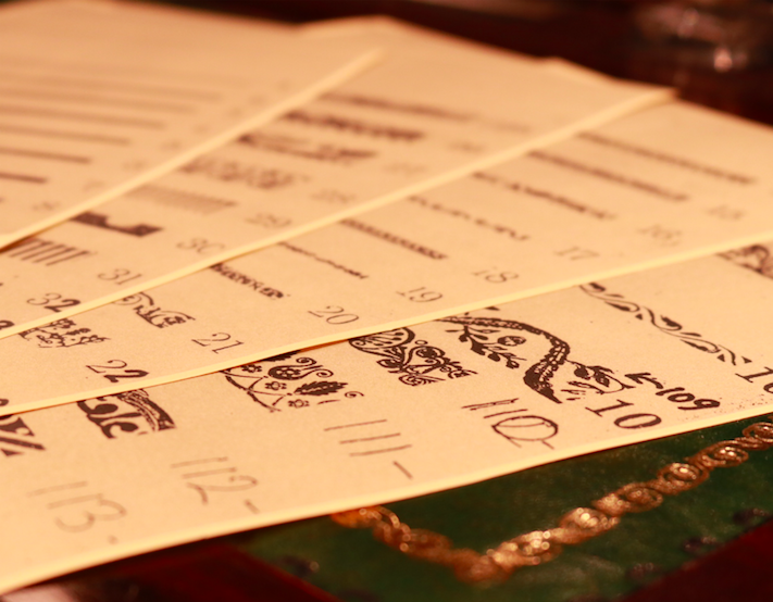 主に金彩が多いですが、型押しのみ(Embossed)や銀彩などもあり、デザインや様式に合わせて100種類以上の中から選んでいます。オリジナルのレザーに施されていたToolingを参考にダブルツーリングを施したり、コーナーに小さなポイント(Cornerstops)を施したりとその組み合わせは無限大。Tooling選びには特に時間を掛けています。