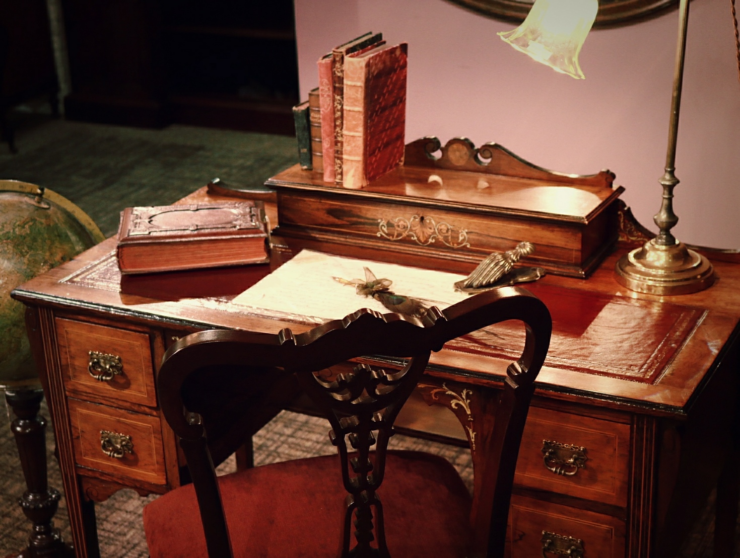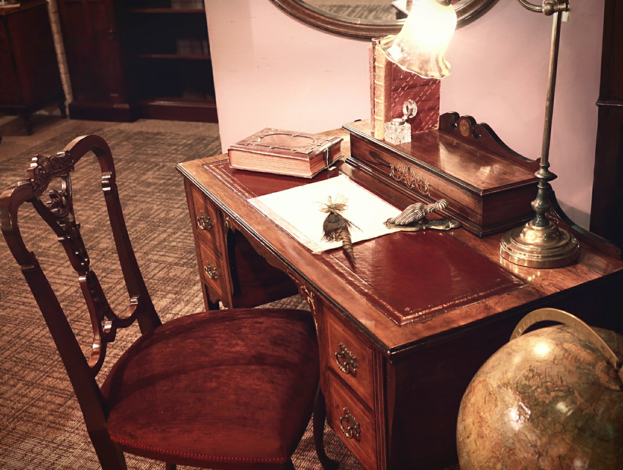 ライティングデスク以外にも、書籍や雑誌の収納にブックケース やブックシェルブス、マガジンラック、書類整理にファイリングキャビネット、趣味のカードゲーム用のテーブルなど、書斎をコーディネートする数々のアンティーク家具が存在します。